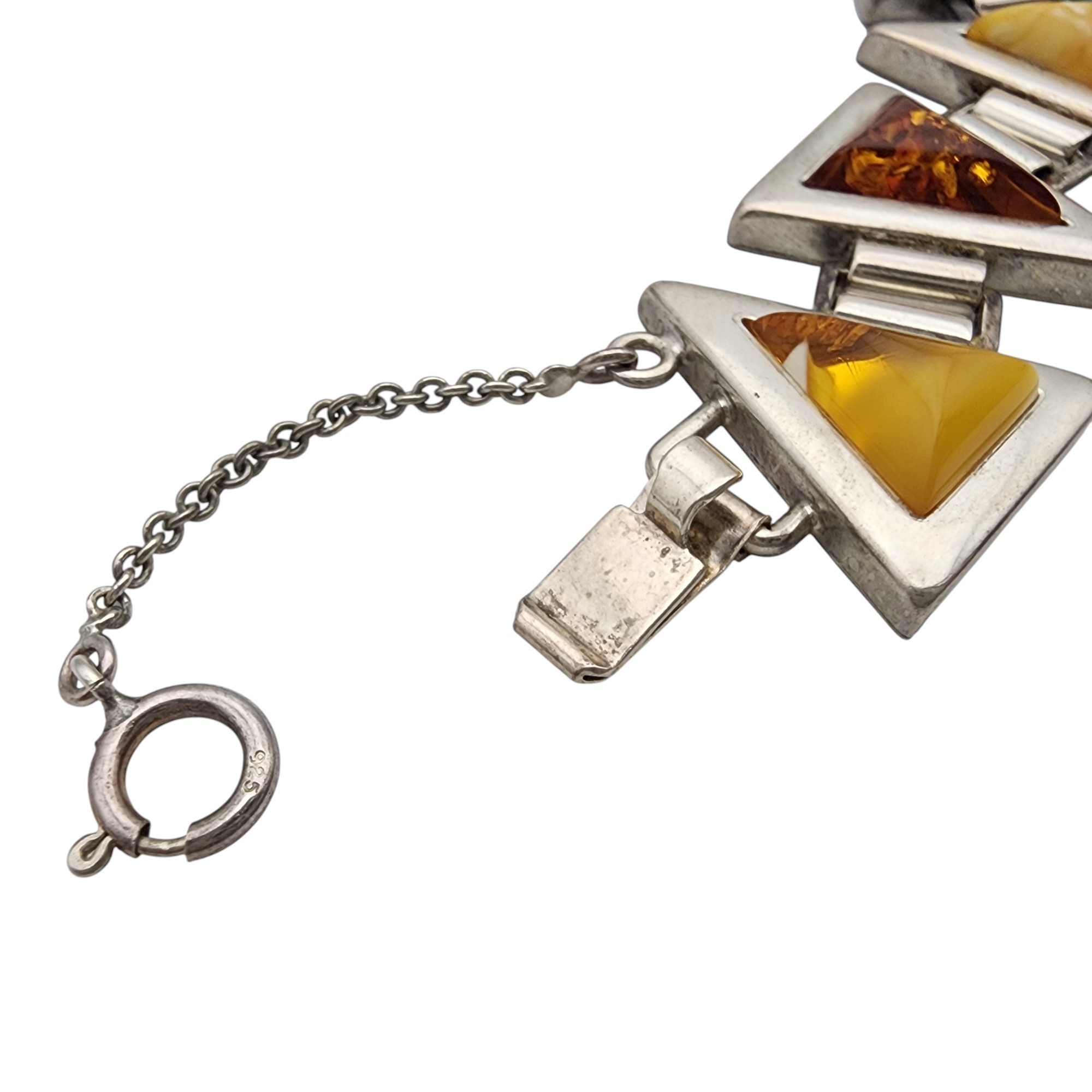 Vintage Sterling Multicolor Amber Link Bracelet – 26.8g