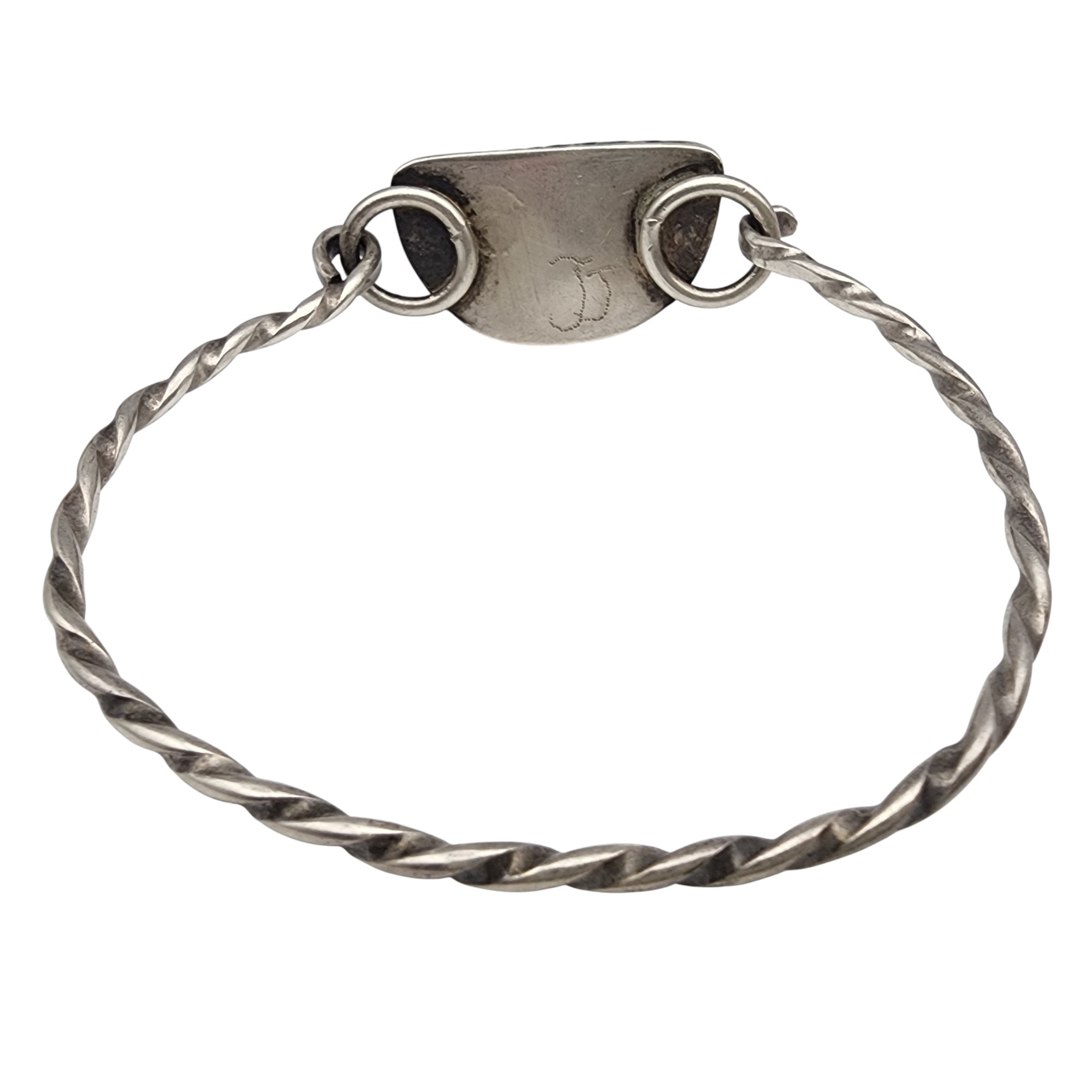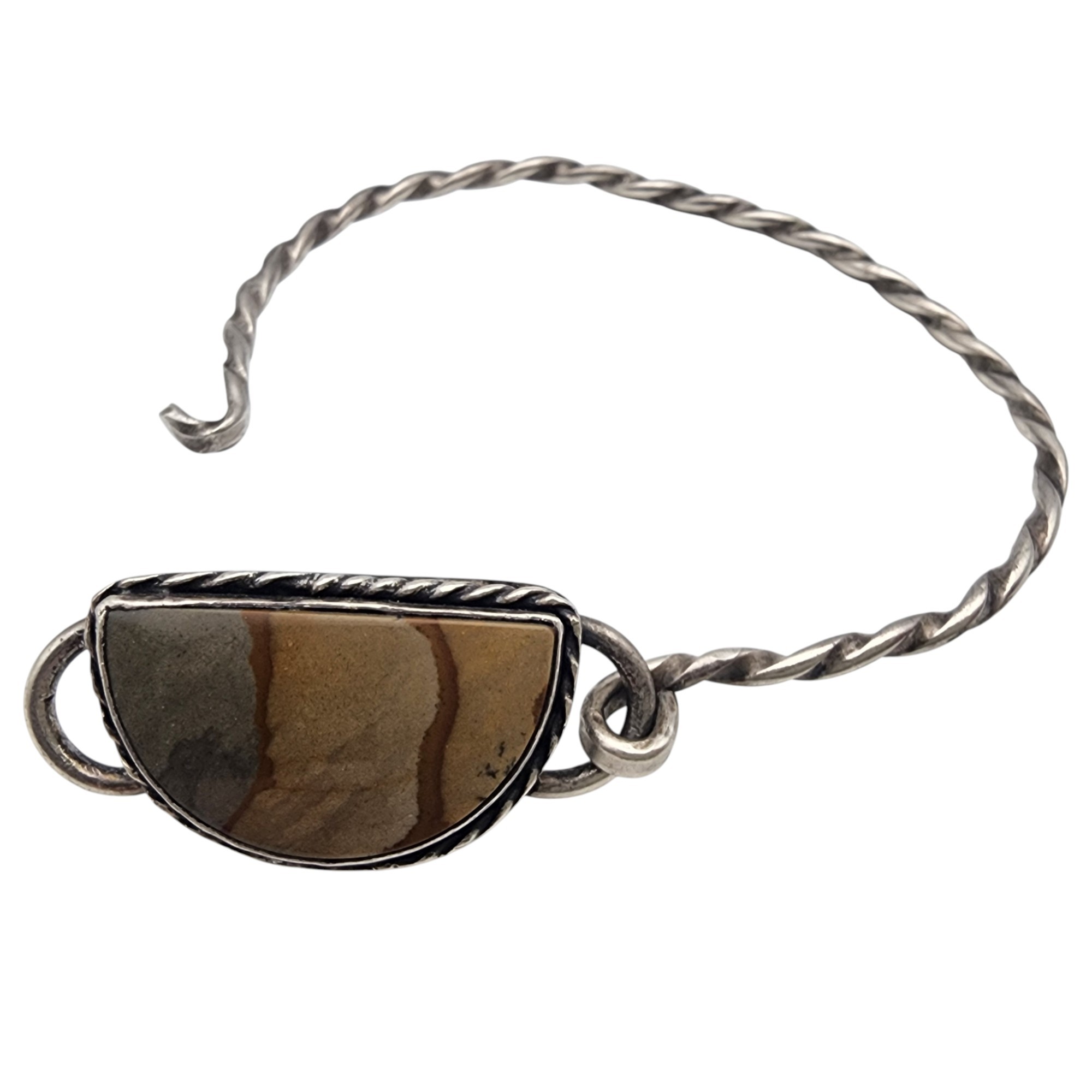 Signed Artisan Sterling Jasper Twist Tension Bangle Bracelet – 11.1g