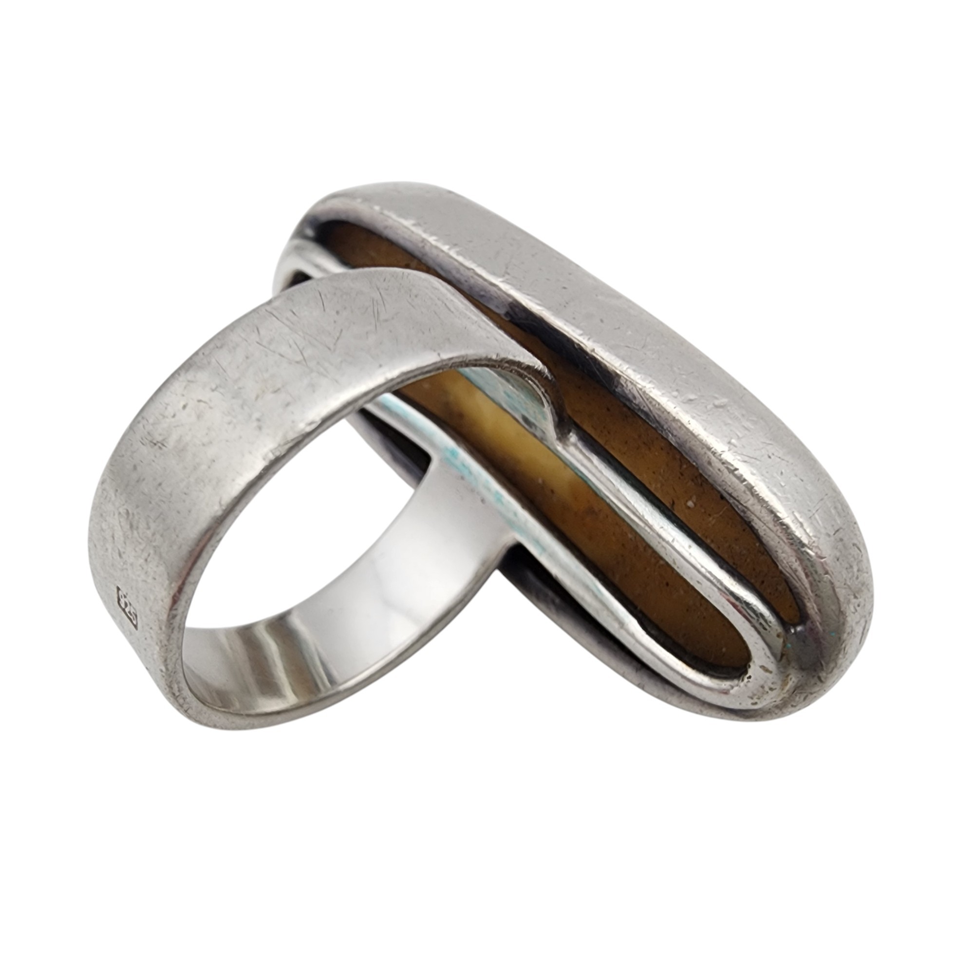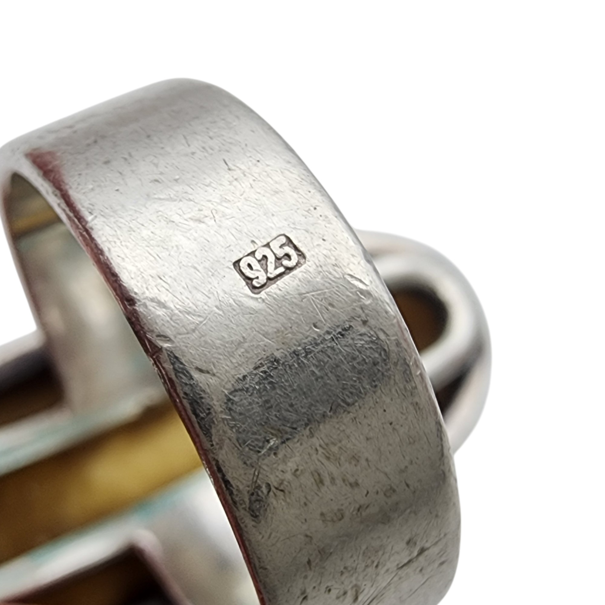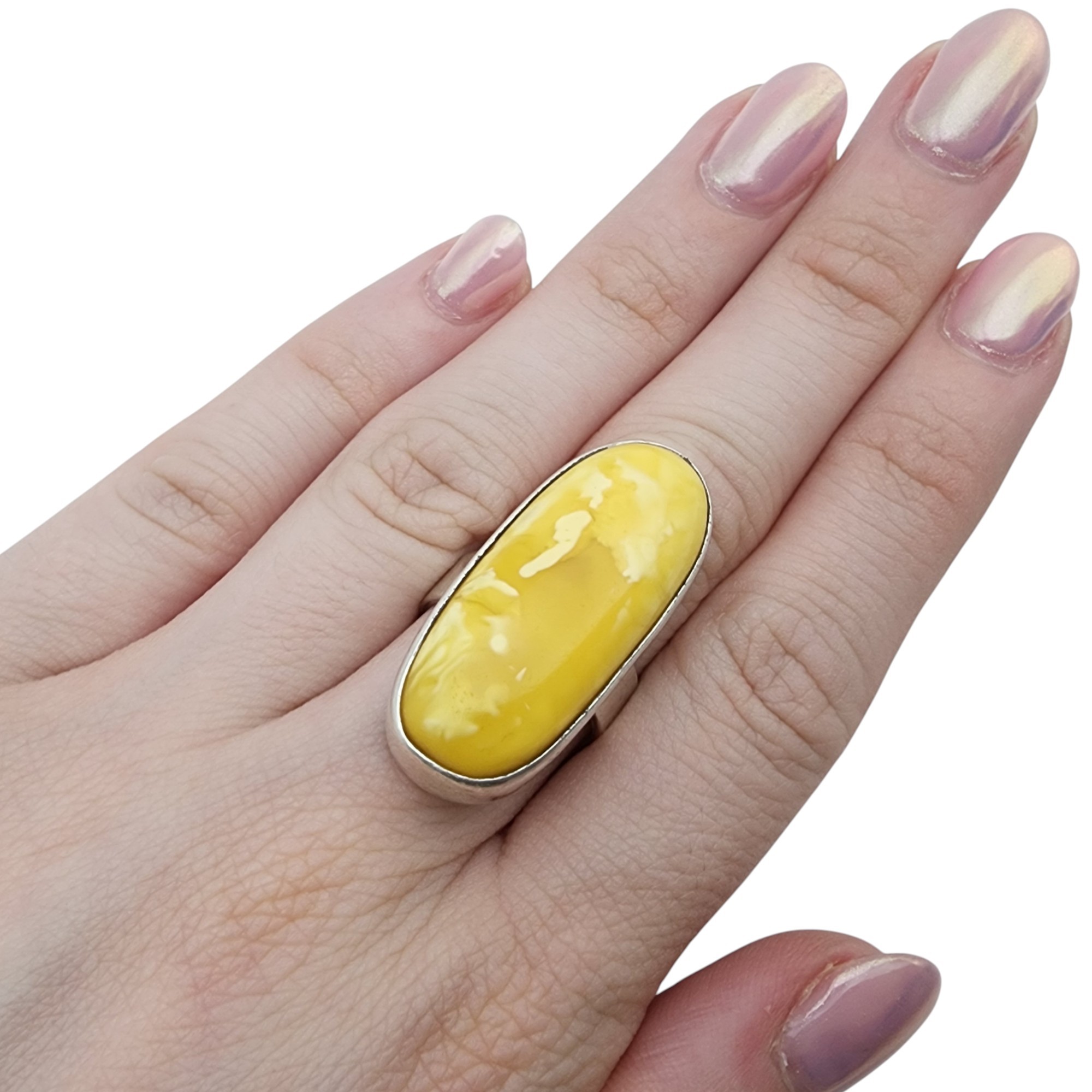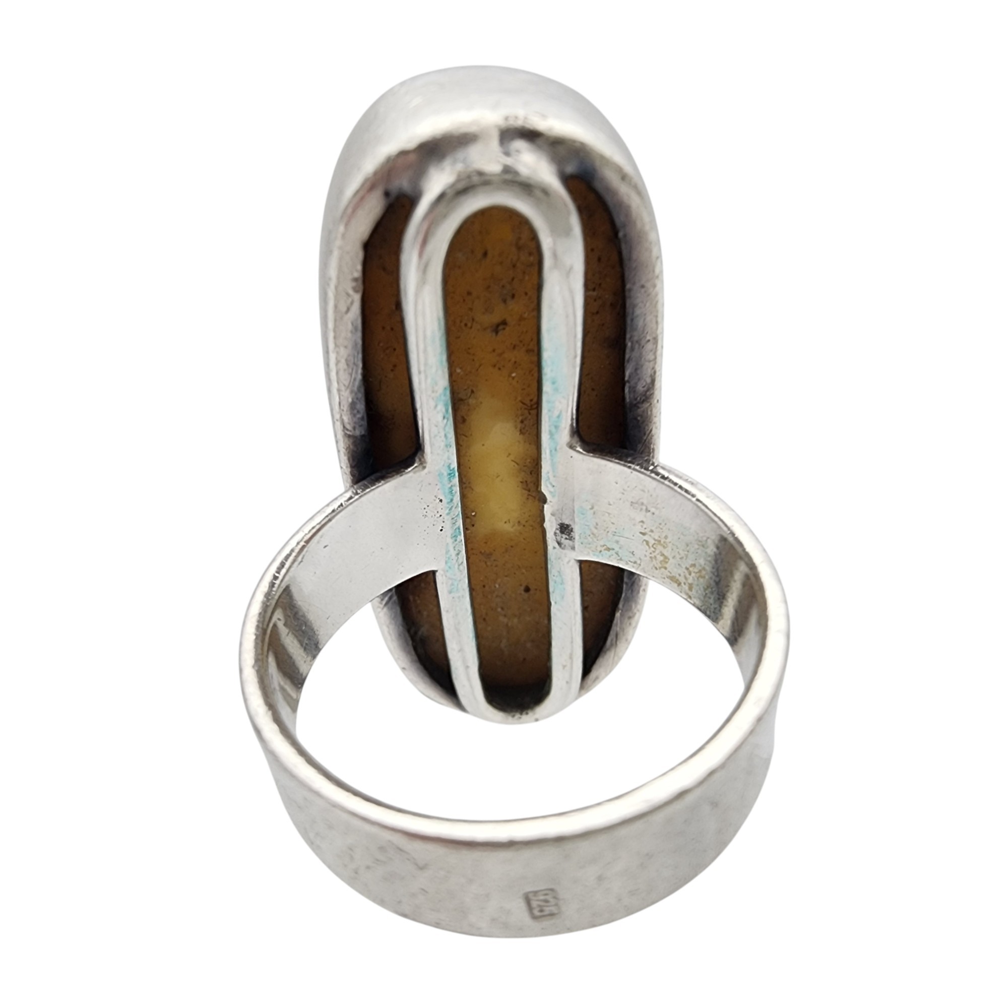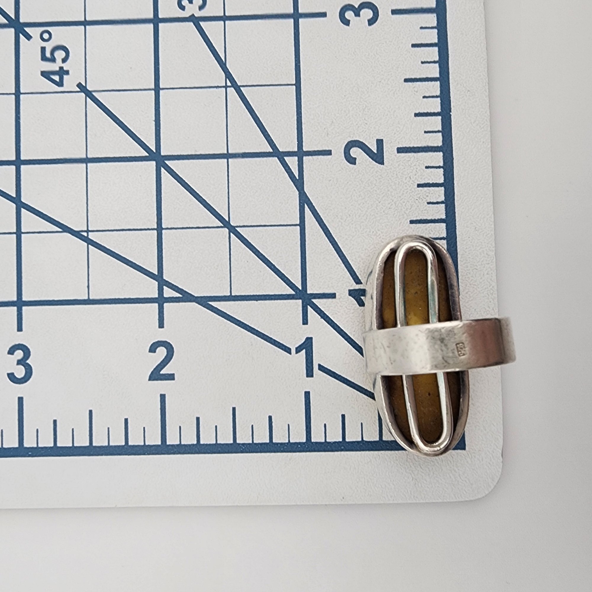 Vintage Sterling Egg Yolk Amber Ring Sz 6.5 – 12.1g – there is a little wiggle in the setting, but is secure and wearable.