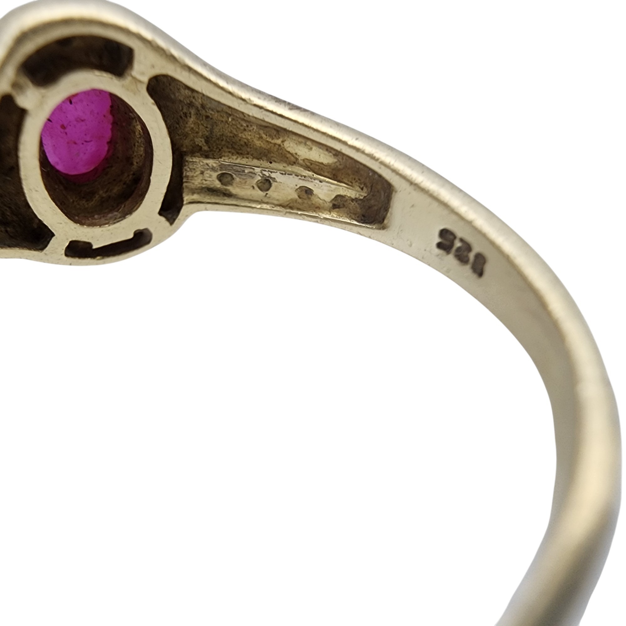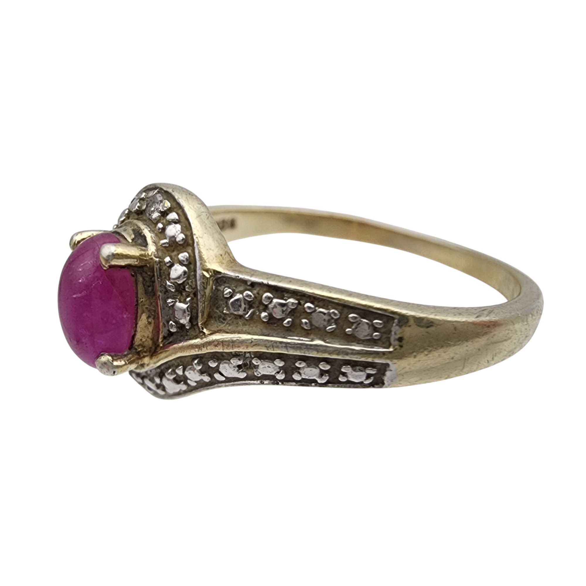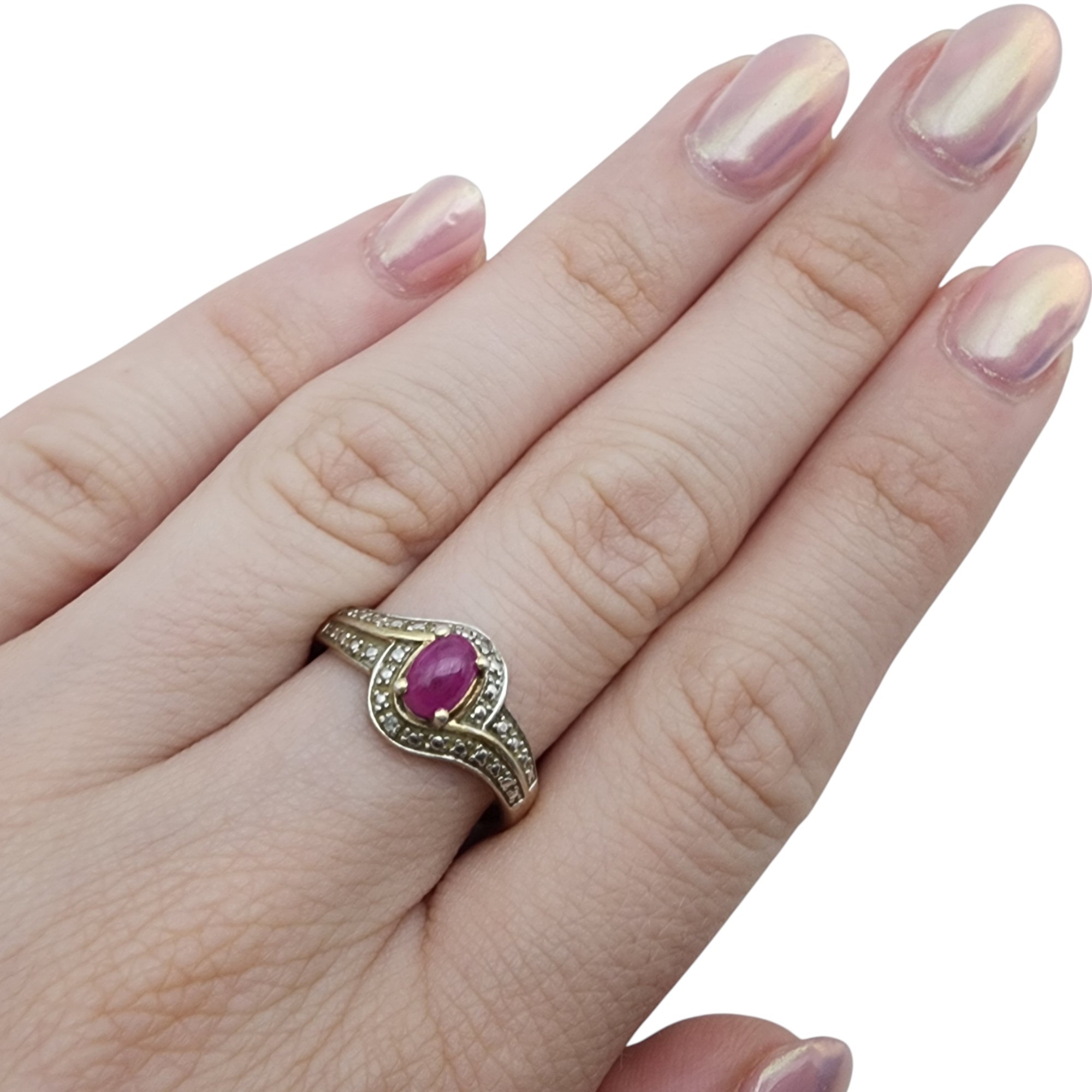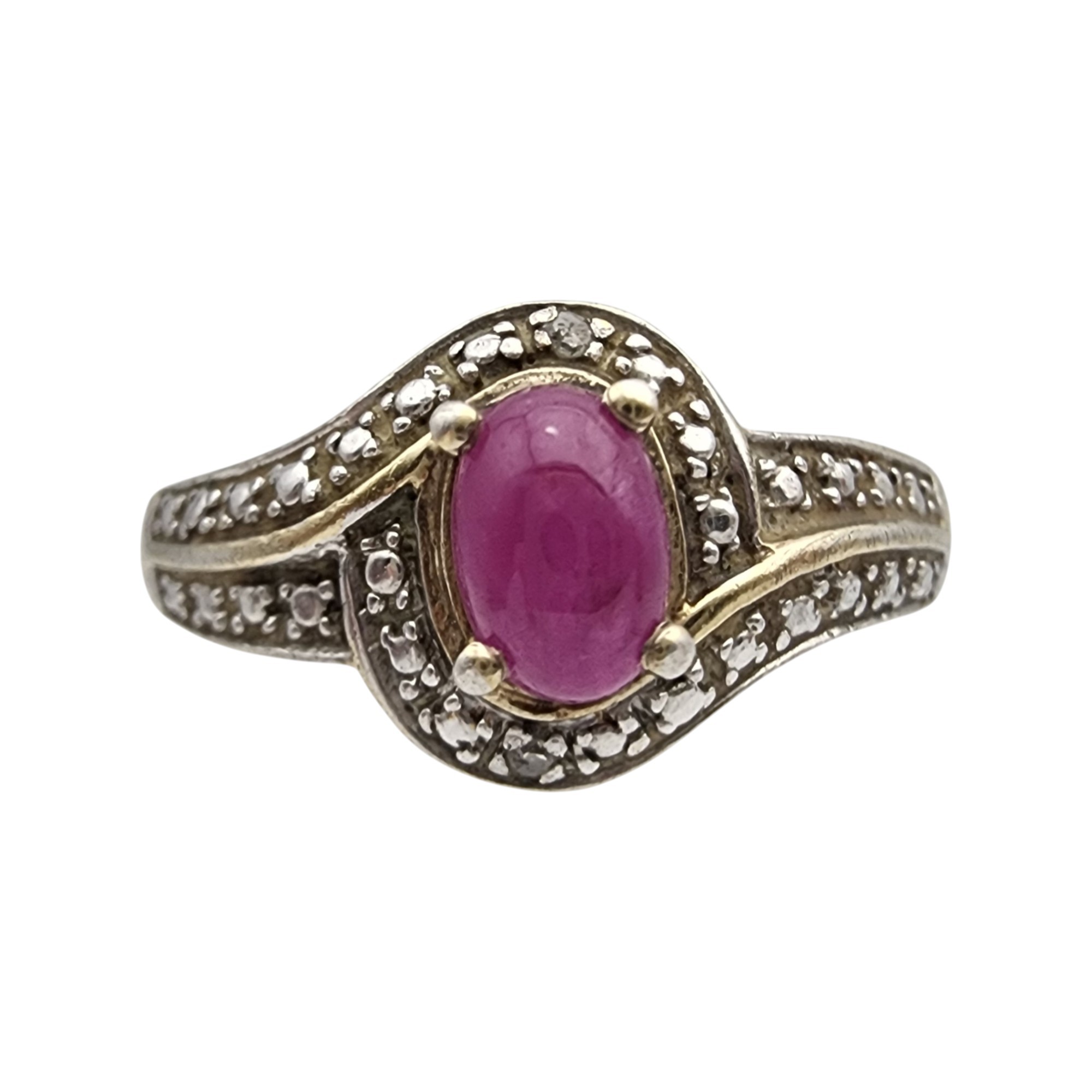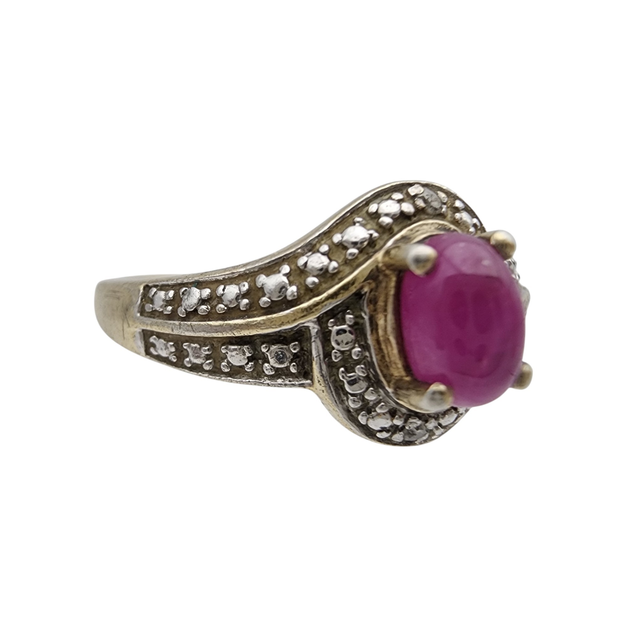 Gold over Sterling Ruby Ring Sz 8.25 – 3.4g – some of the gold wash has wore off on band, see photos