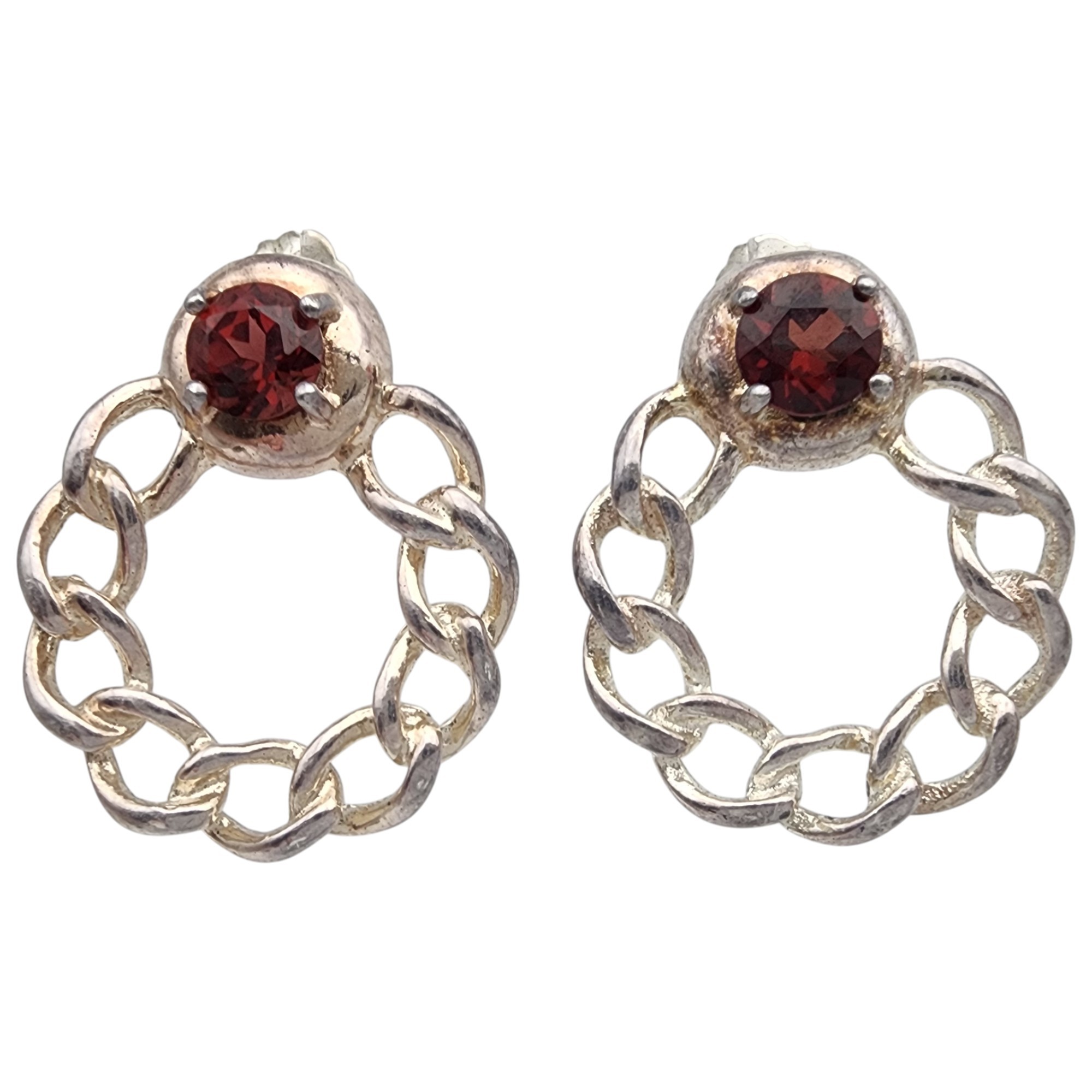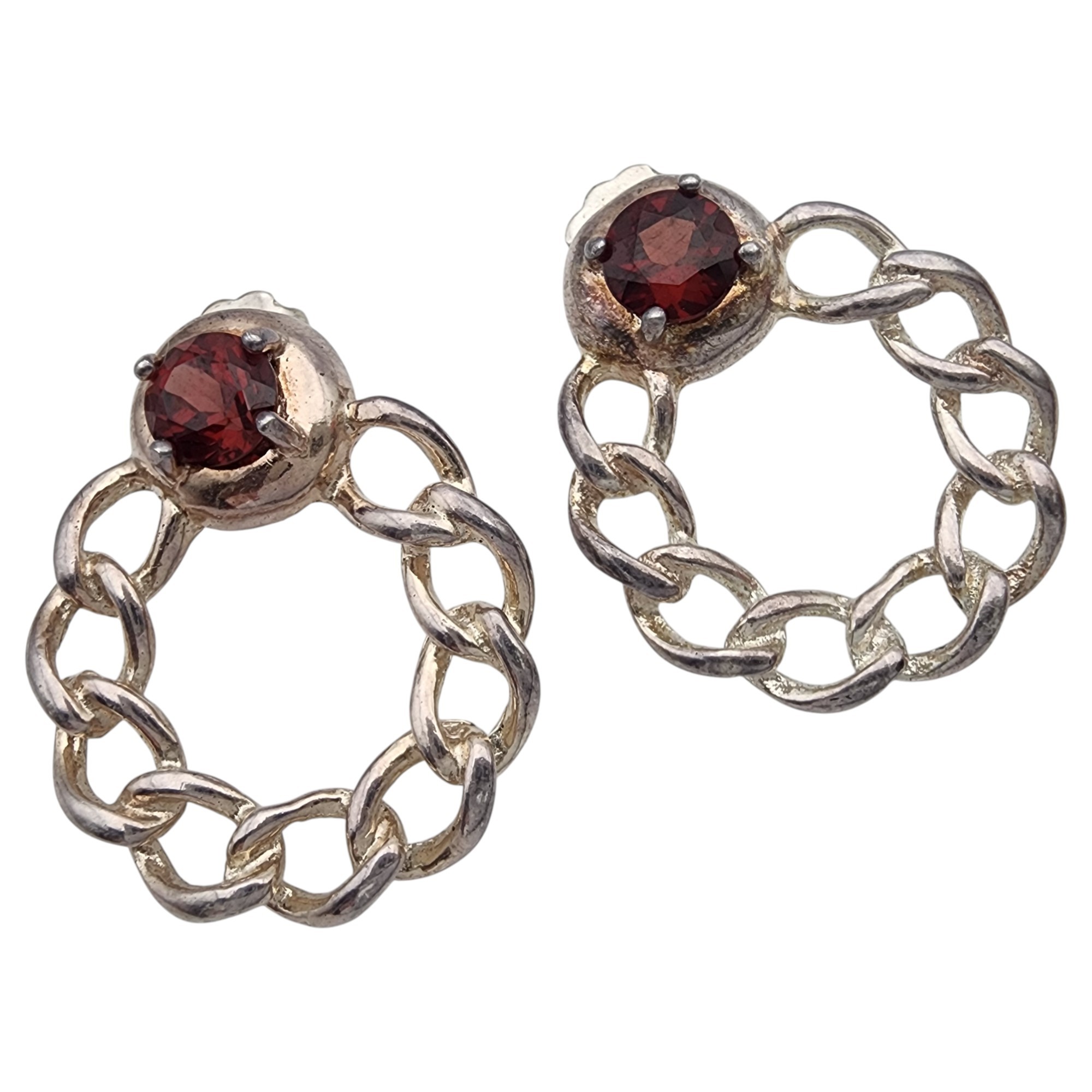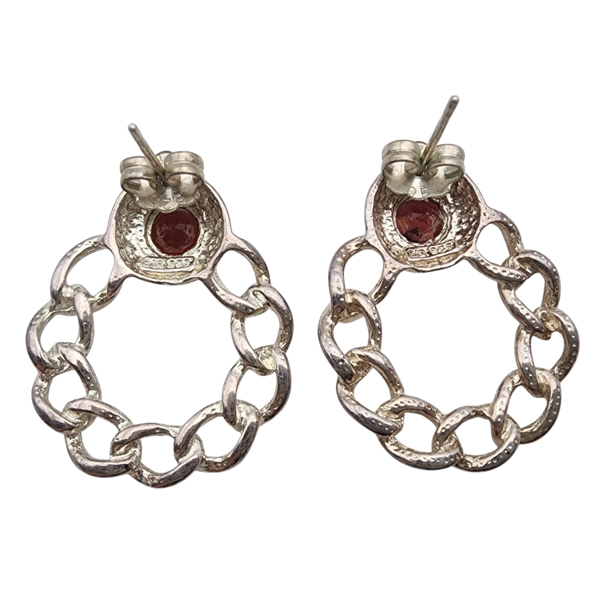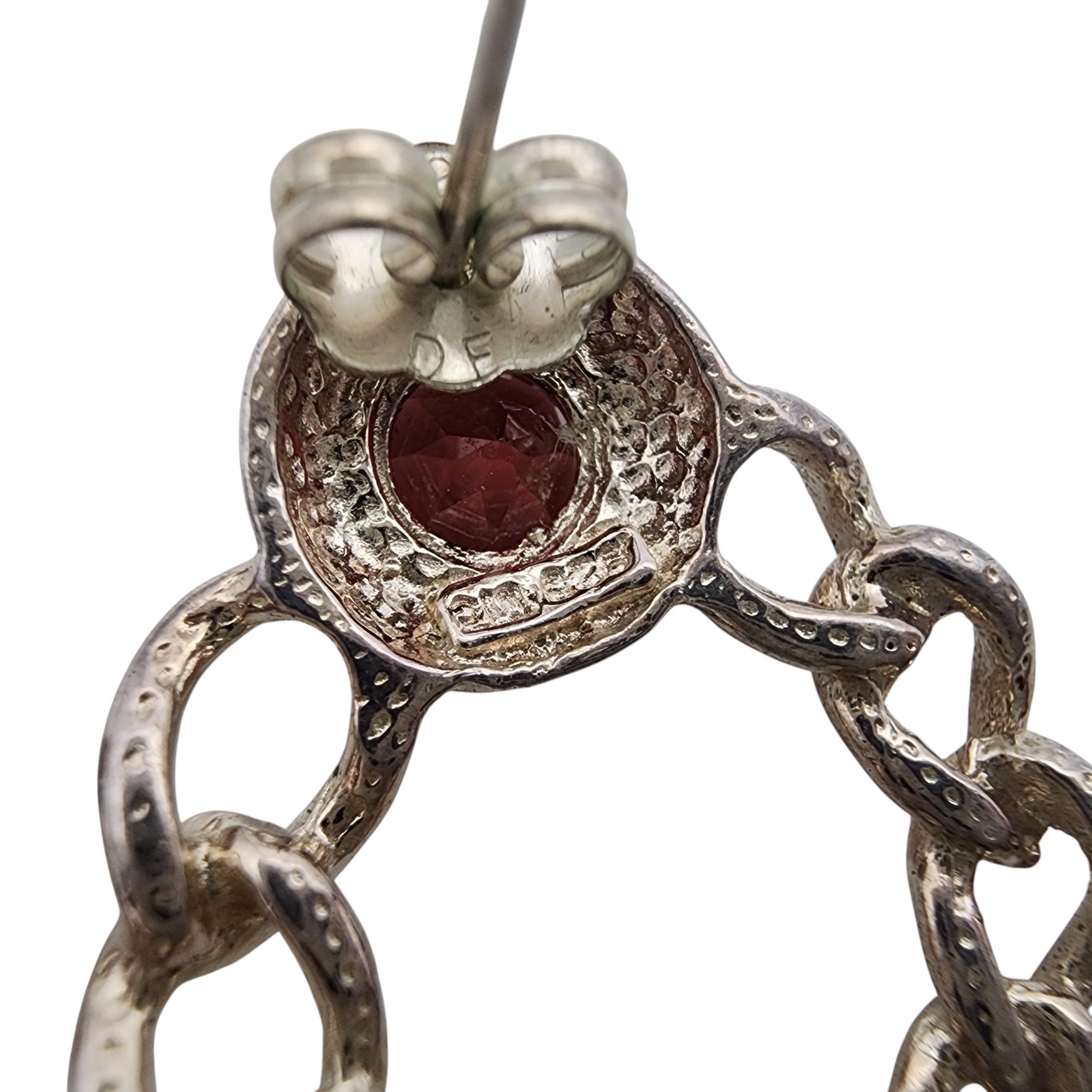 Signed Sterling Garnet Chain Hoop Earrings – 6.4g