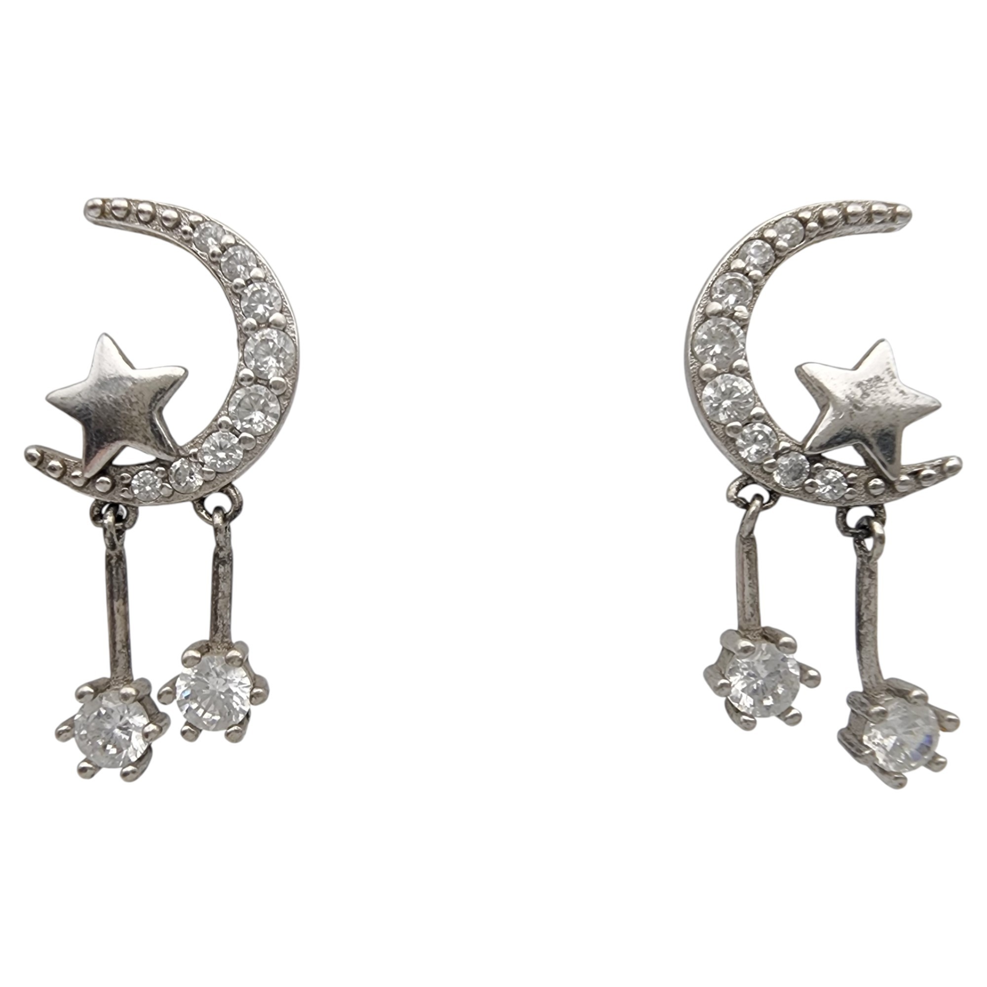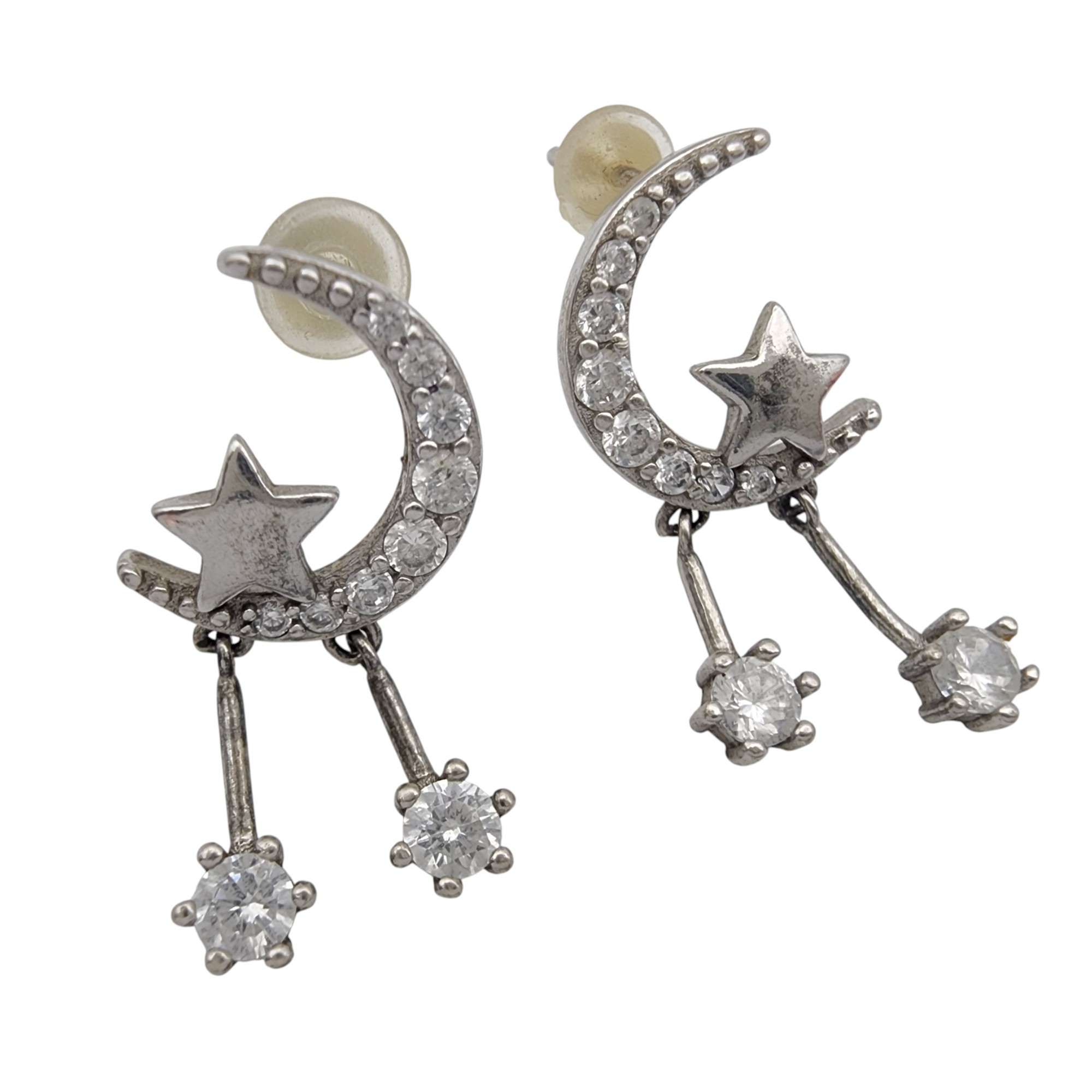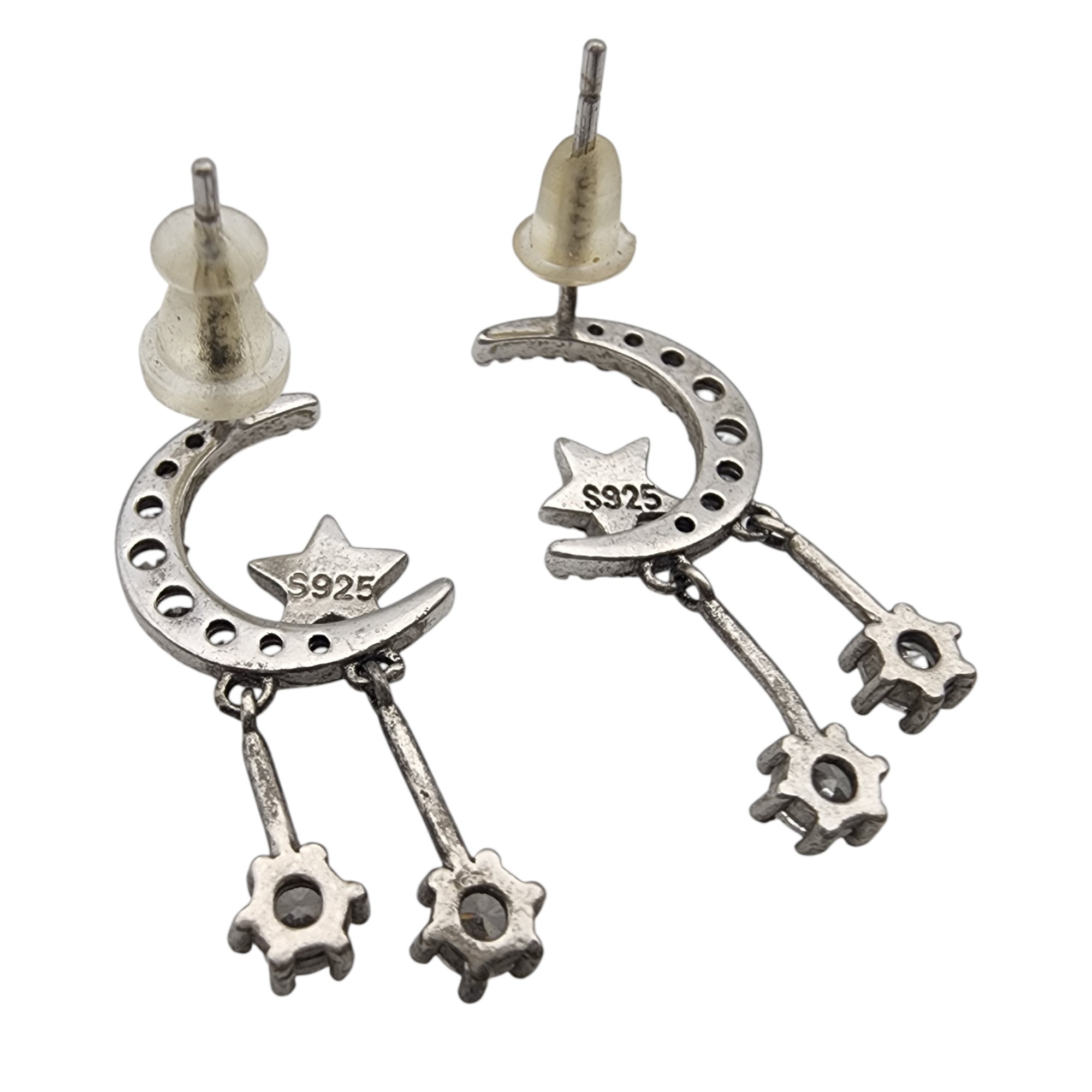 Sterling Star and Moon Dangle Earrings – 2.2g