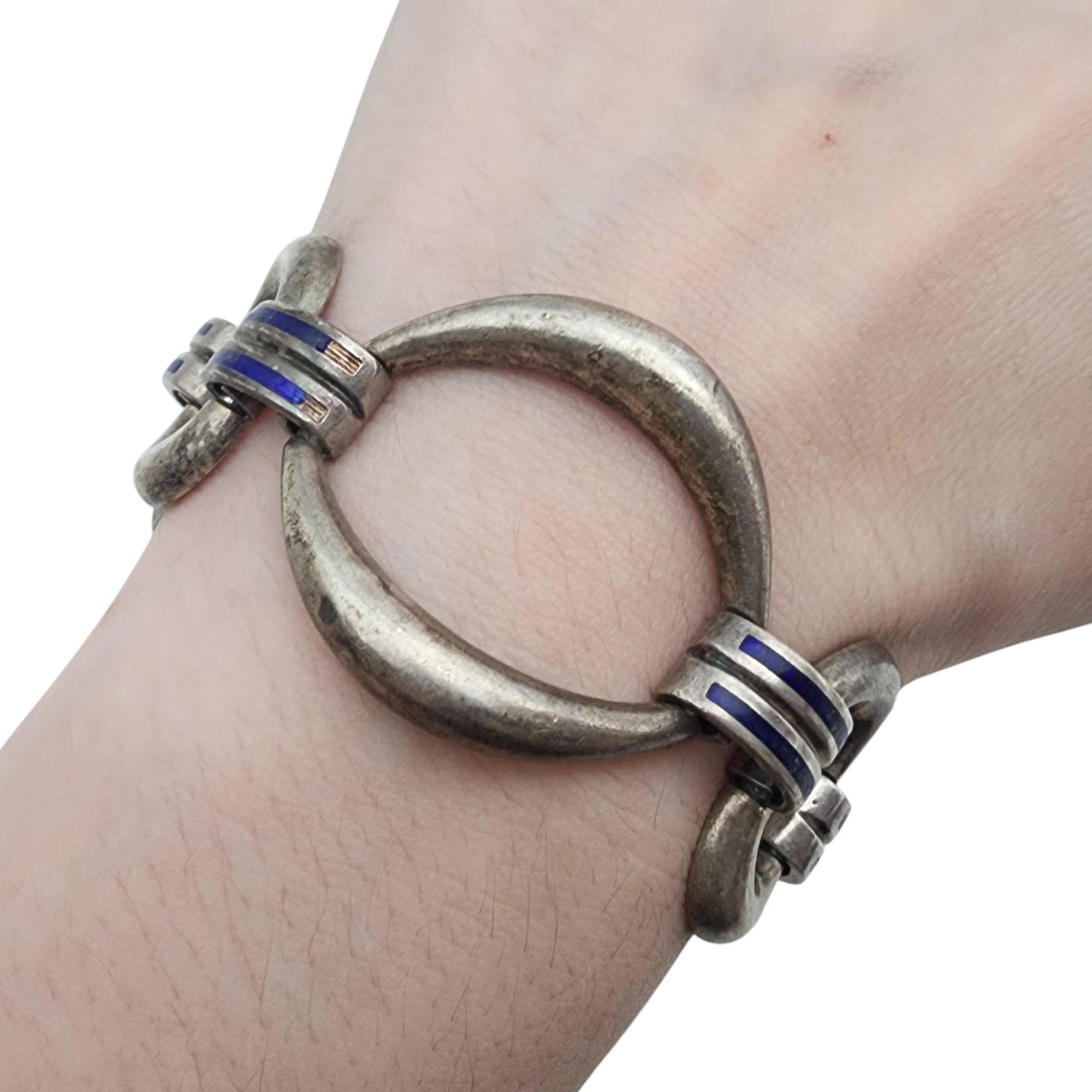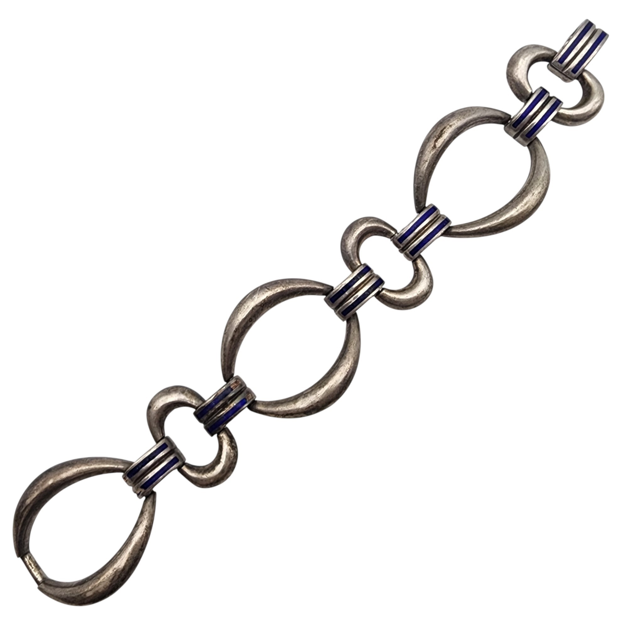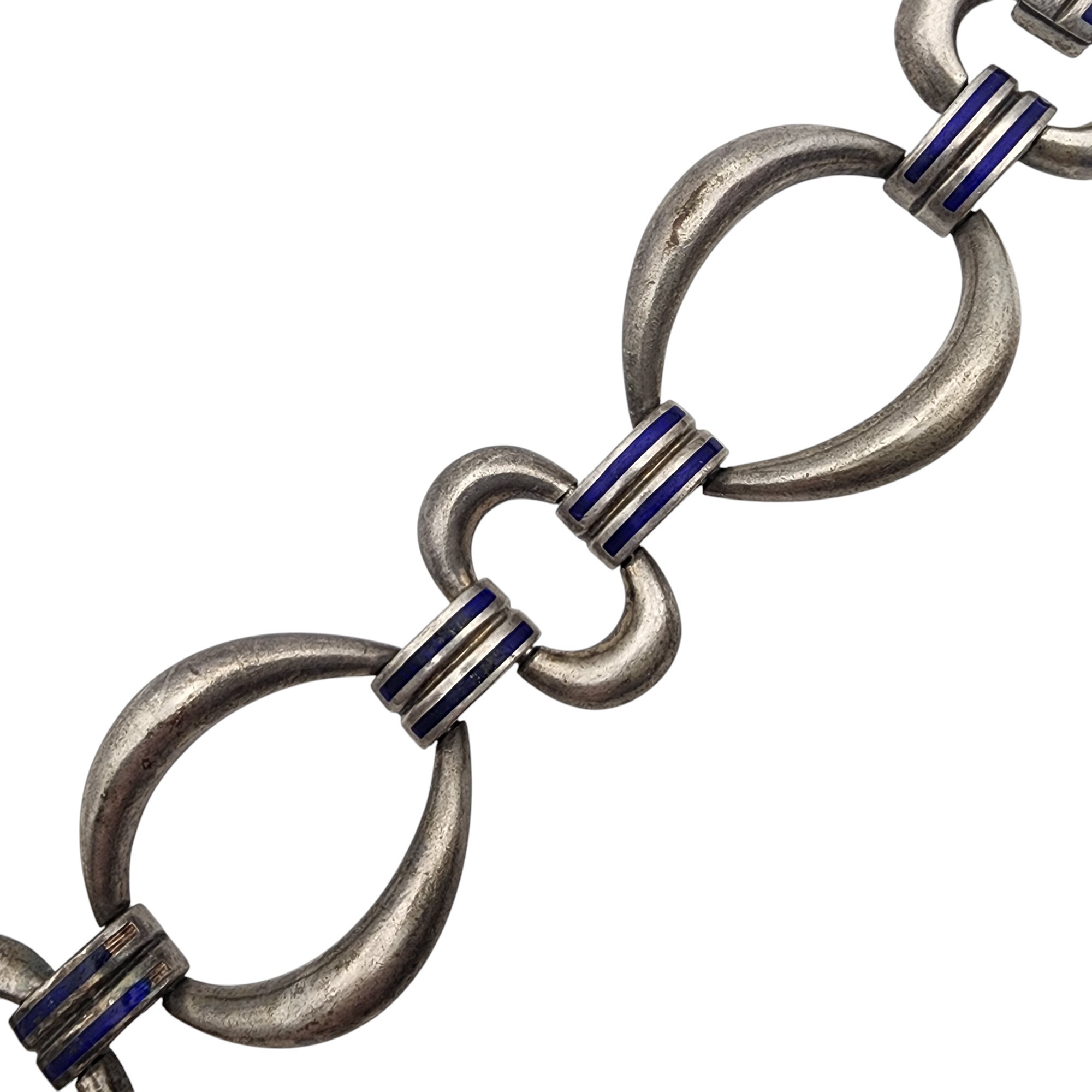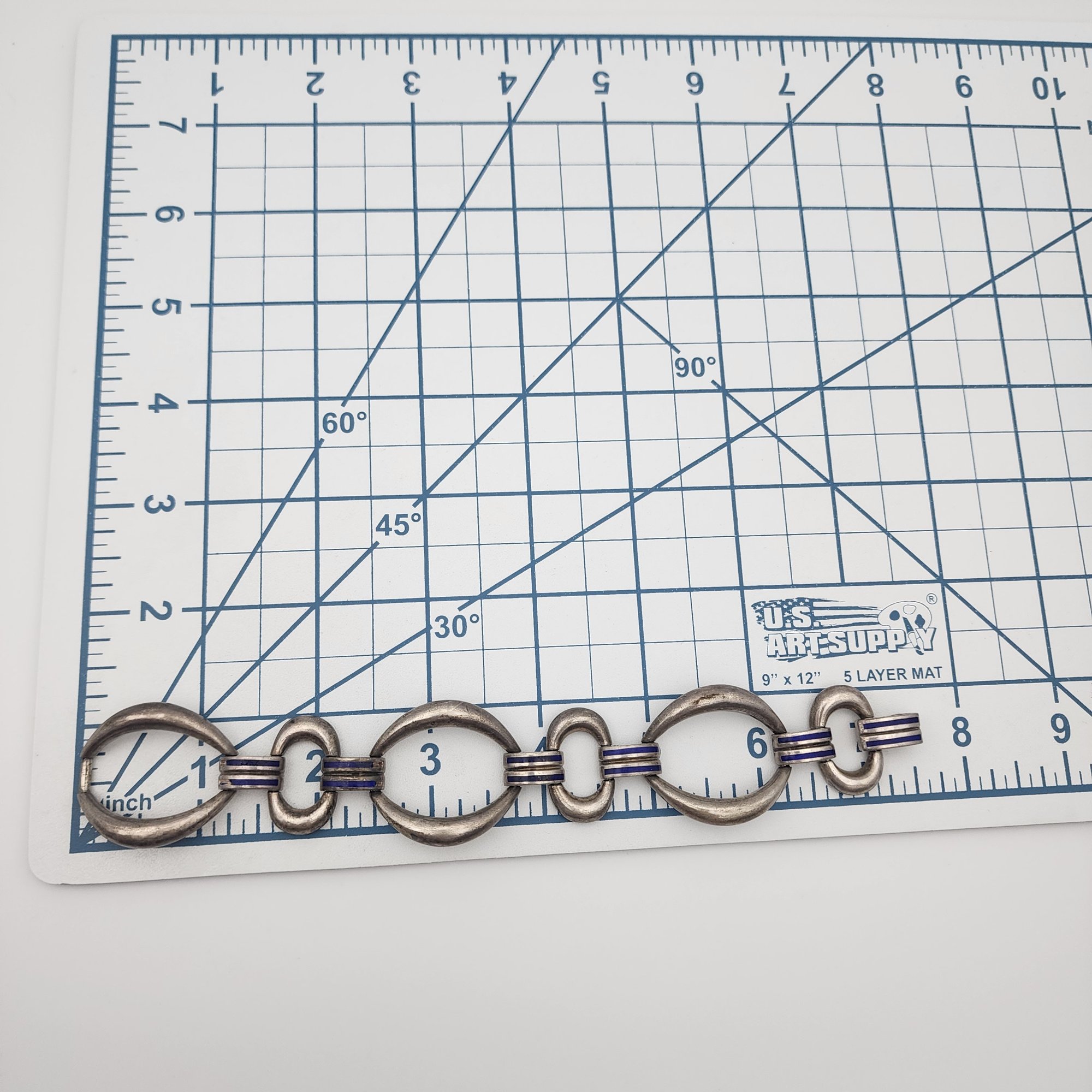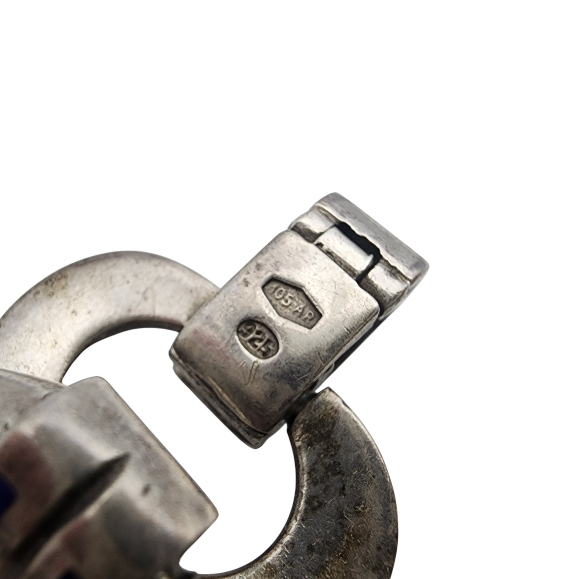 Signed (makers mark – 105) Arezzo (stamped AR on bracelet) Italian Vintage Sterling Blue Enamel Chain Link Bracelet – 73.8g – approx. 7.5″ long