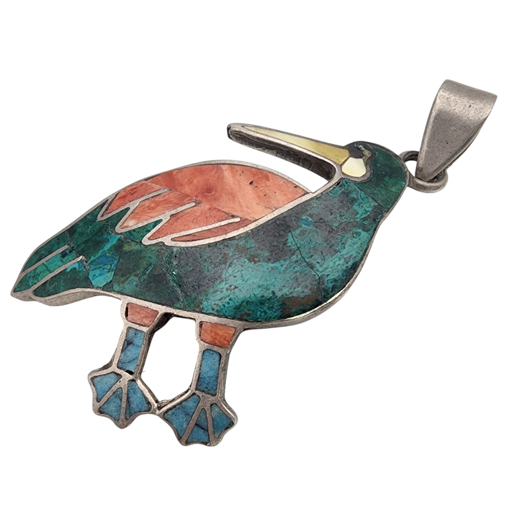 Sterling Multistone Inlay Bird Pendant – 8.8g