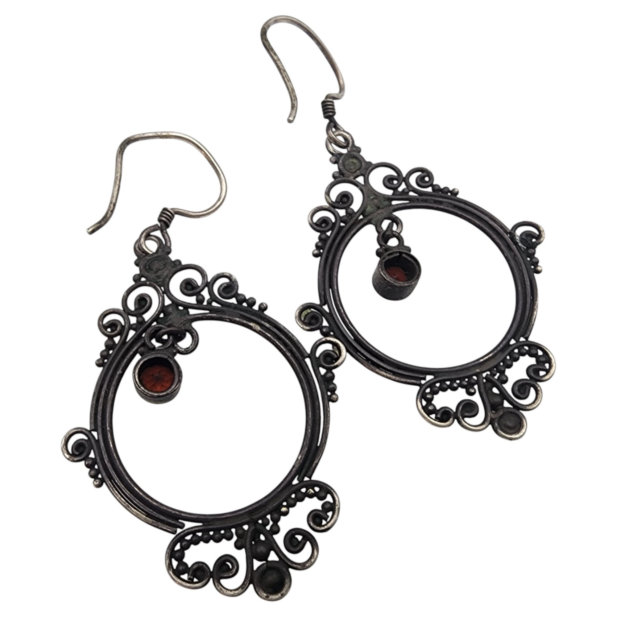 Vintage Sterling Garnet Dangle Earrings – 4.9g
