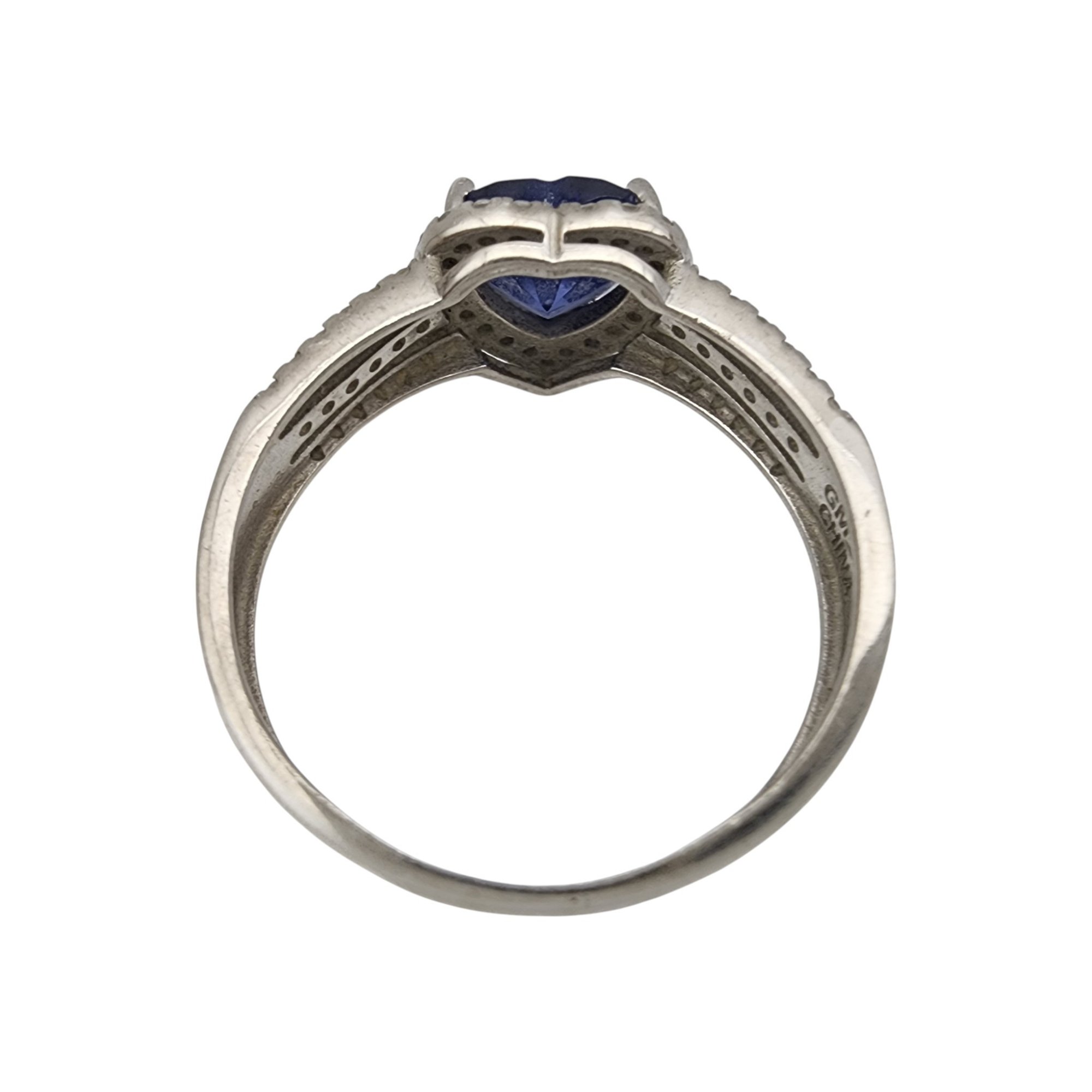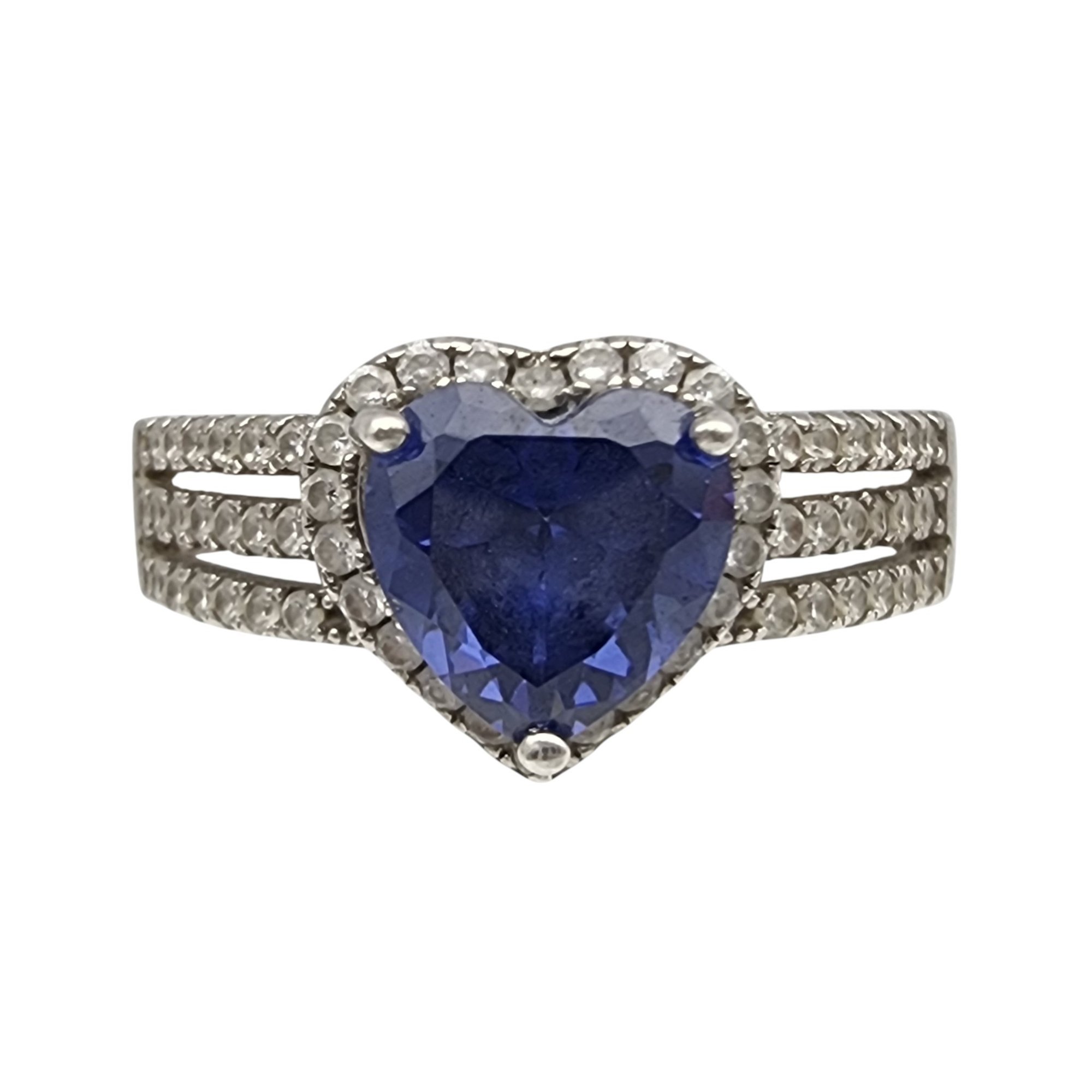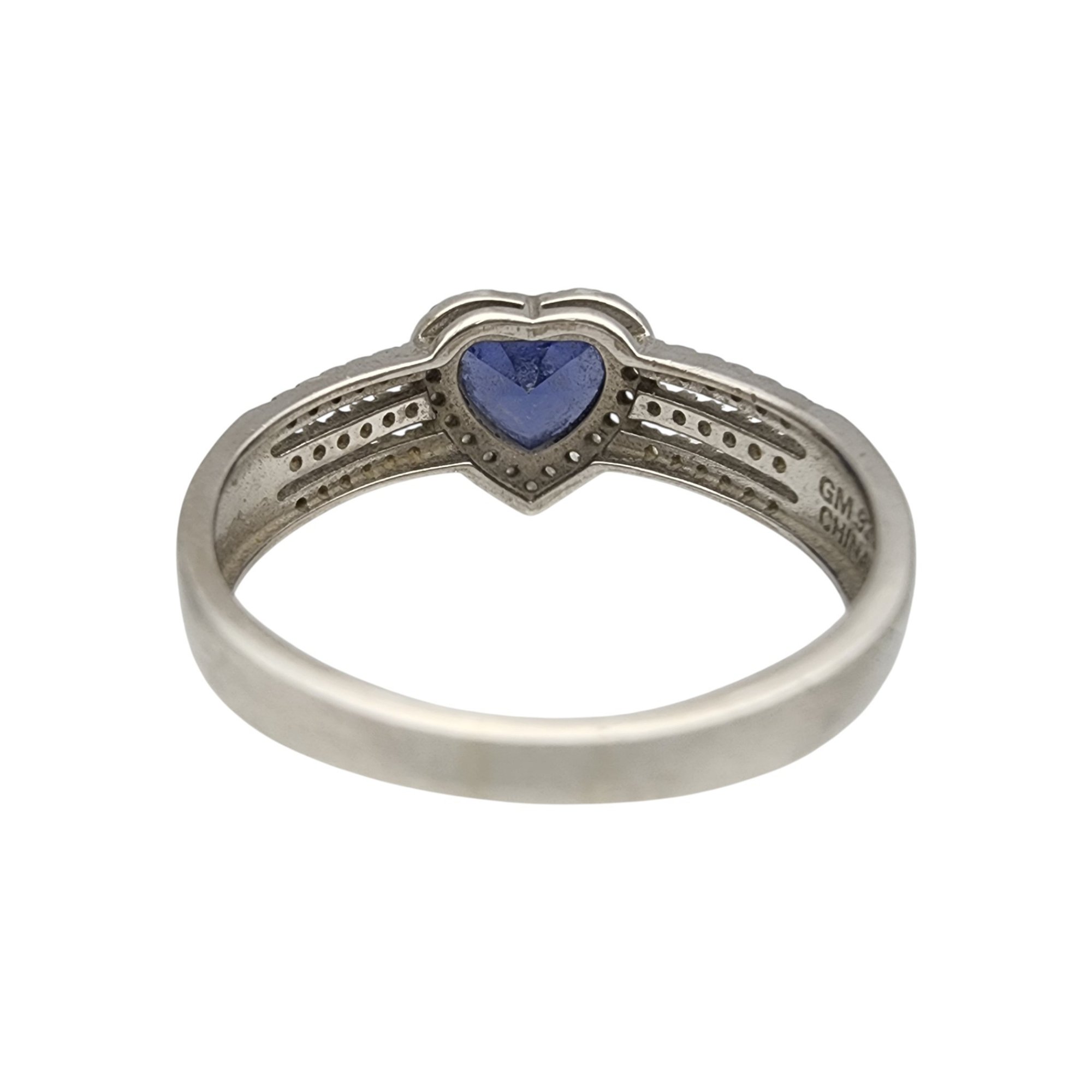 Sterling Iolite and Rhinestone Heart Ring Sz 11 – 4g