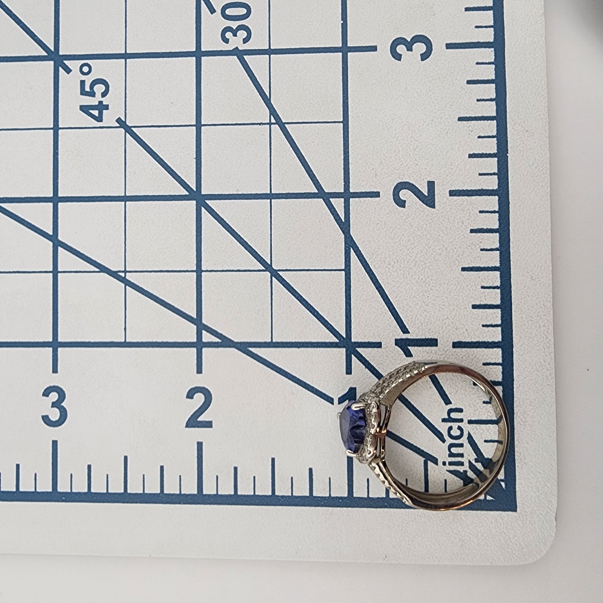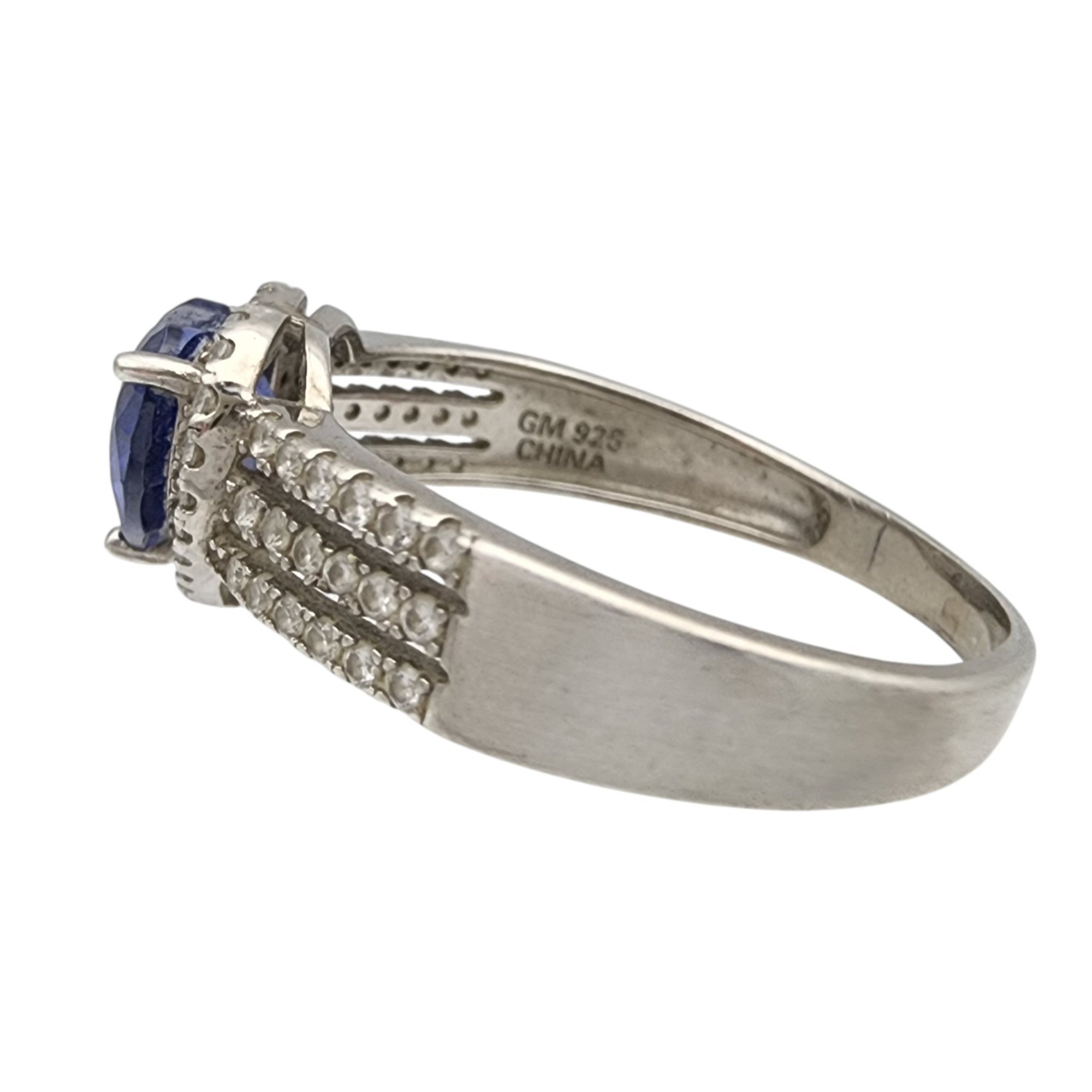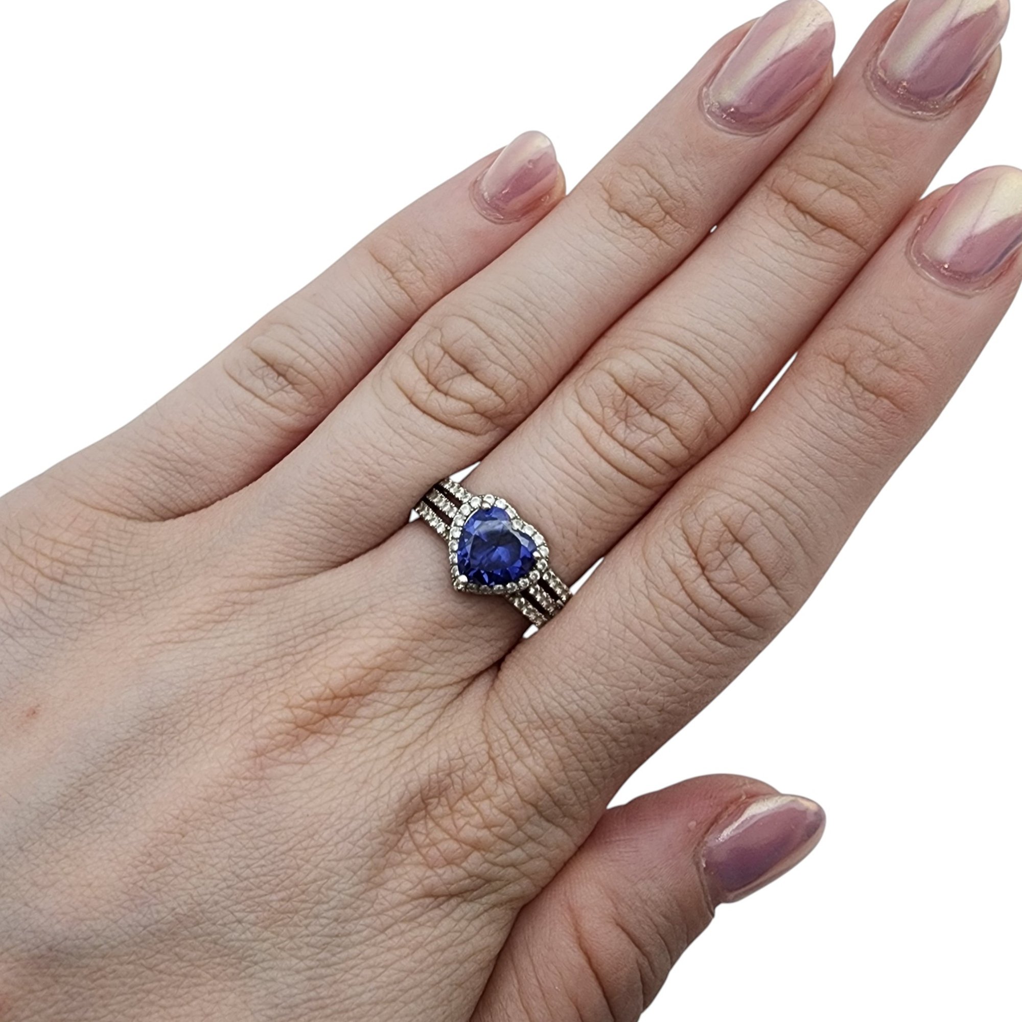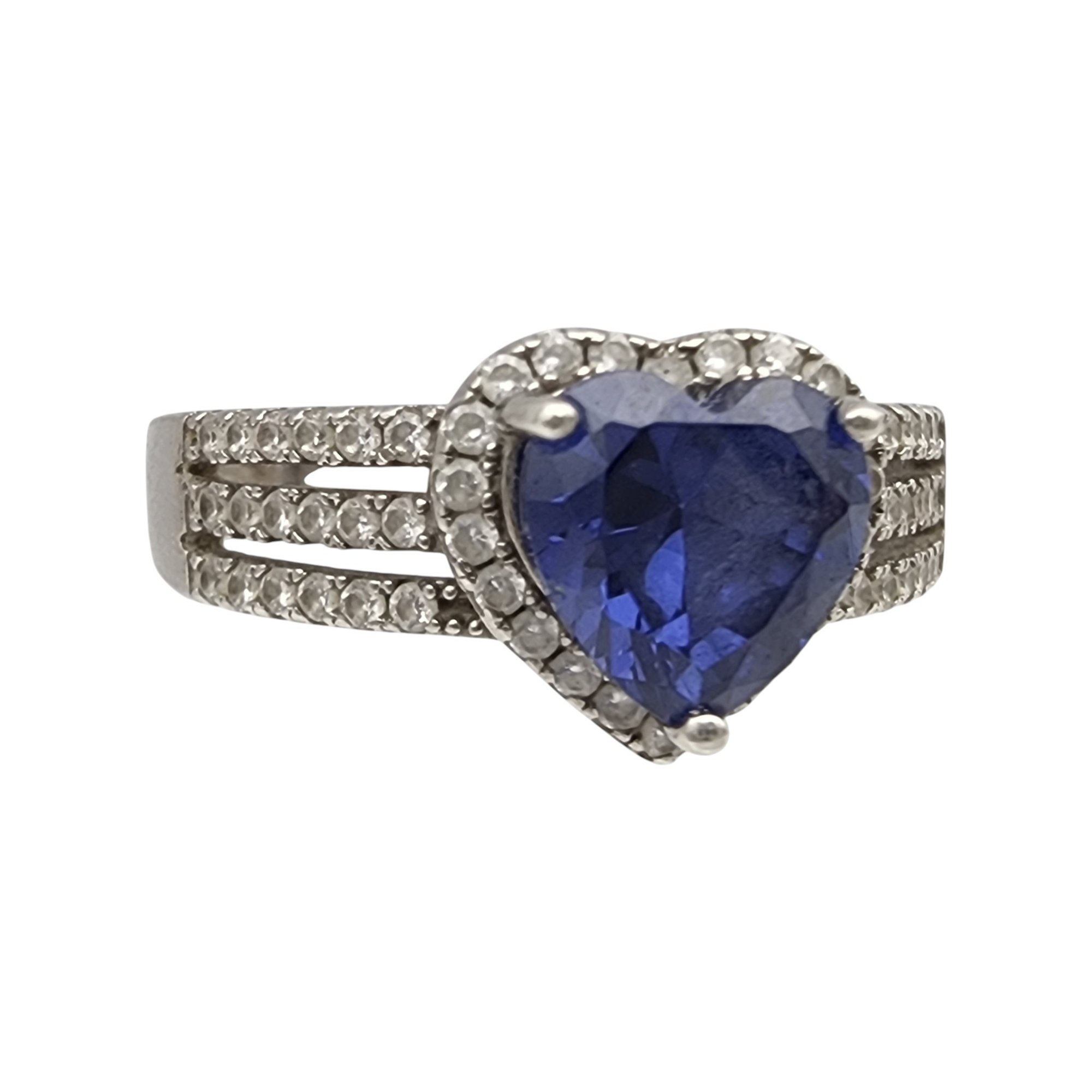 Sterling Iolite and Rhinestone Heart Ring Sz 11 – 4g