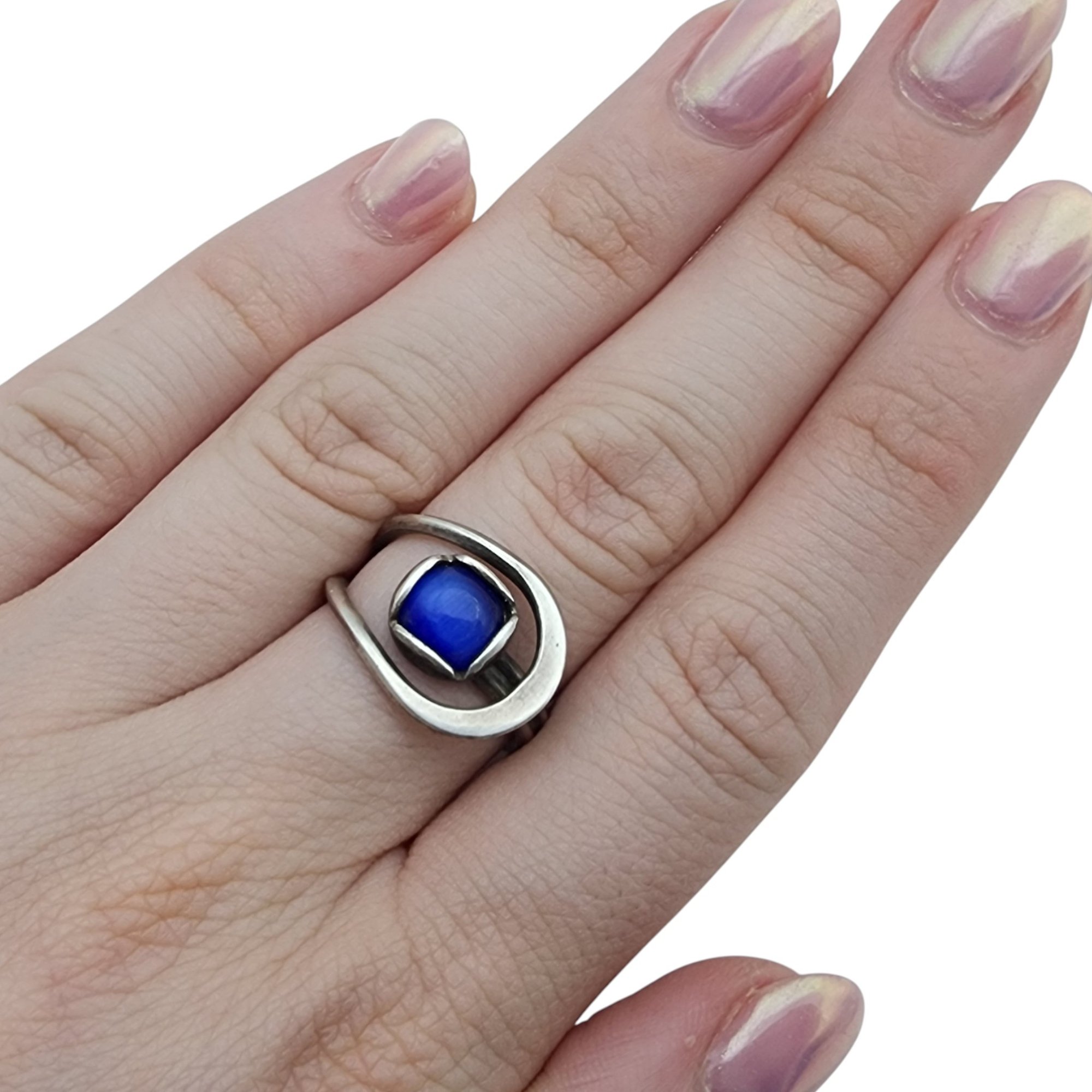 Sterling Blue Cats Eye Ring Sz 6 – 4.1g