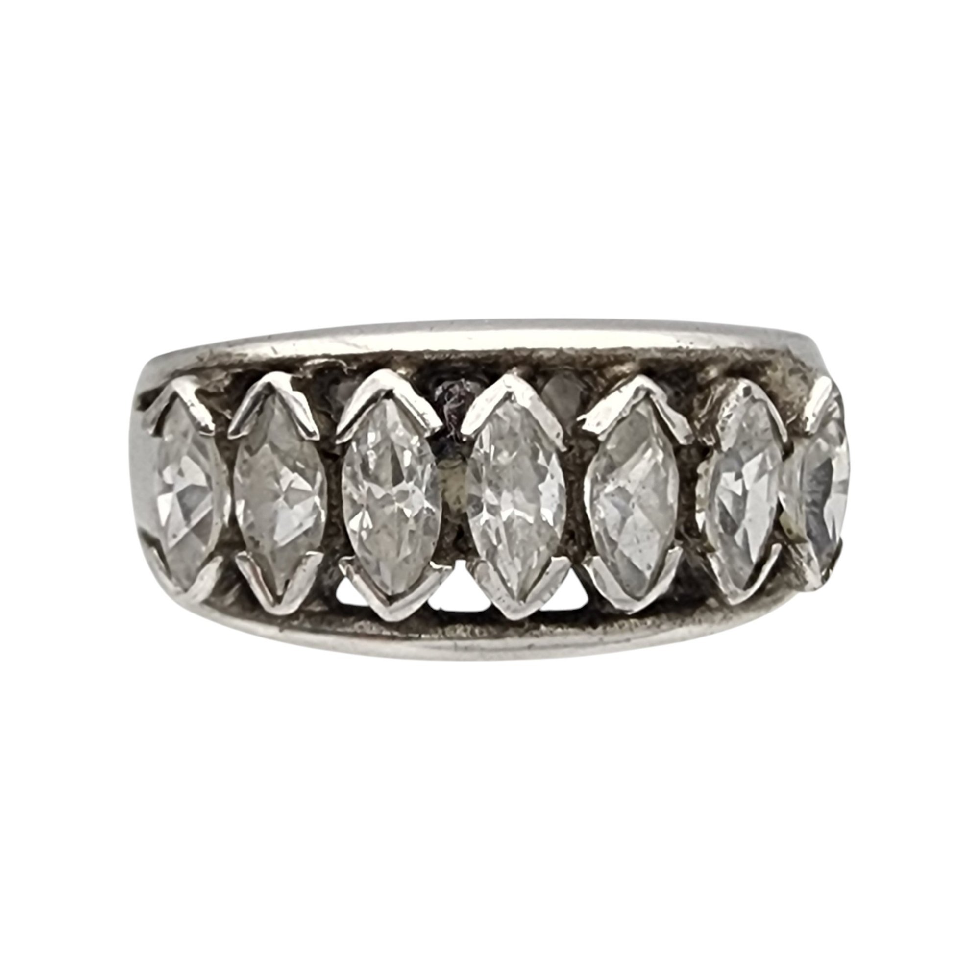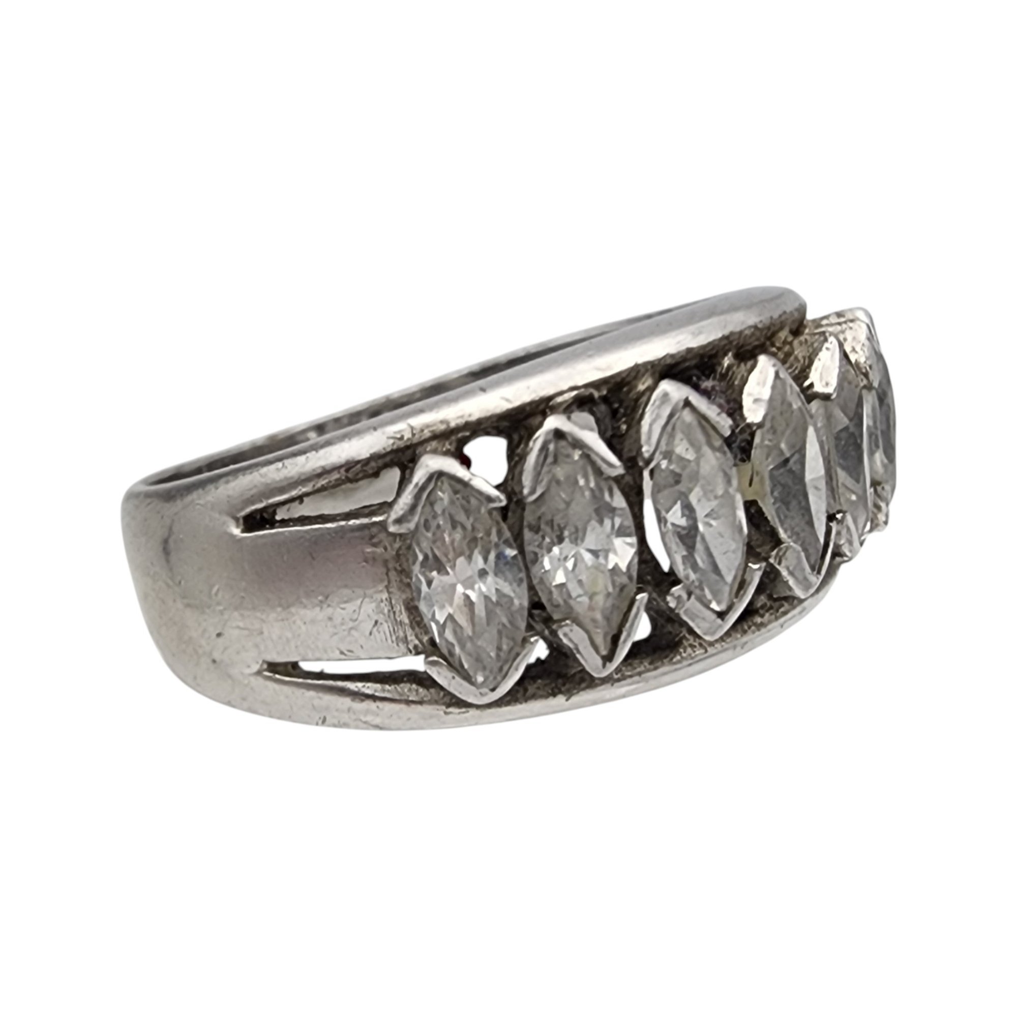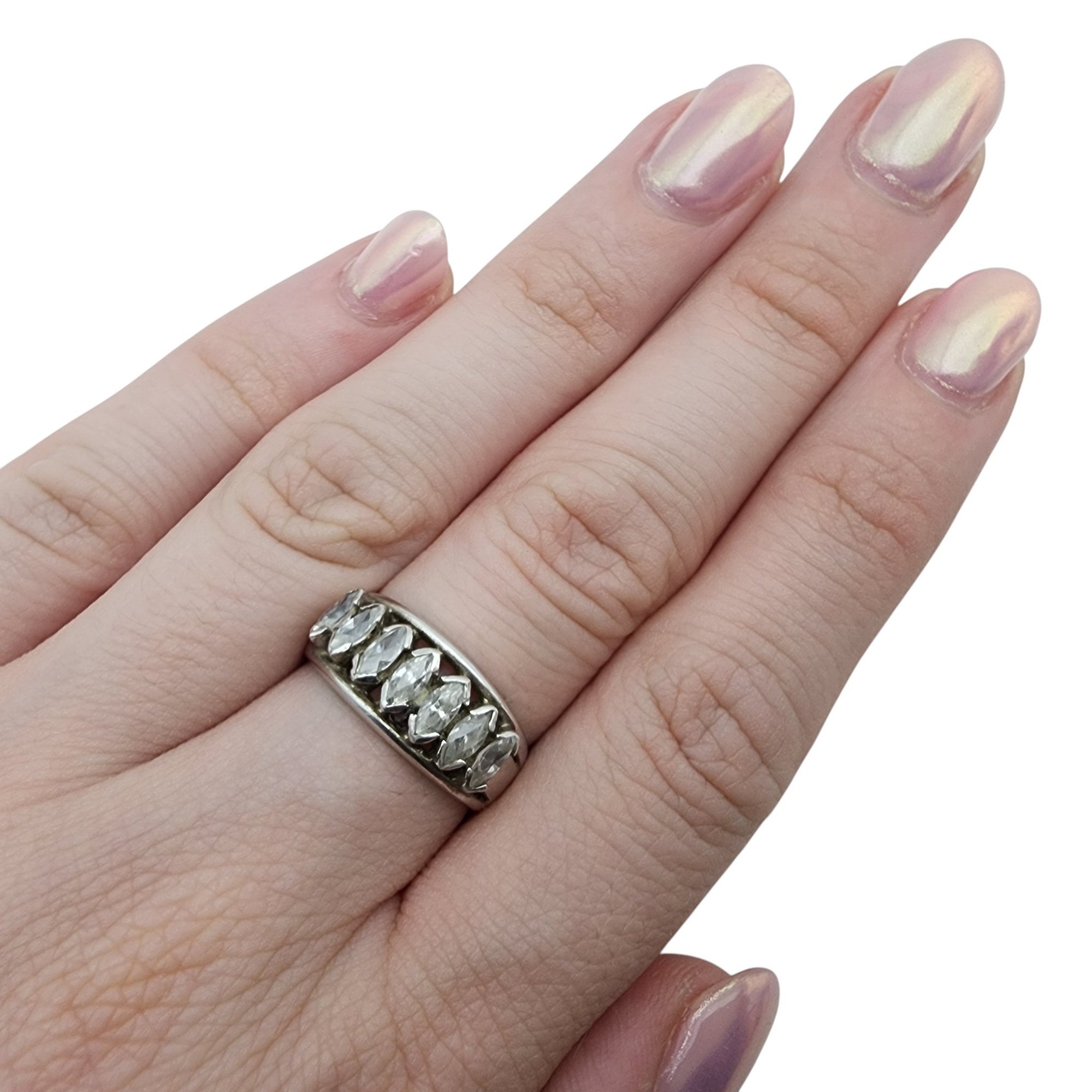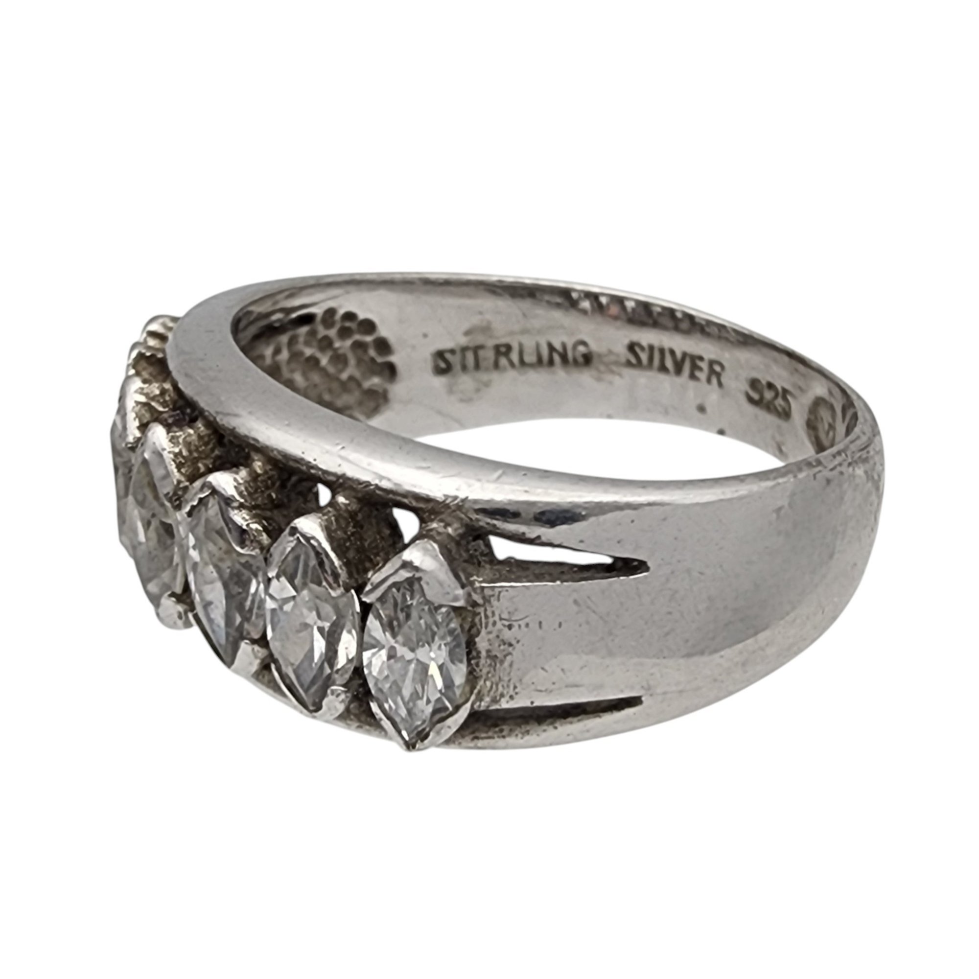 Signed Sterling Cubic Zirconia Marquise Cut Ring Sz 7 – 4.6g