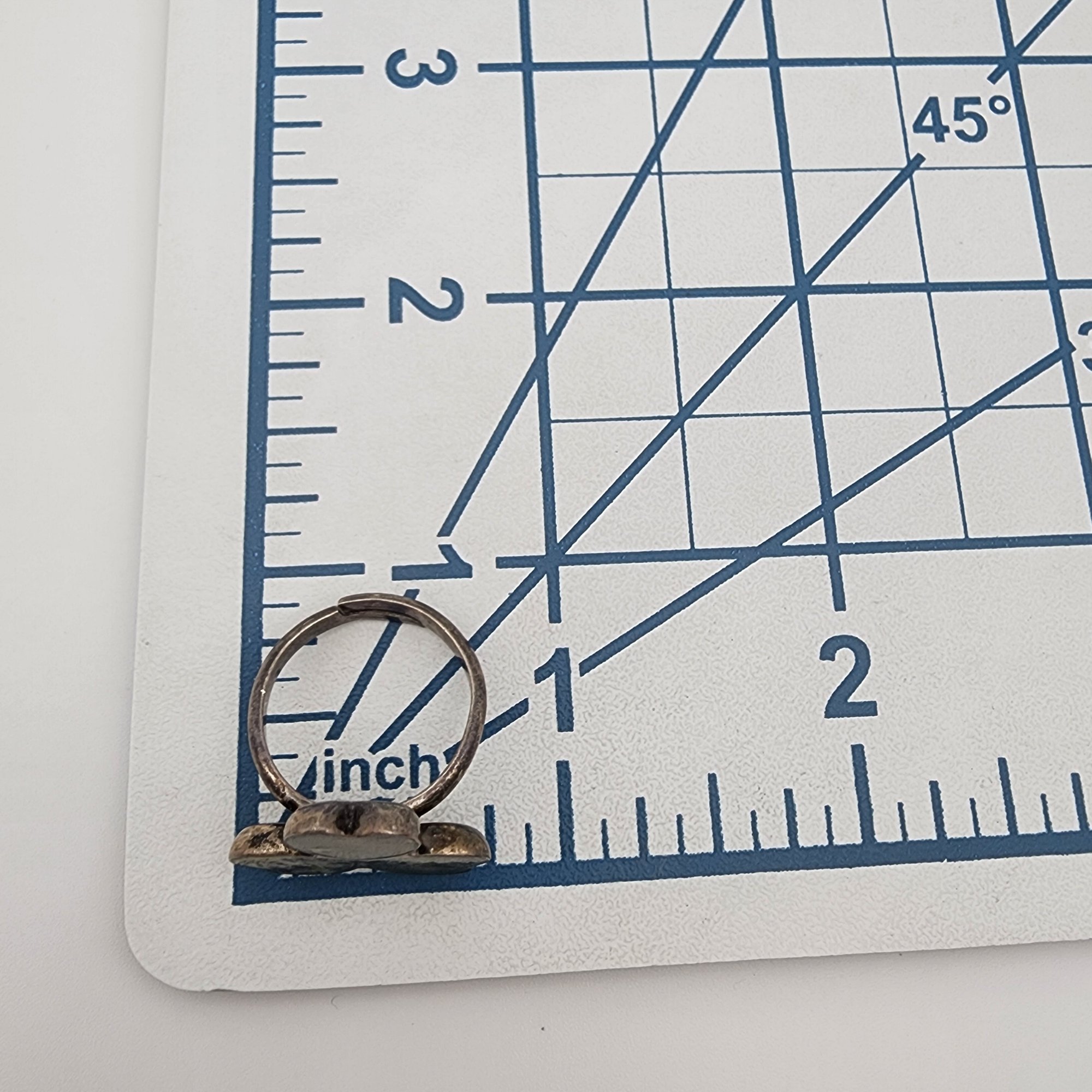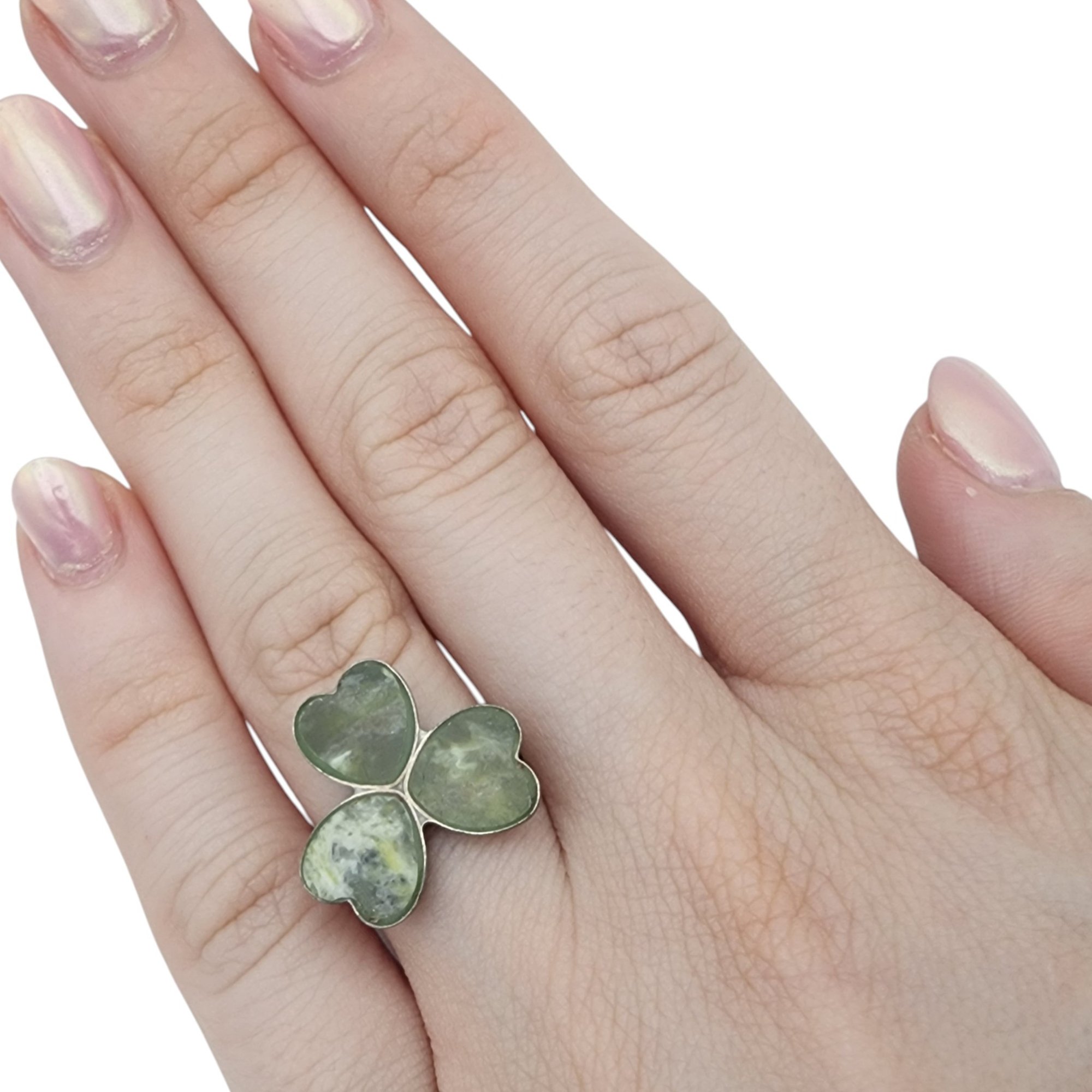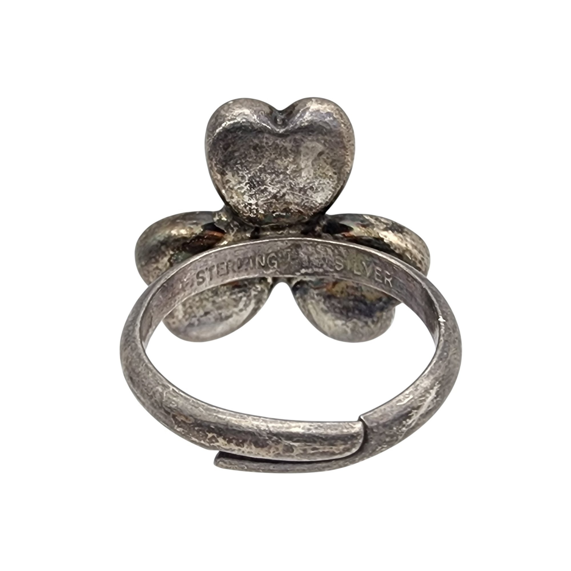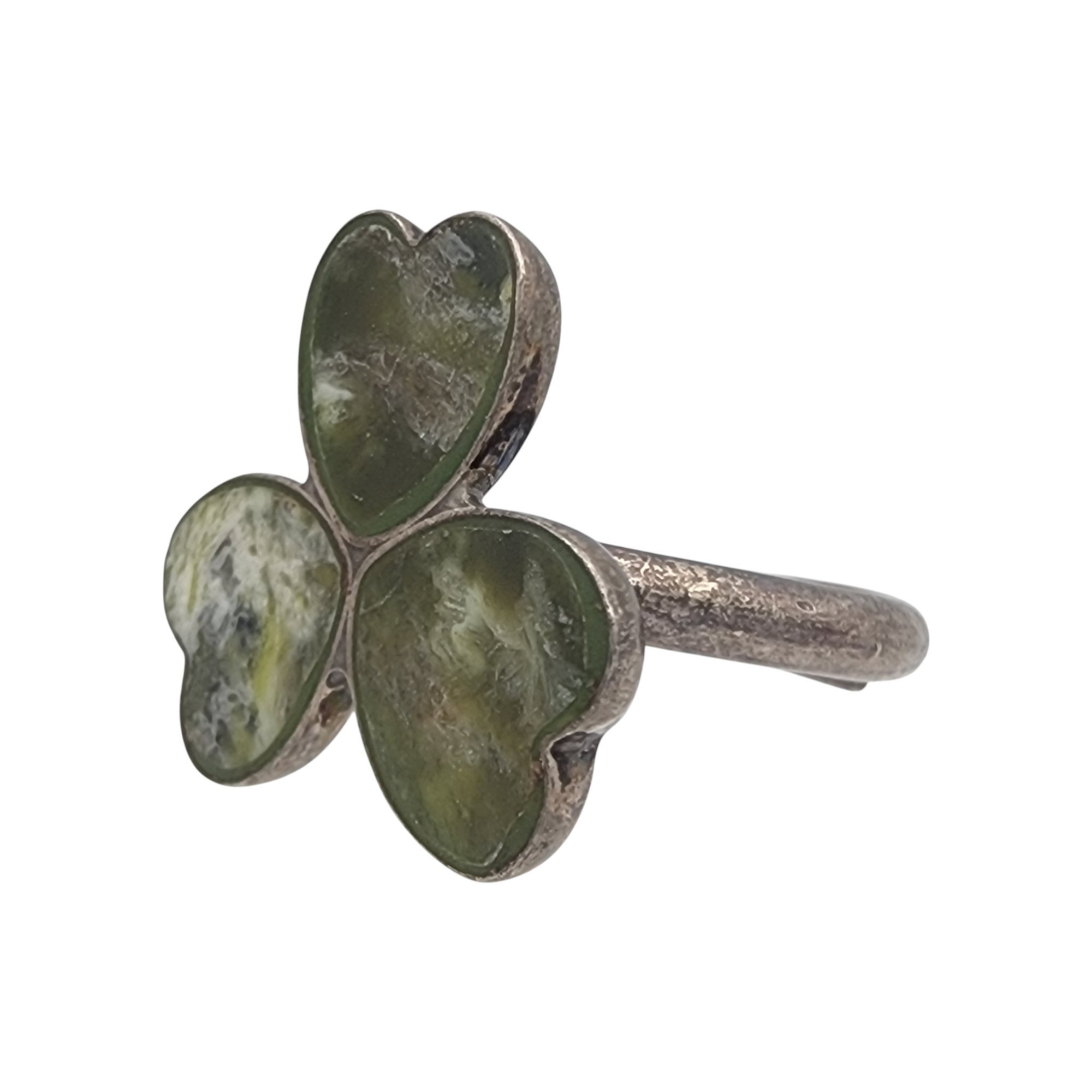 Unique Vintage Sterling Connemara Marble Shamrock Adjustable Ring