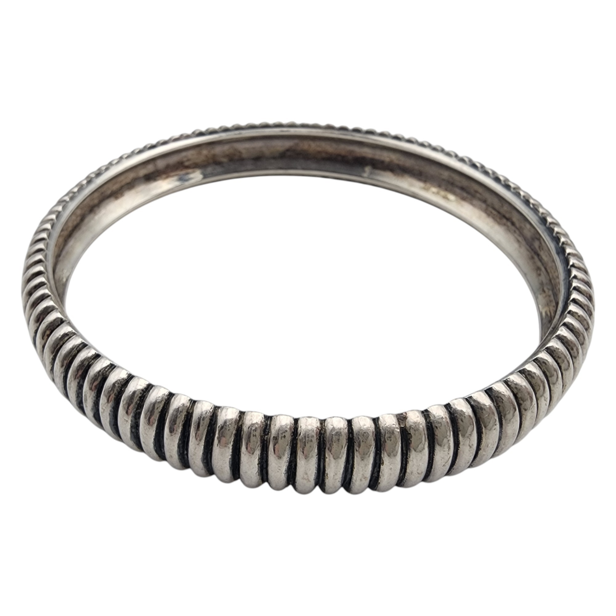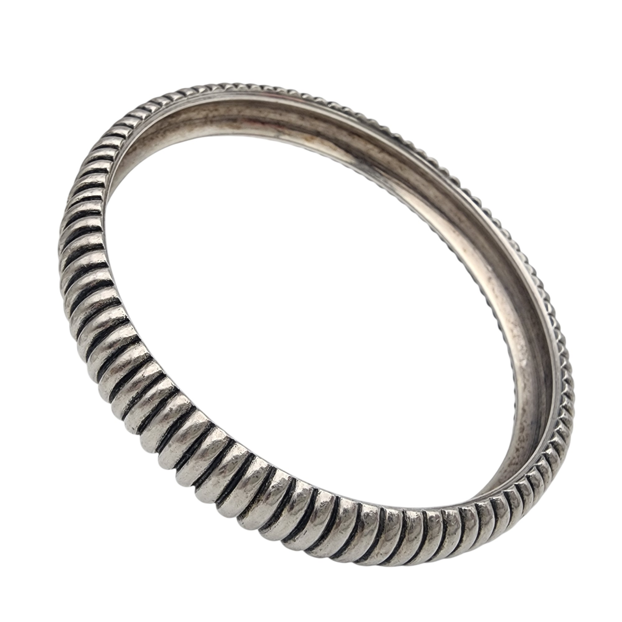 Sterling Silver Ribbed Bangle Bracelet – 39g