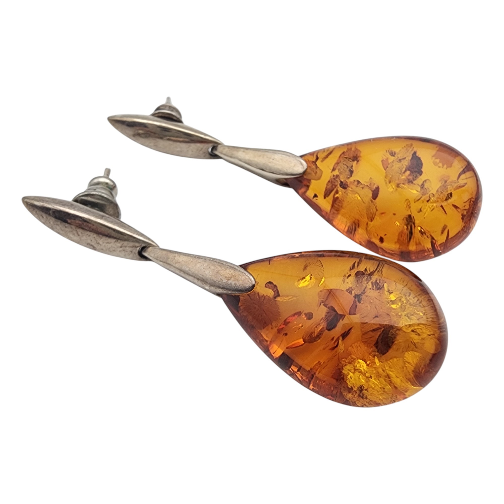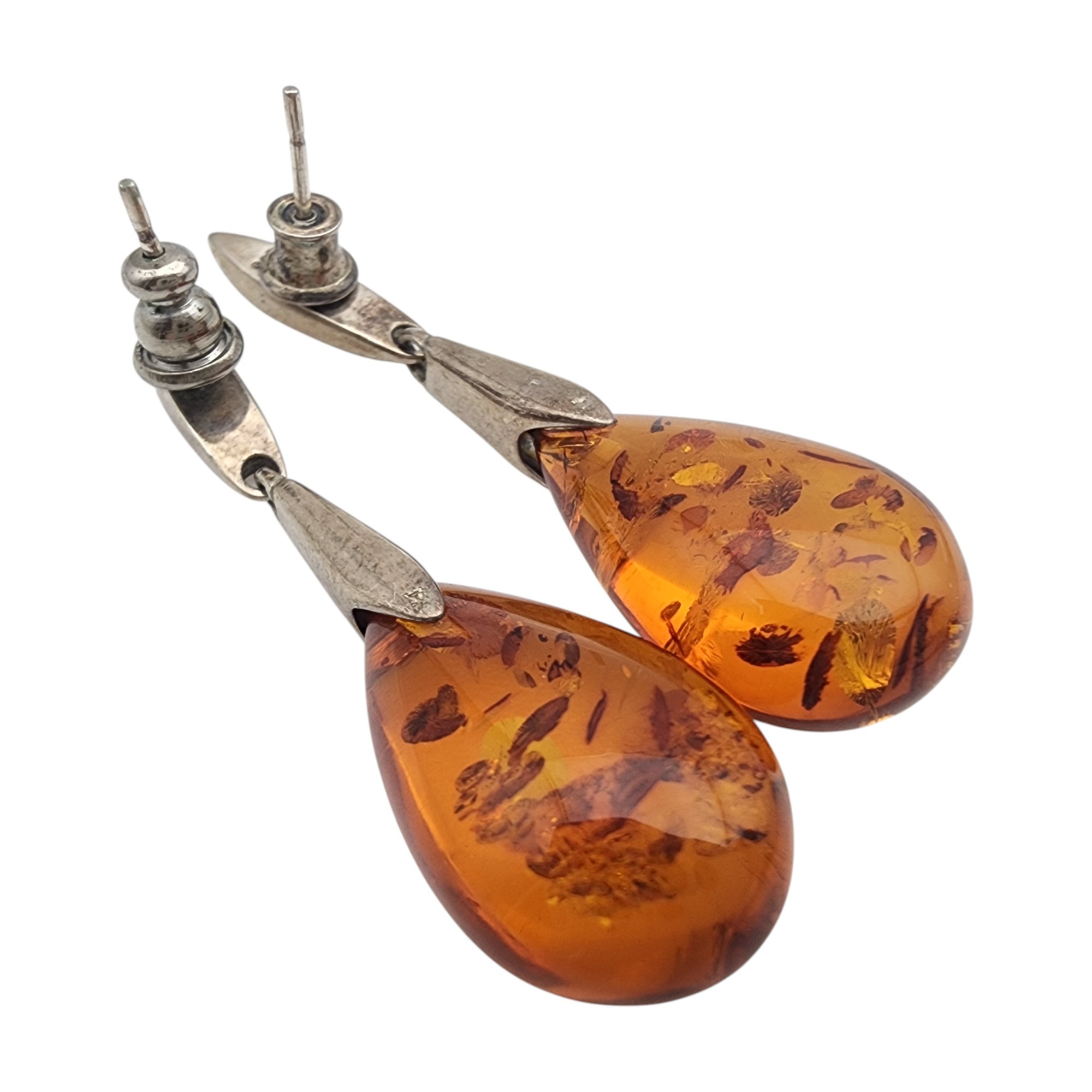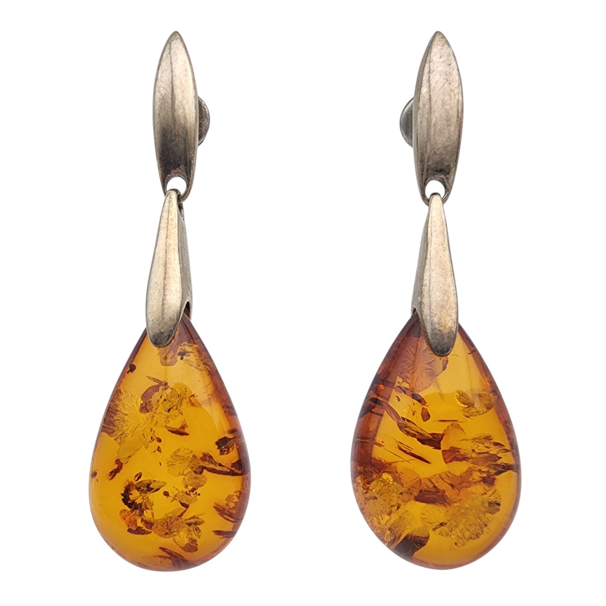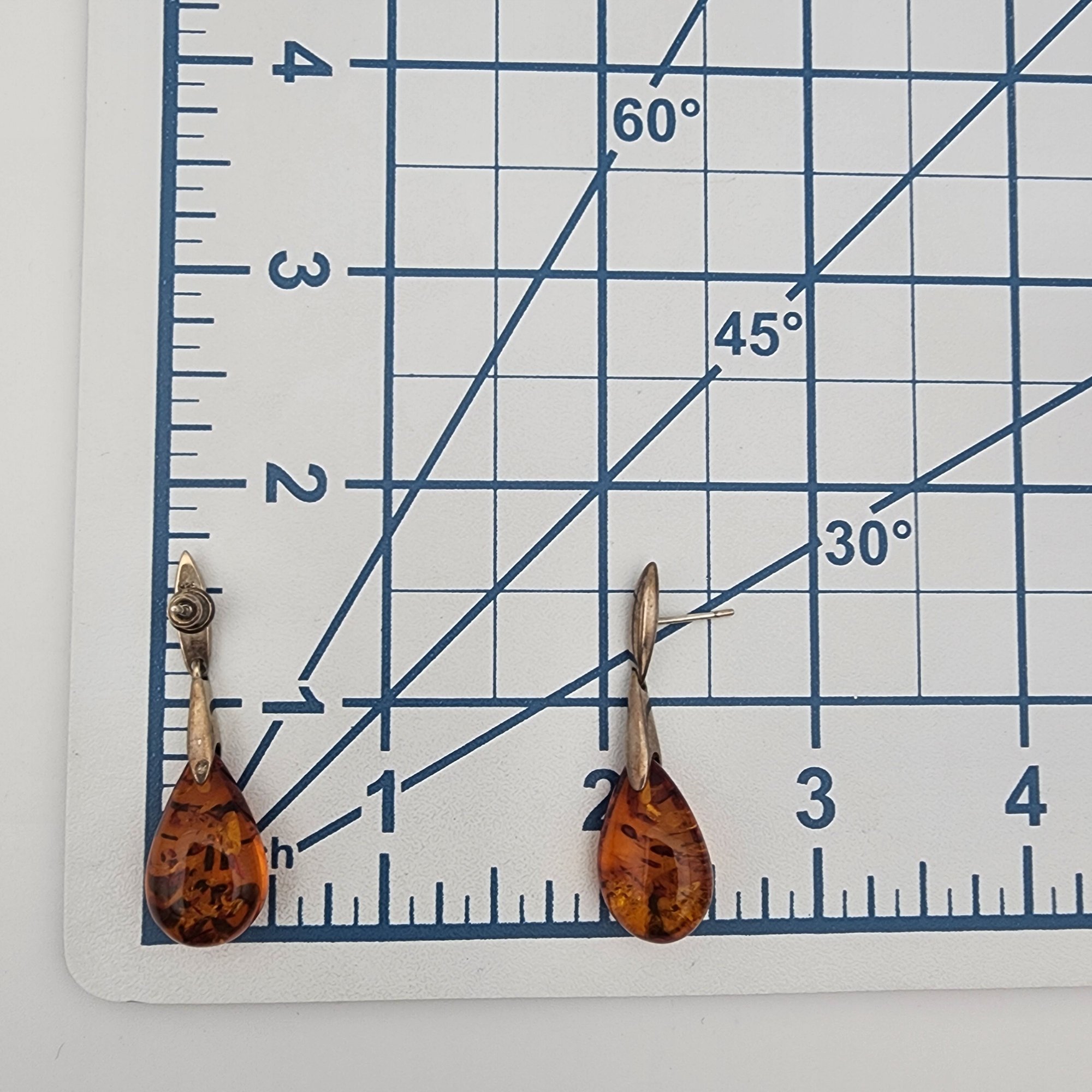 Vintage Sterling Amber Drop Earrings – 6.9g