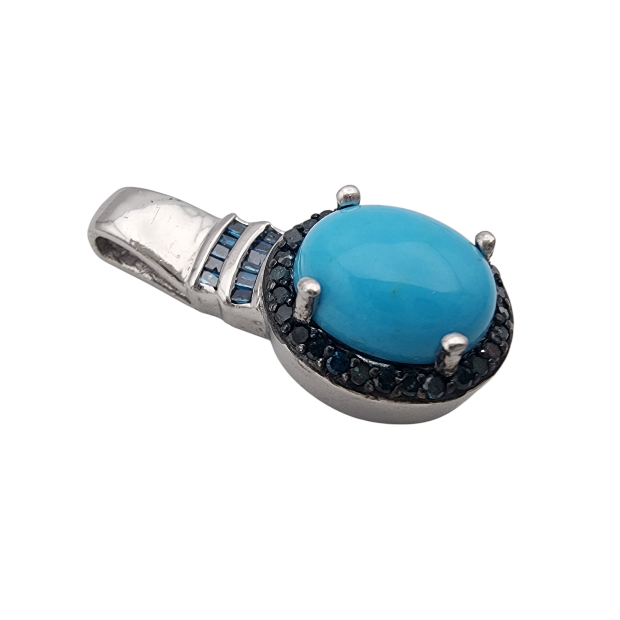 Sterling Colored Moissanite/Diamond and Turquoise Pendant – 3.3g