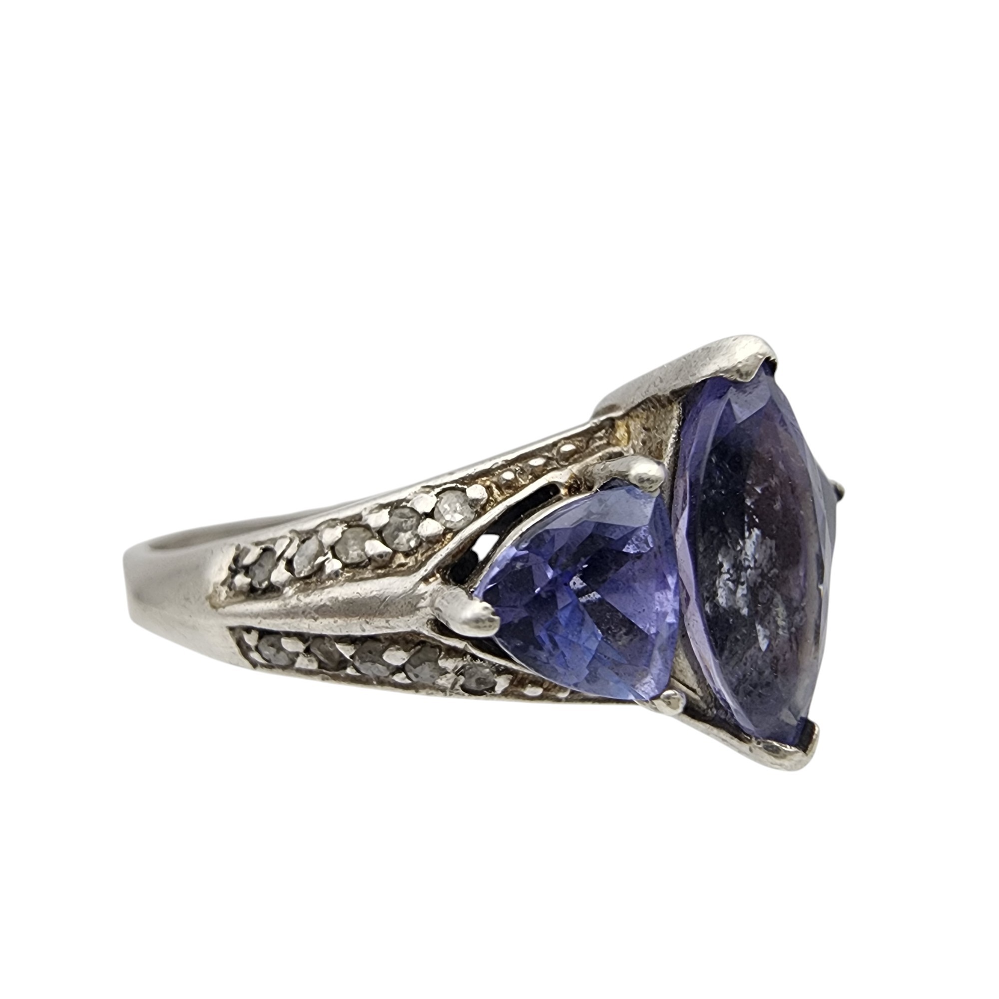 Sterling Iolite and Diamond Ring Sz 9 – 3.4g