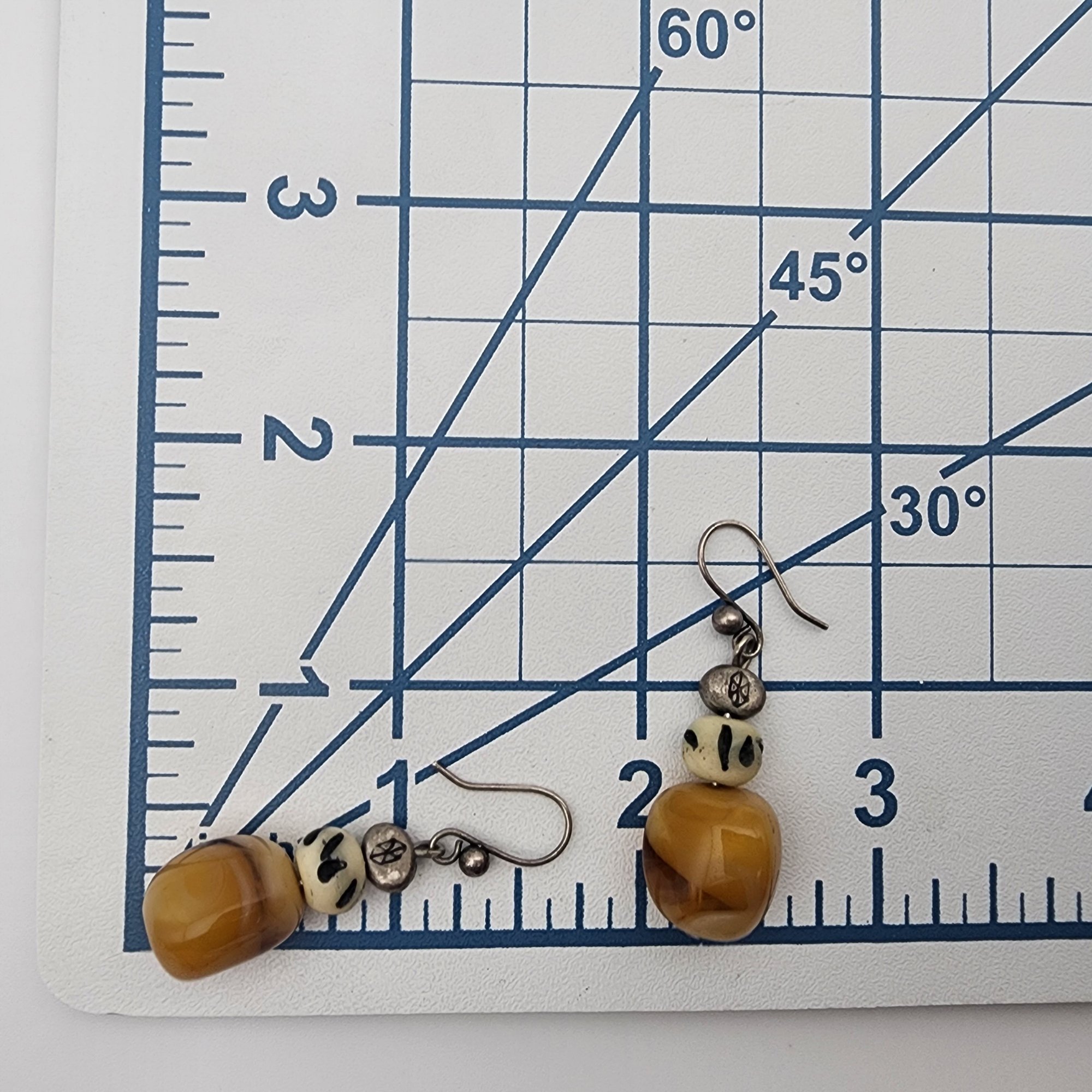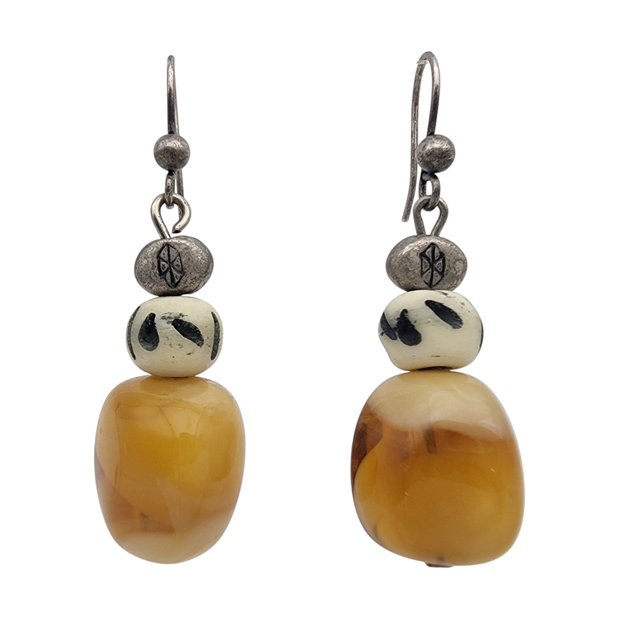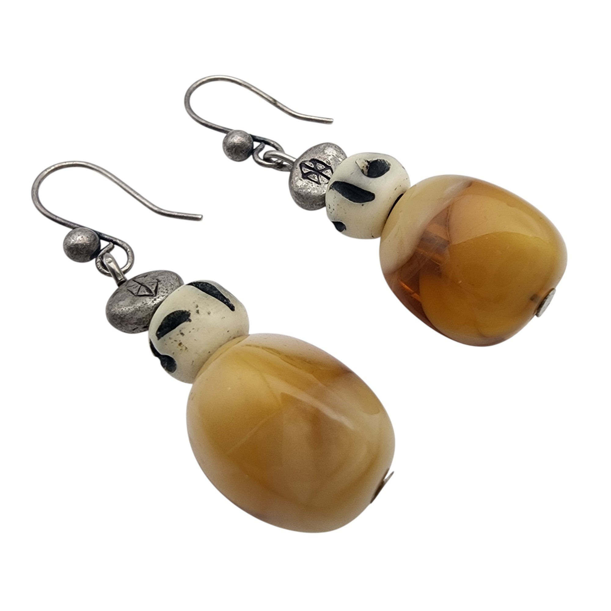 Sterling Amber and Bead Dangle Earrings – 5.7g