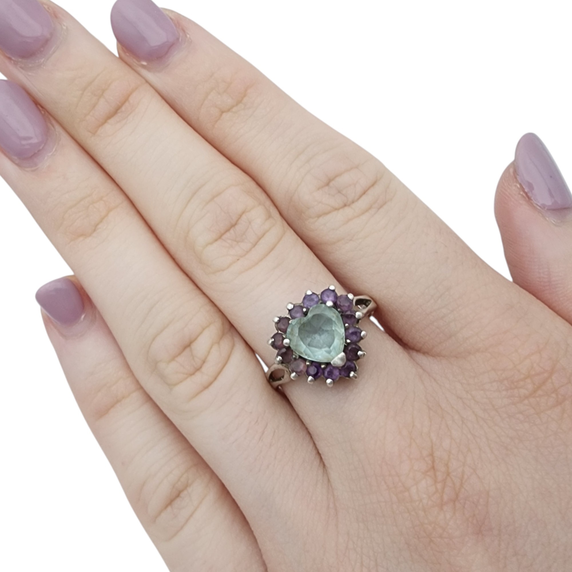 Sterling Topaz and Garnet Heart Ring Sz 8 – 4.1g