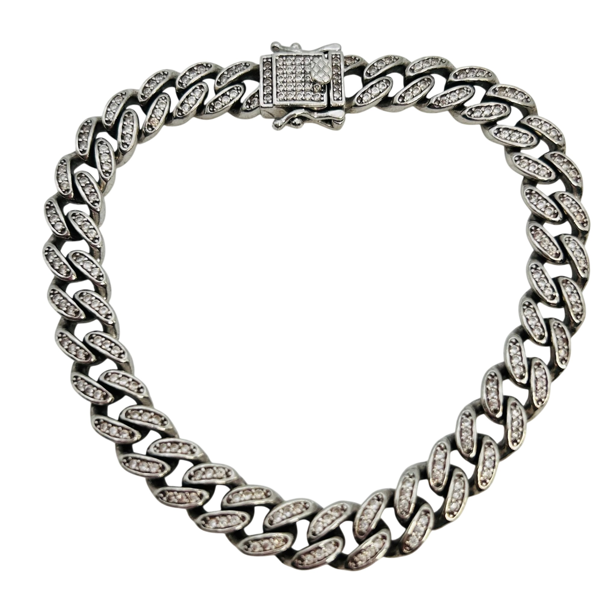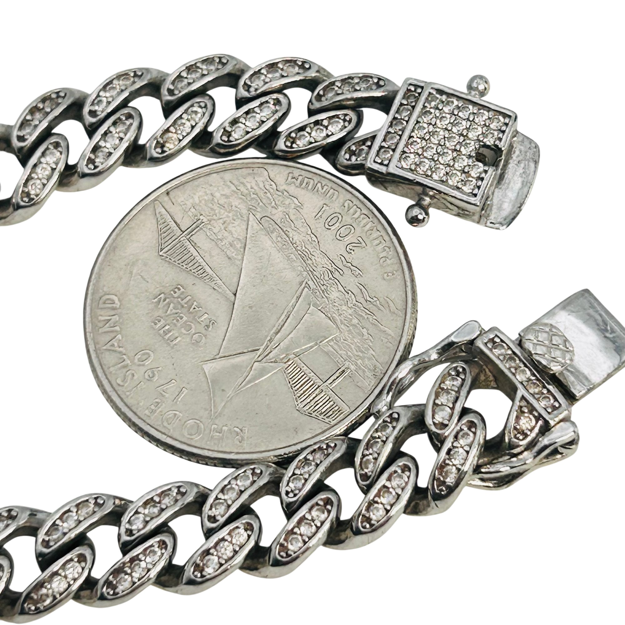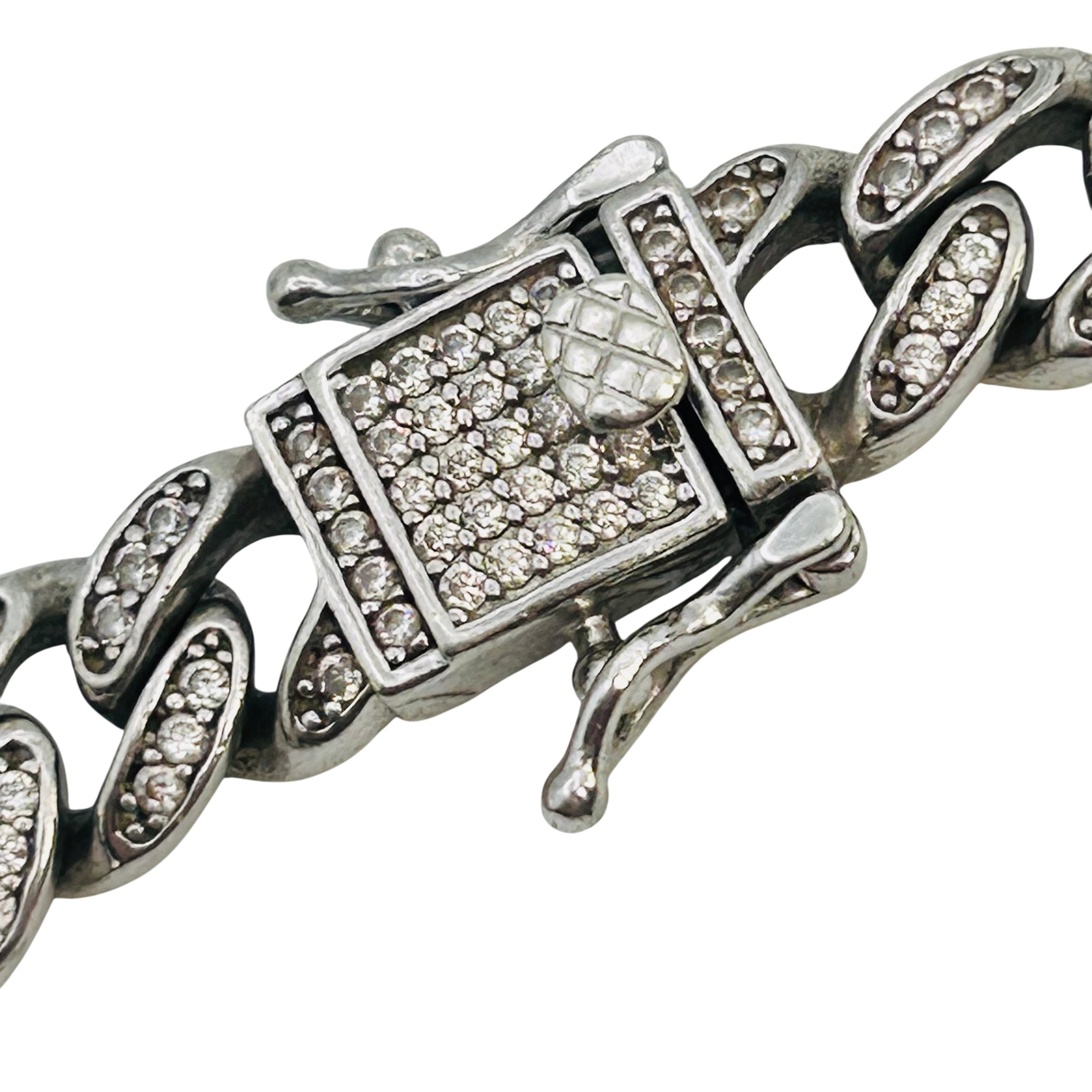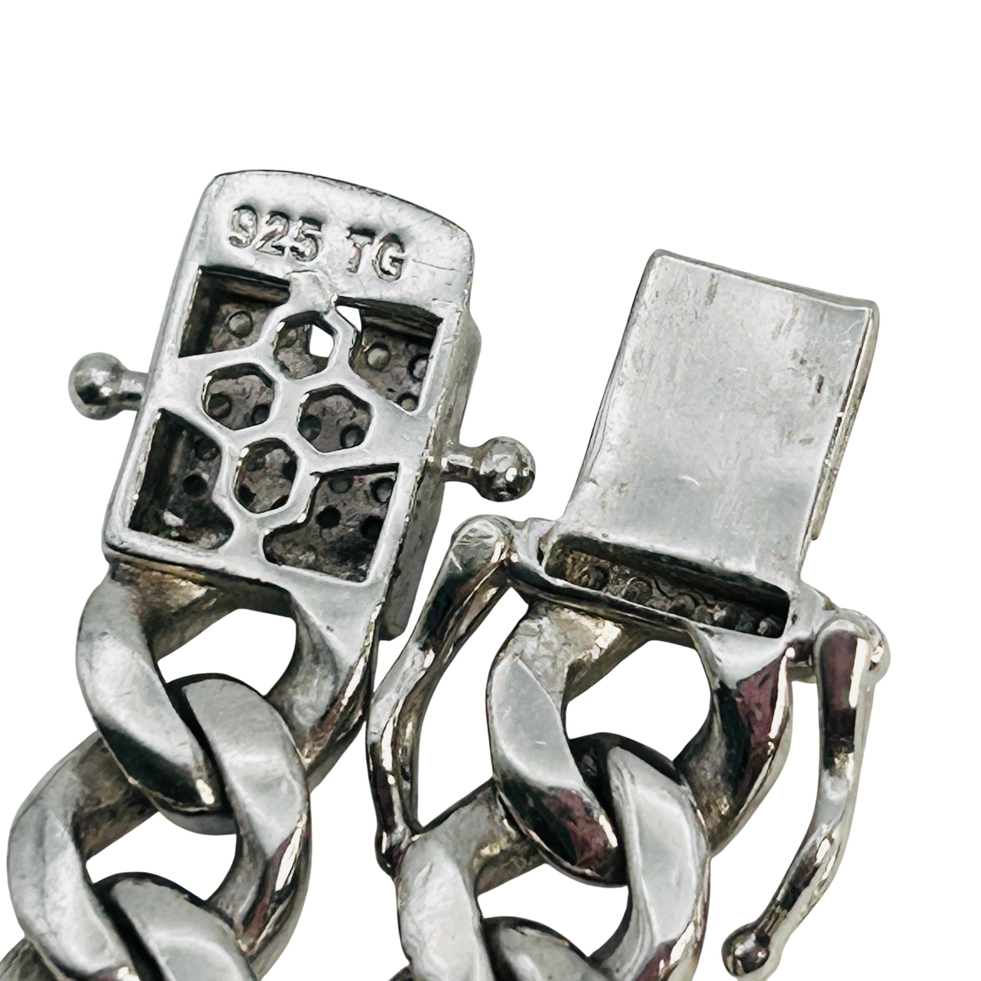 TG rhinestone accented Sterling Cuban linked chain bracelet 27.2 g