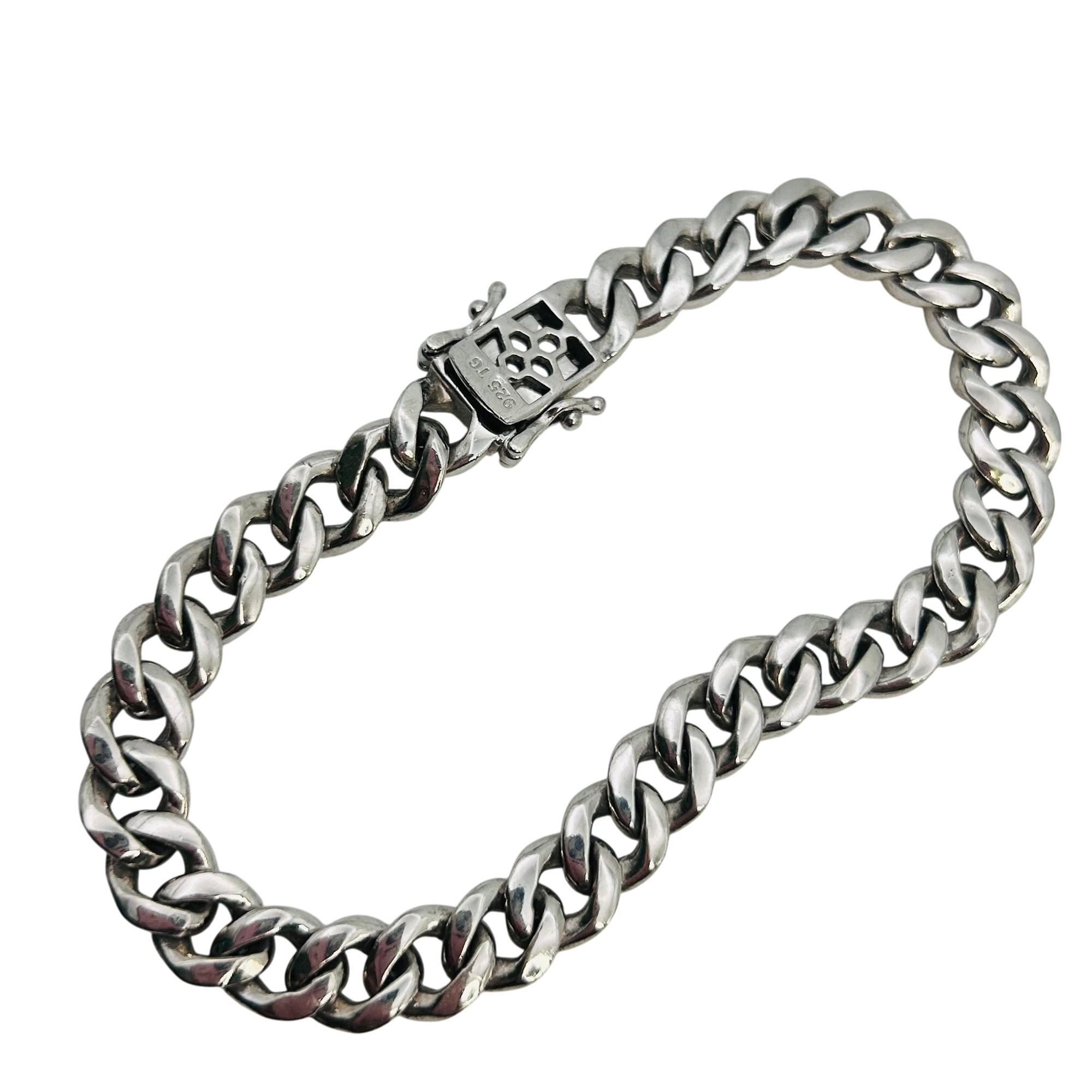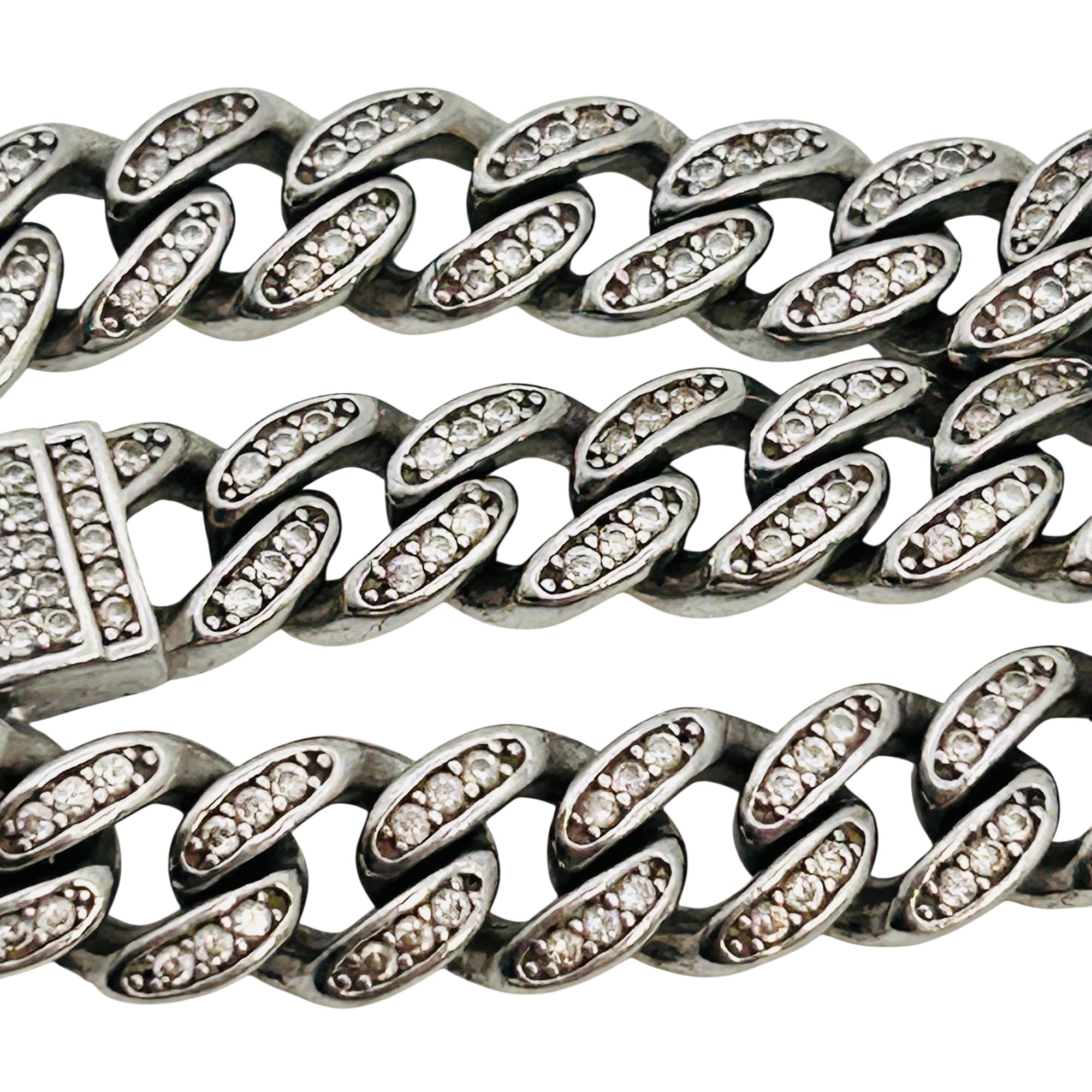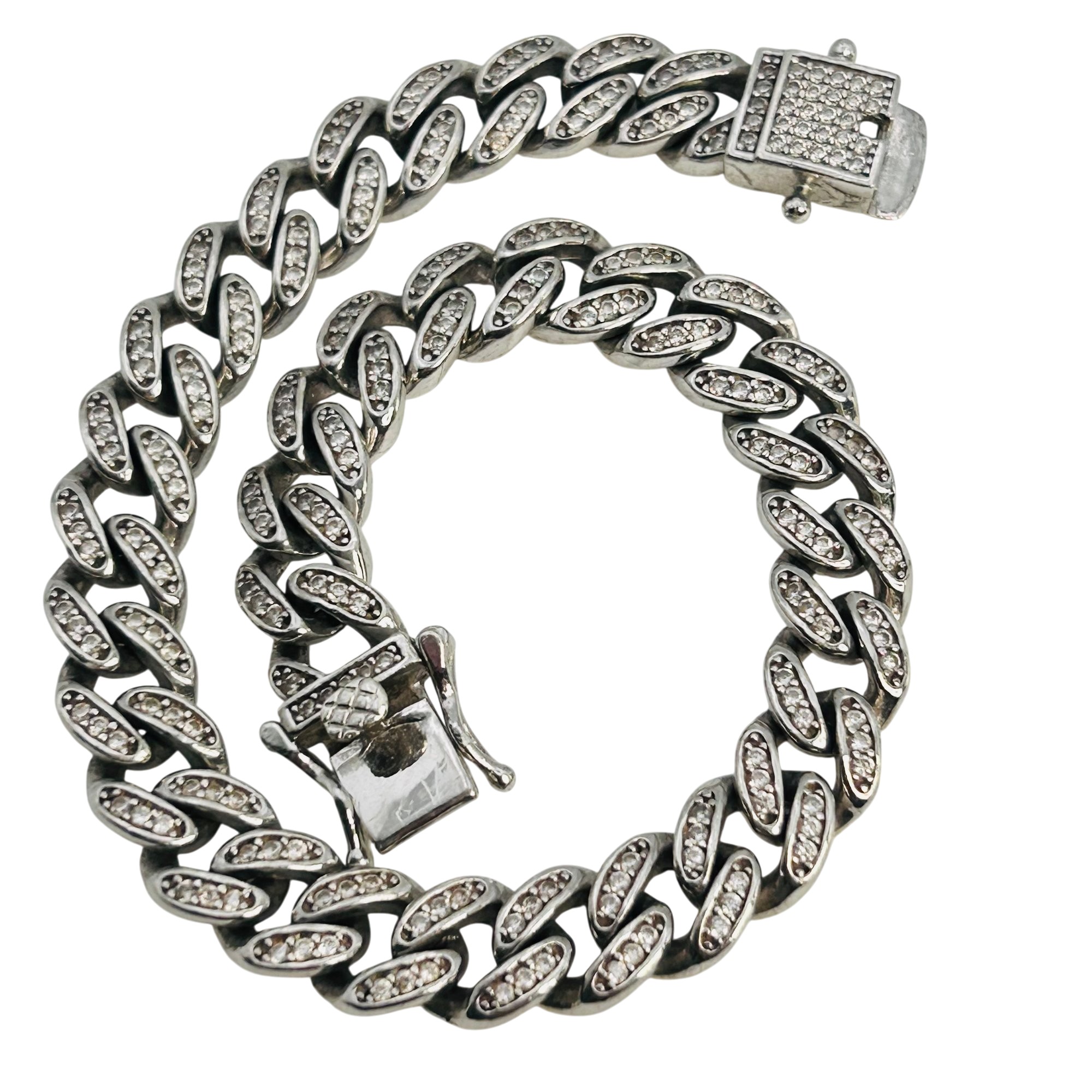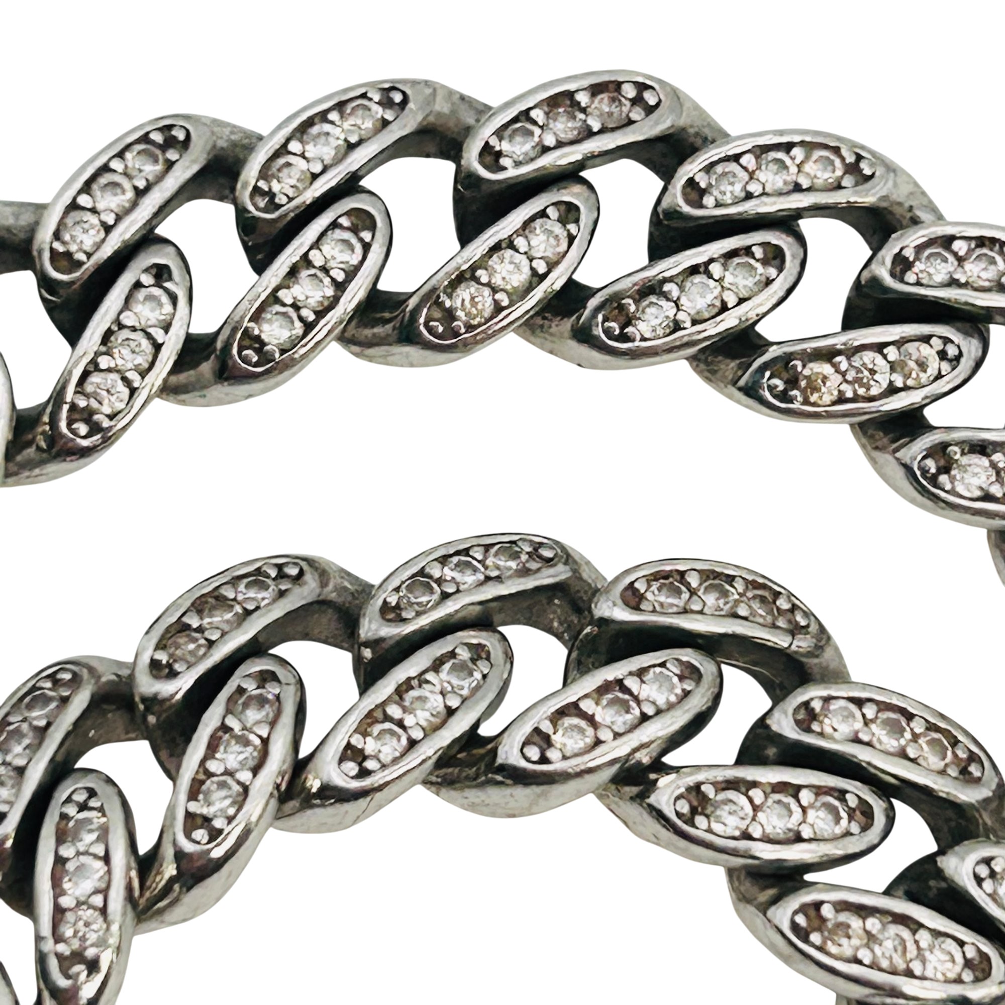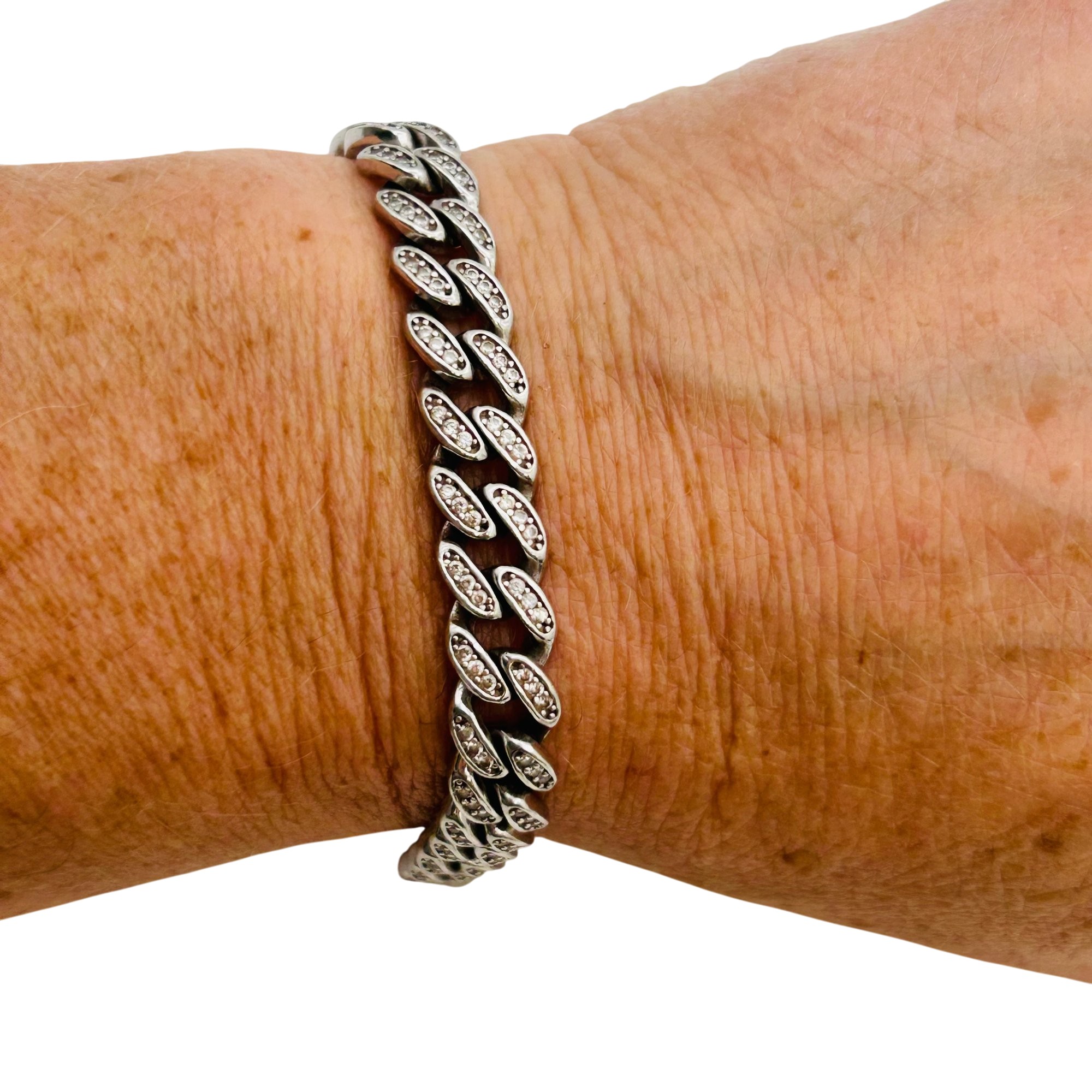 TG rhinestone accented Sterling Cuban linked chain bracelet 27.2 g