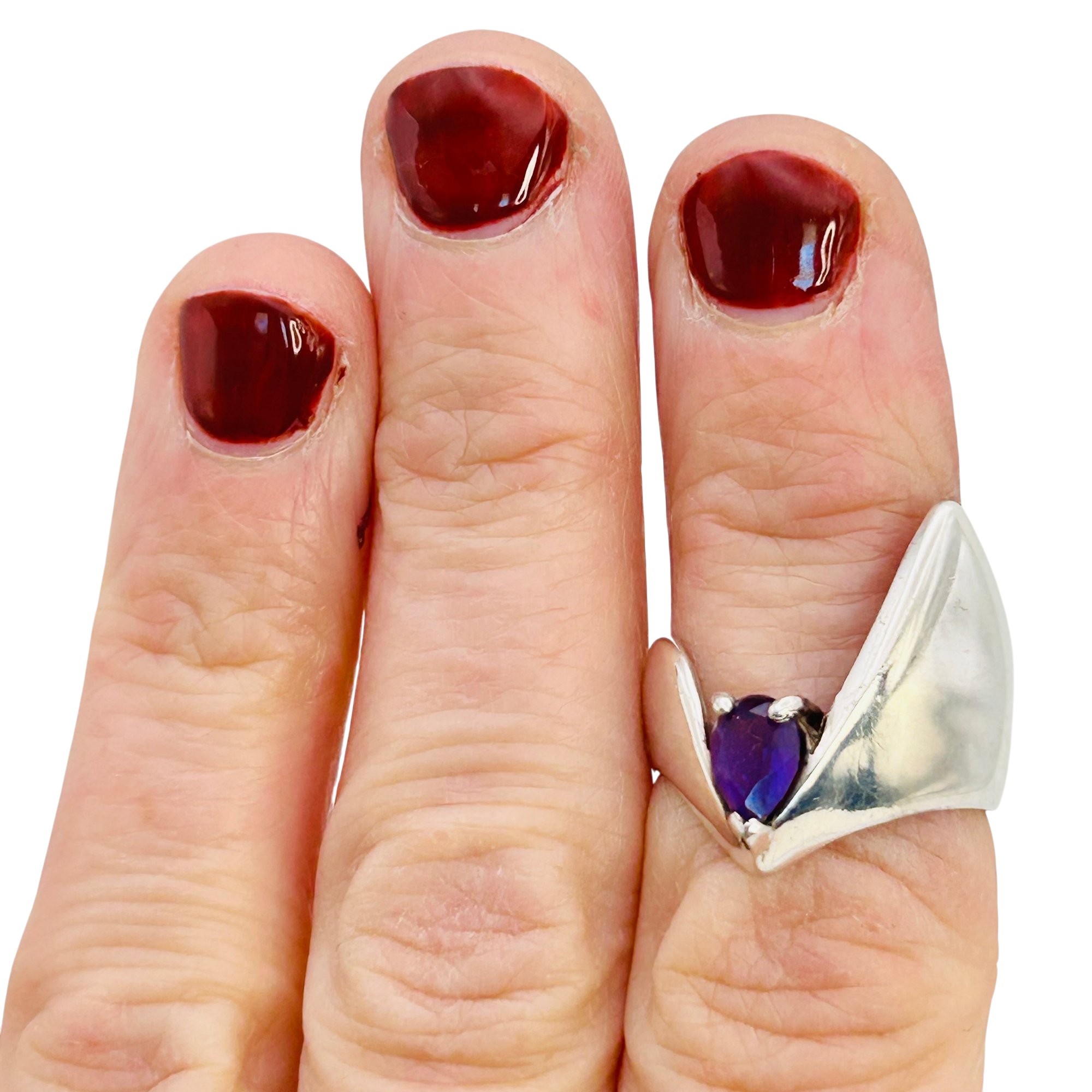 Amethyst Sterling modern ring size 7.5 4.58 g