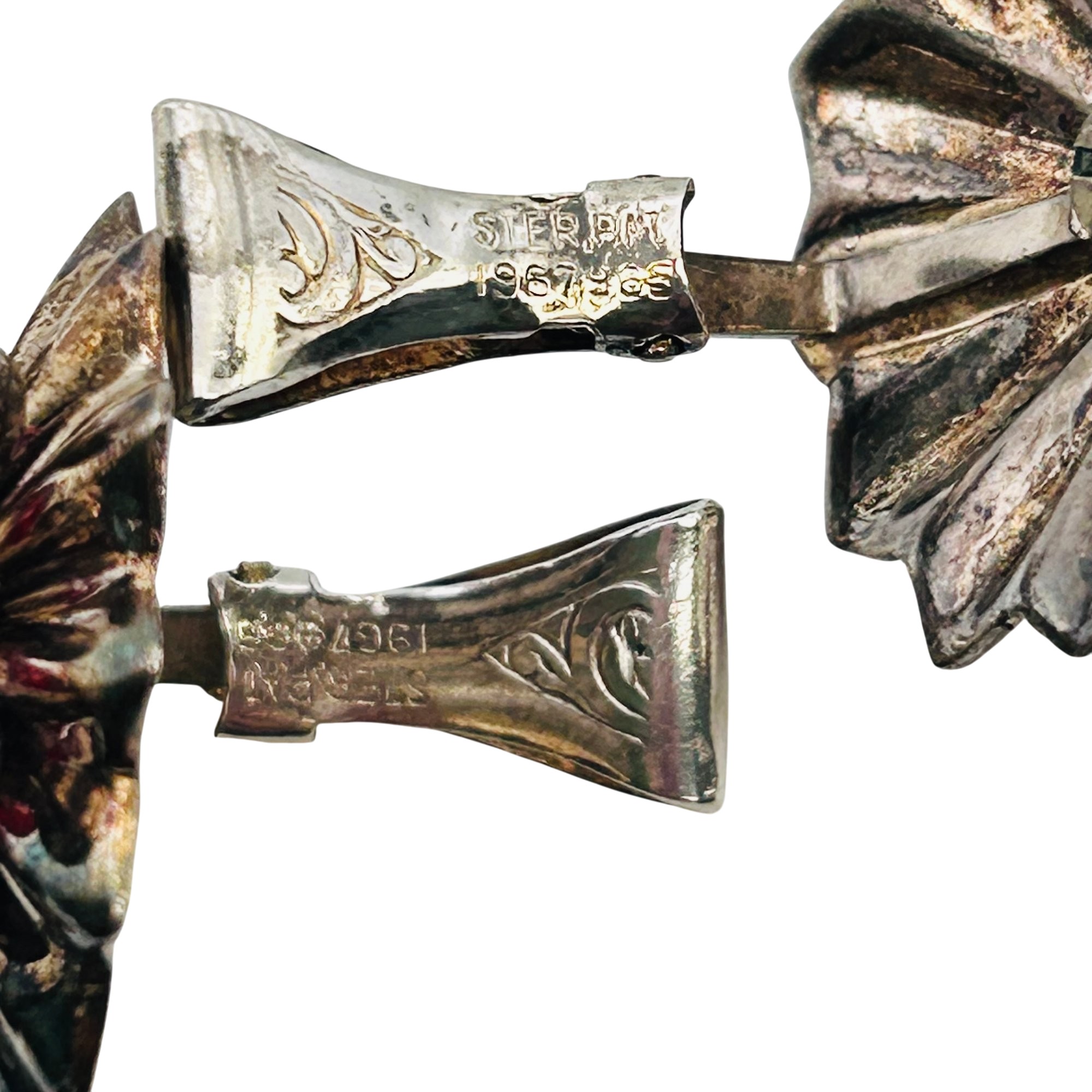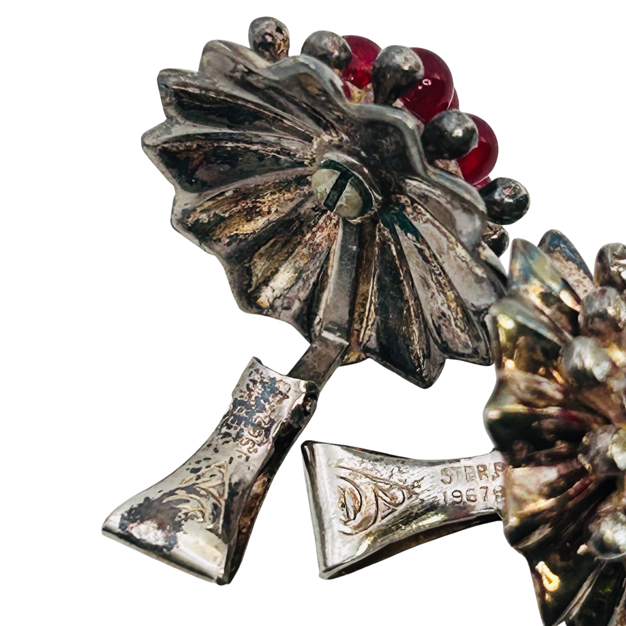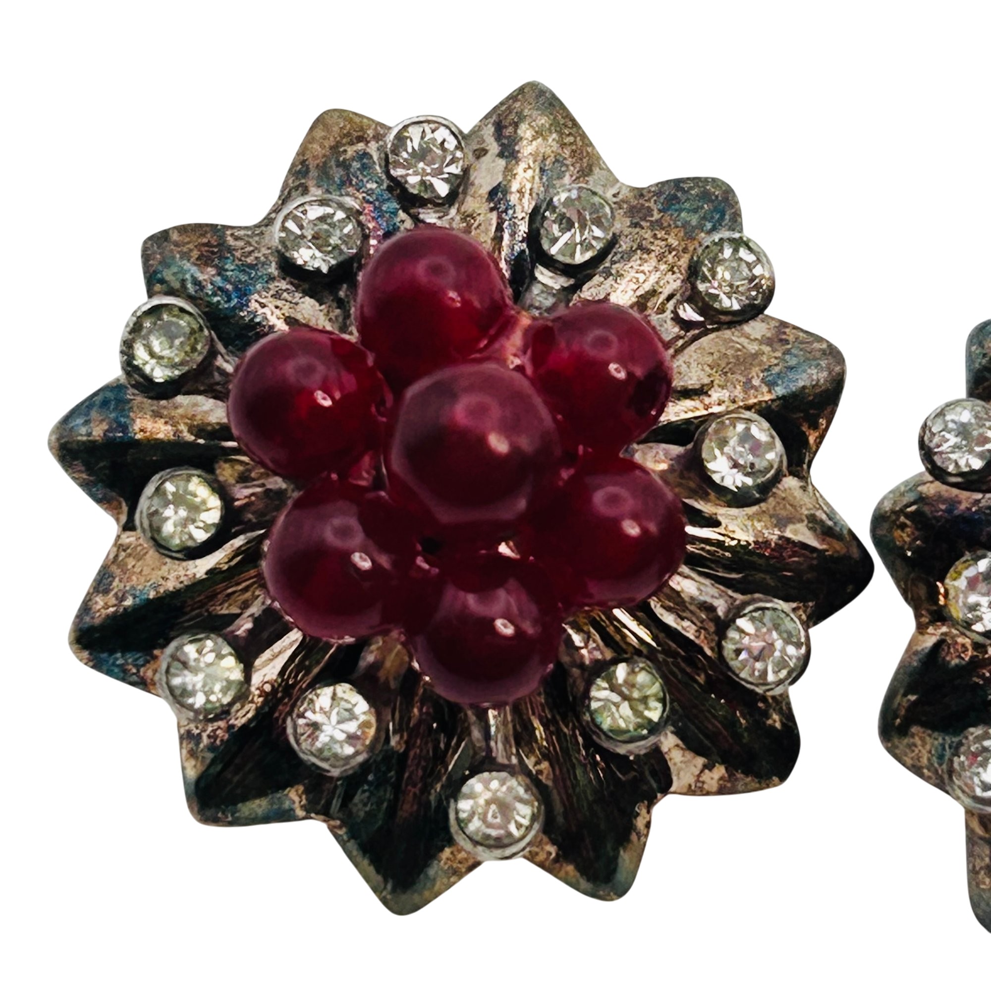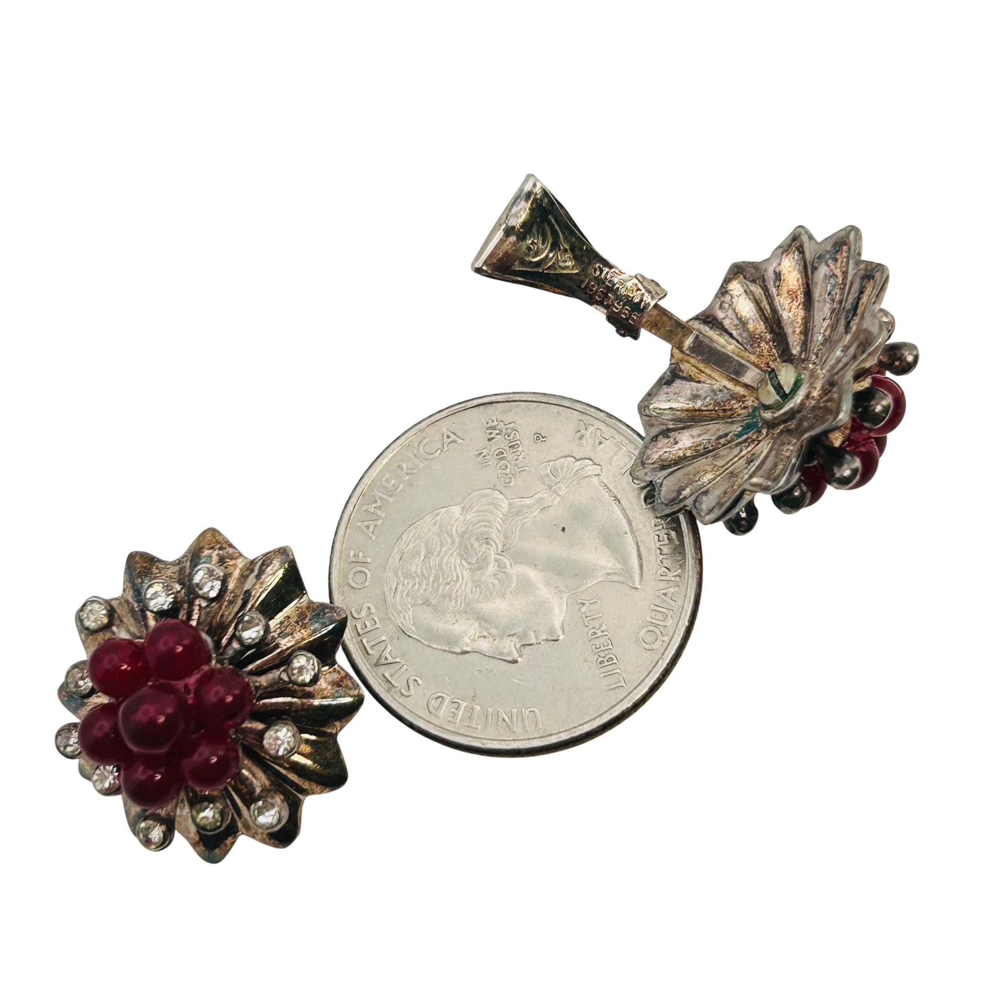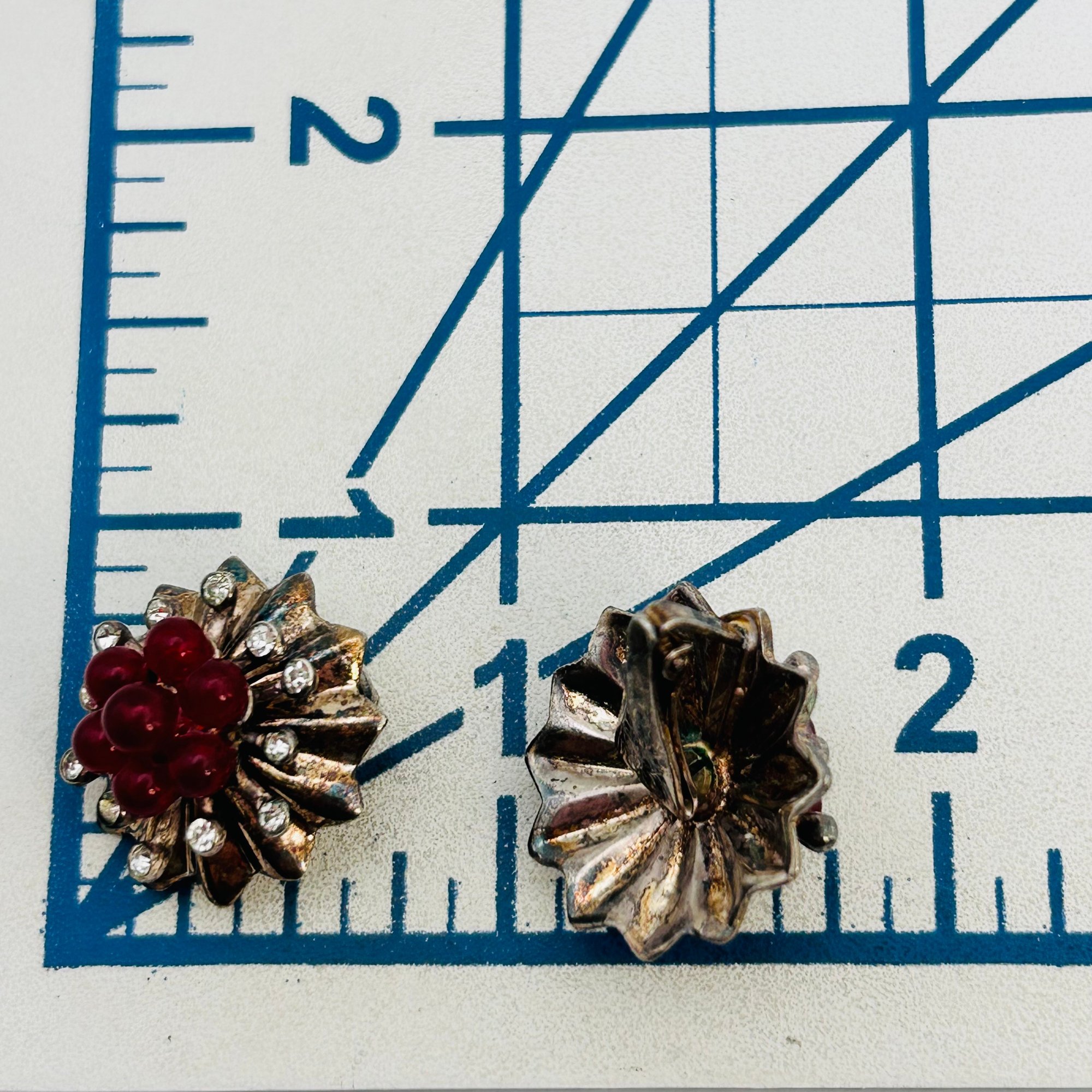Vintage Sterling red bead and clear stone clip on earrings 11.4 g