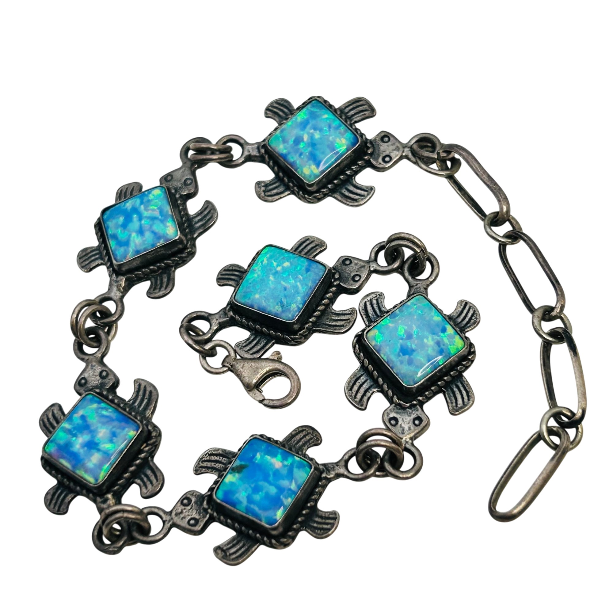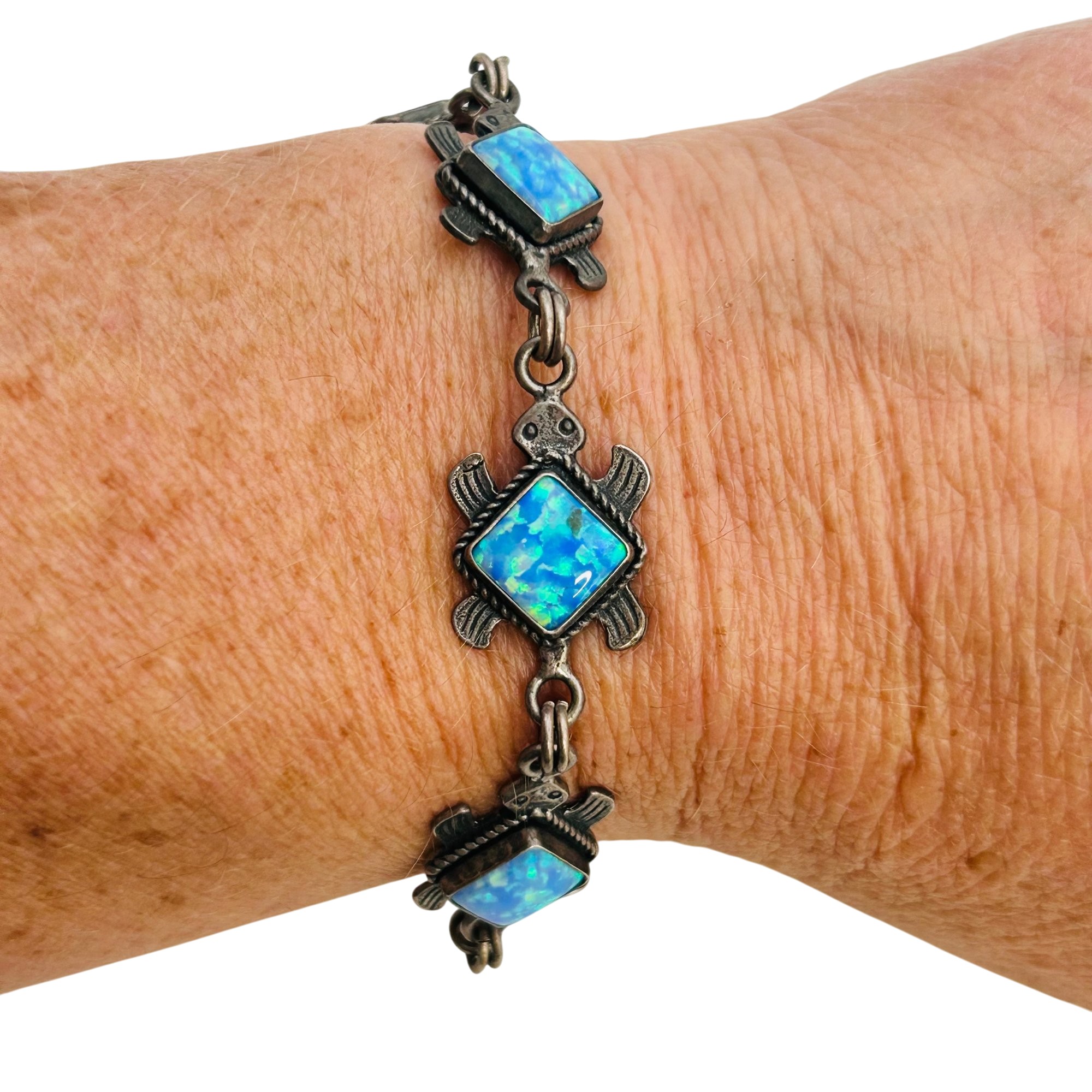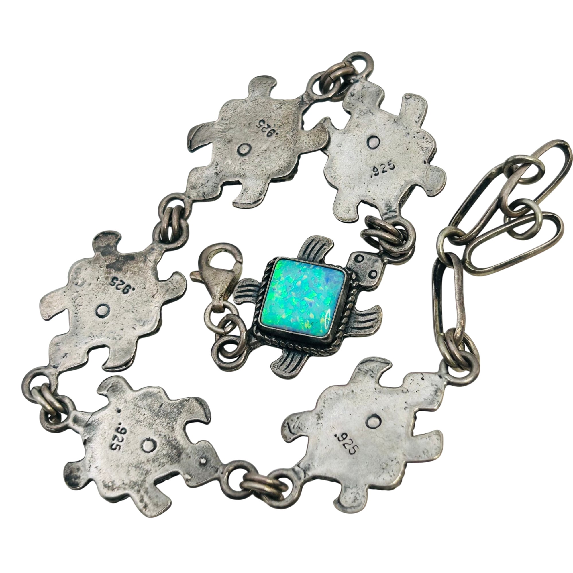 Opal Sterling turtle Link bracelet adjustable 16.1 g