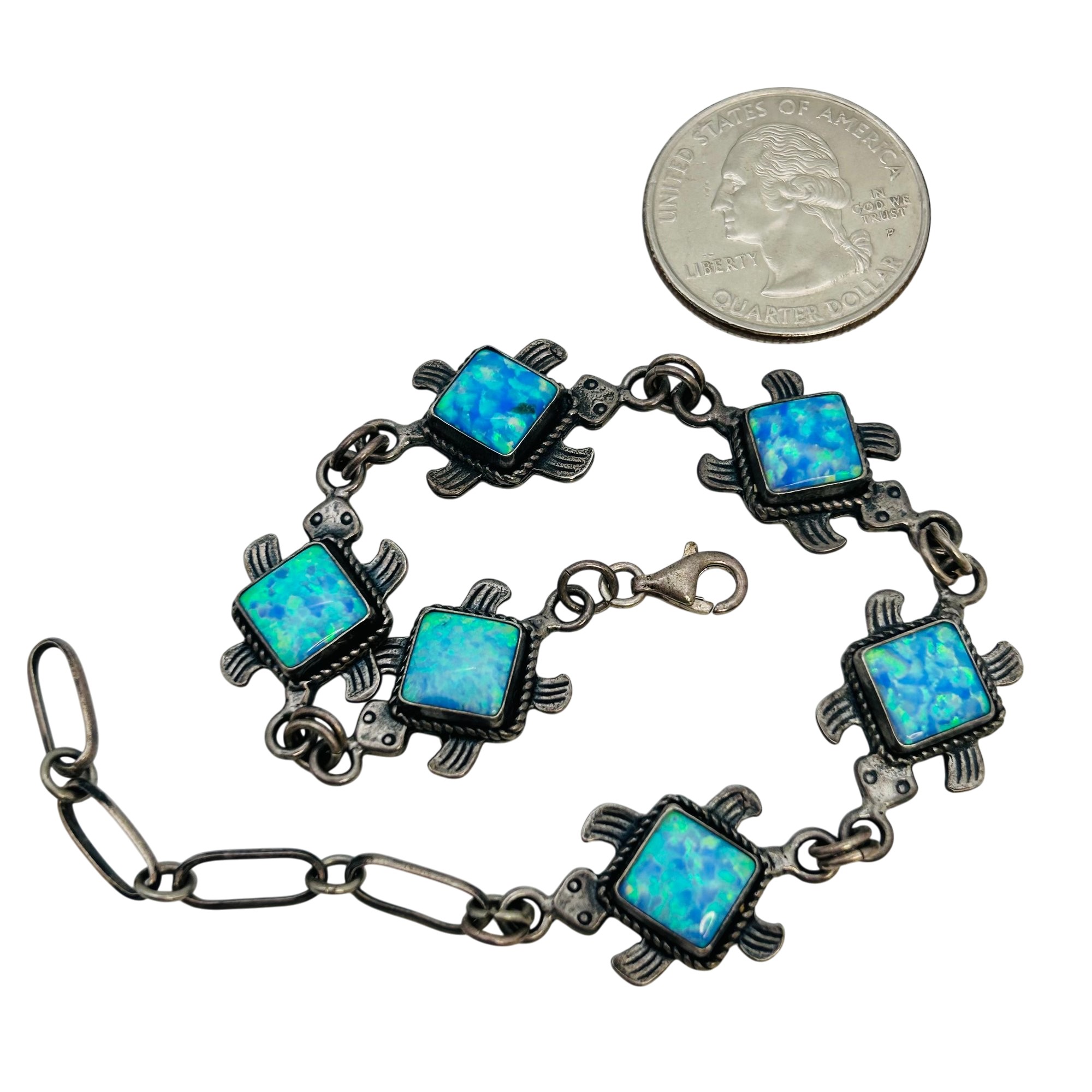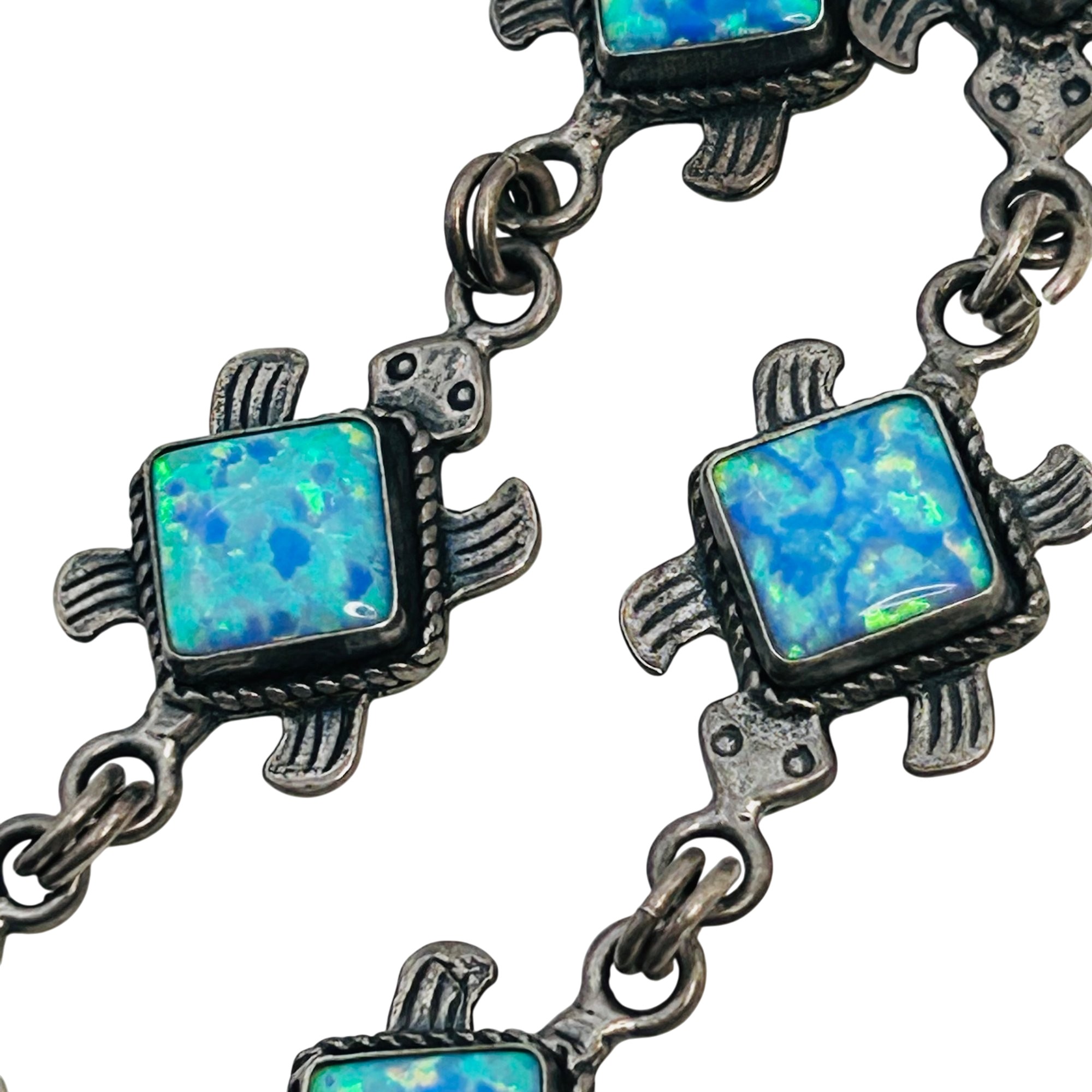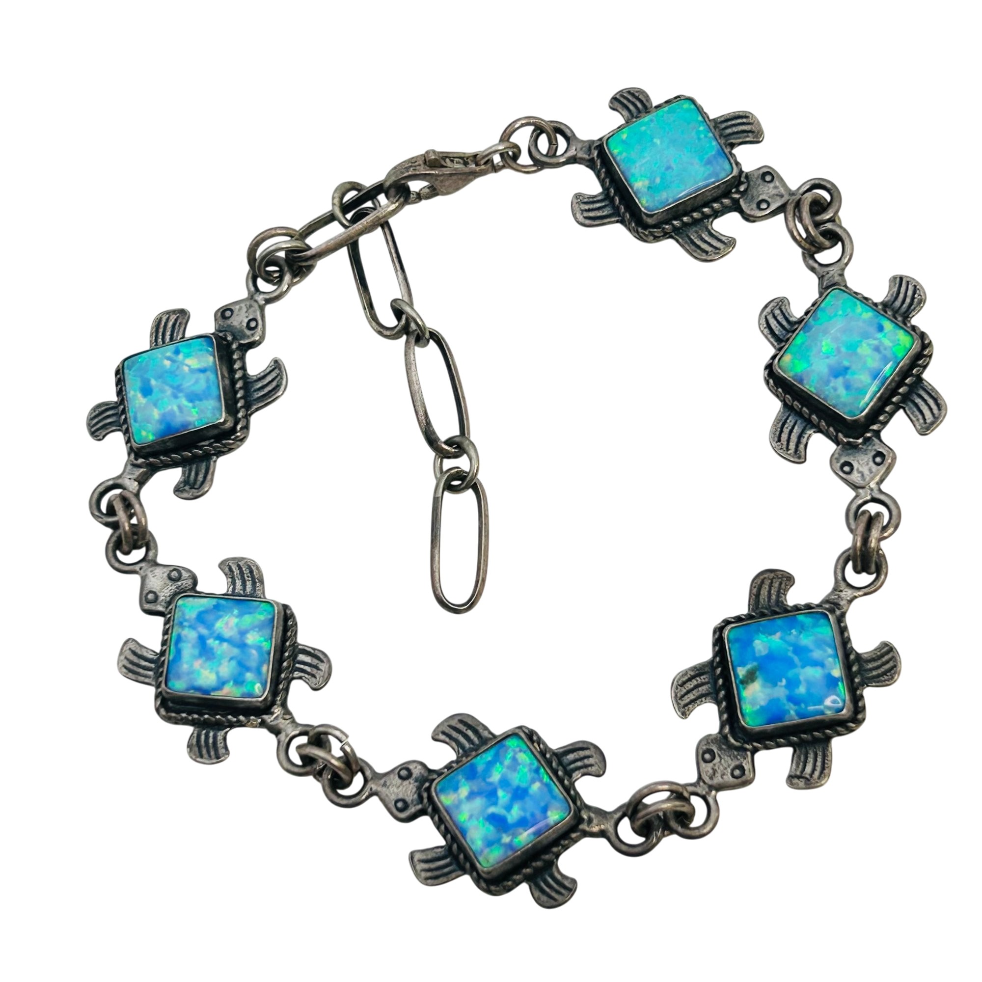 Opal Sterling turtle Link bracelet adjustable 16.1 g