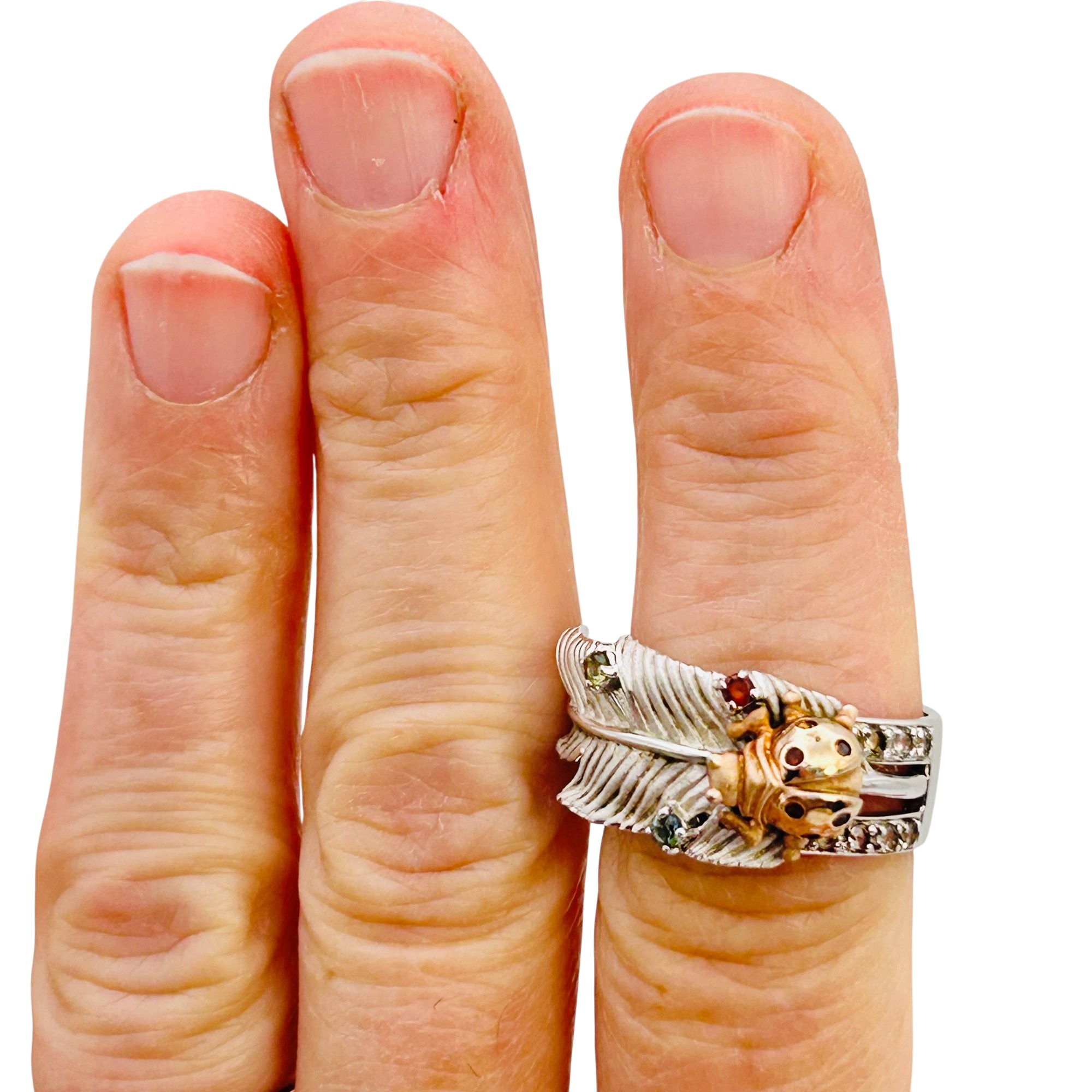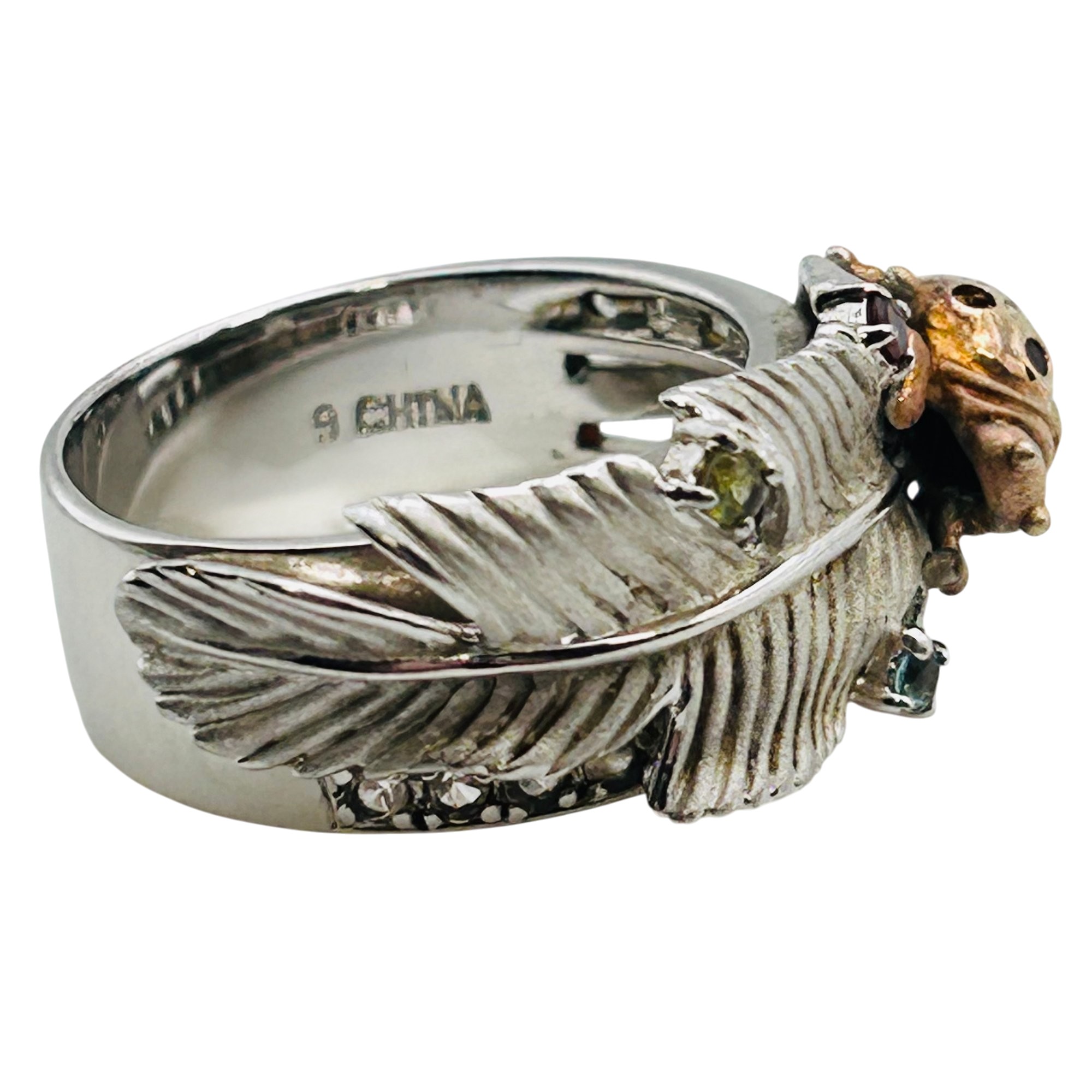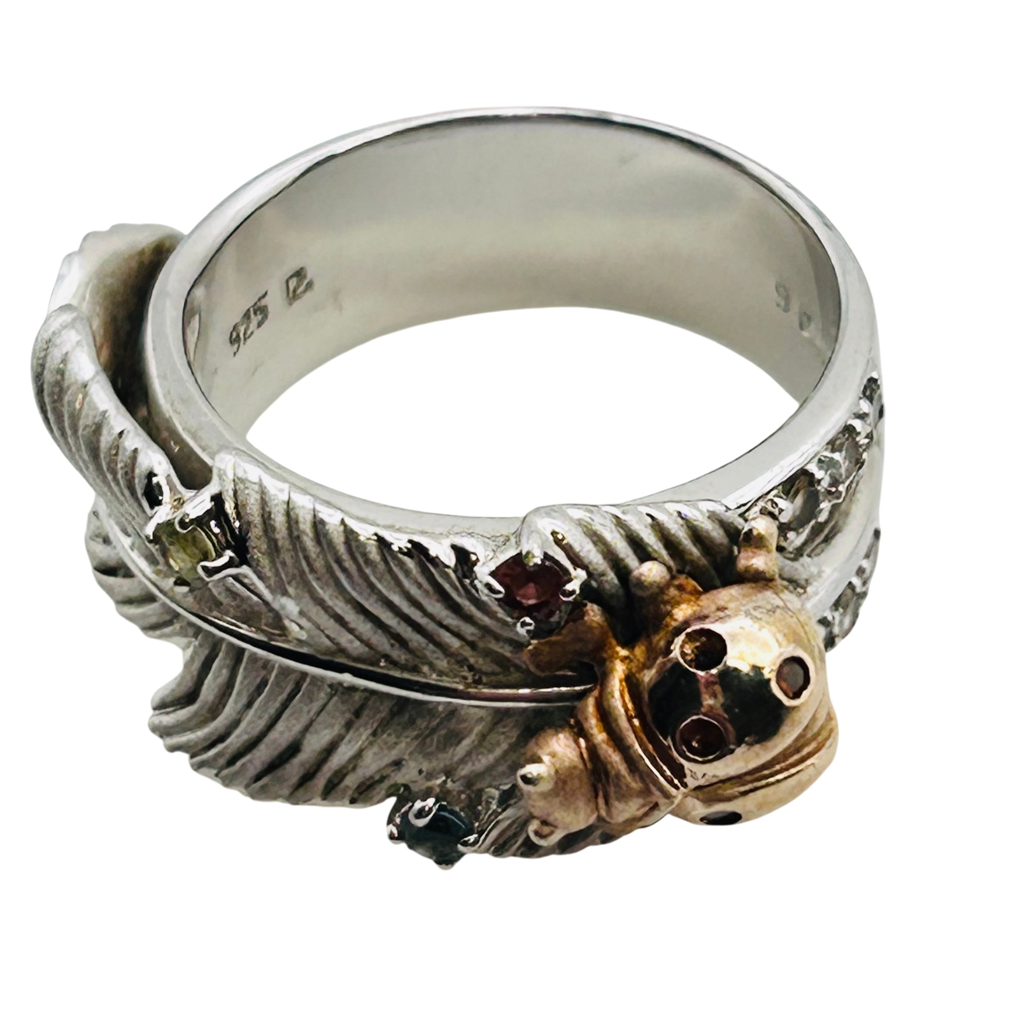Topaz peridot citrine unique ladybug feather ring size 9 9.73 g