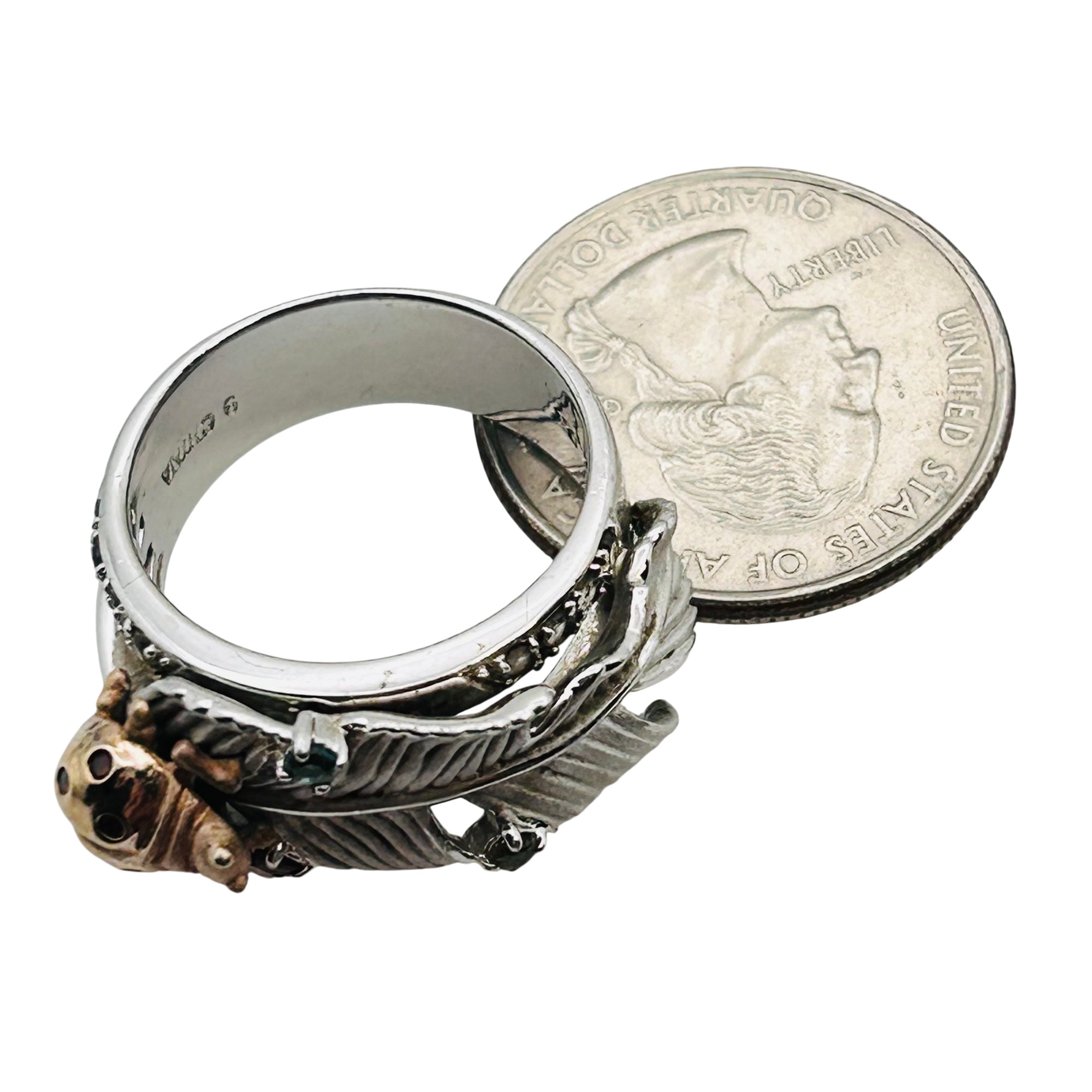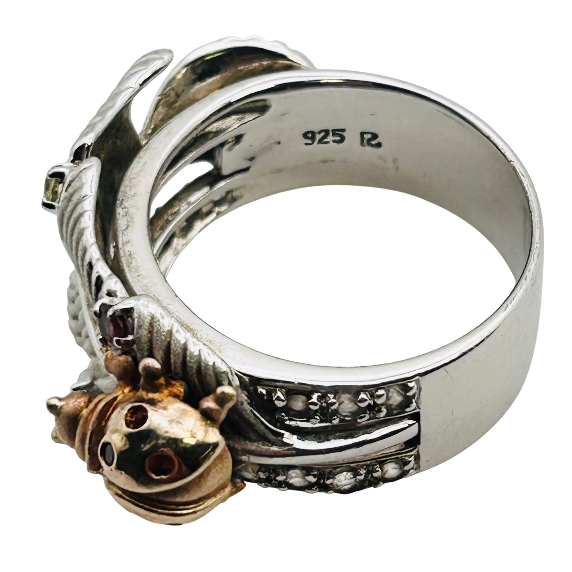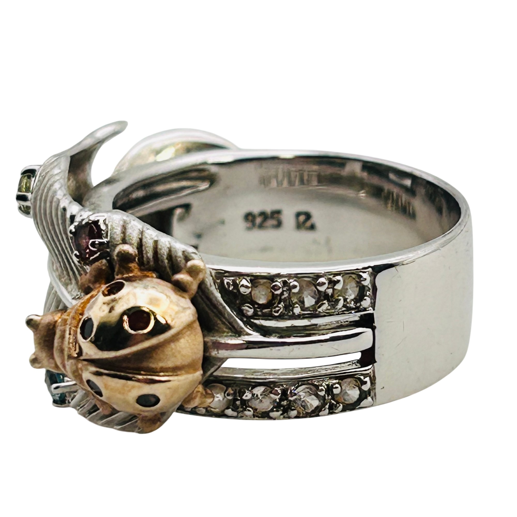 Topaz peridot citrine unique ladybug feather ring size 9 9.73 g