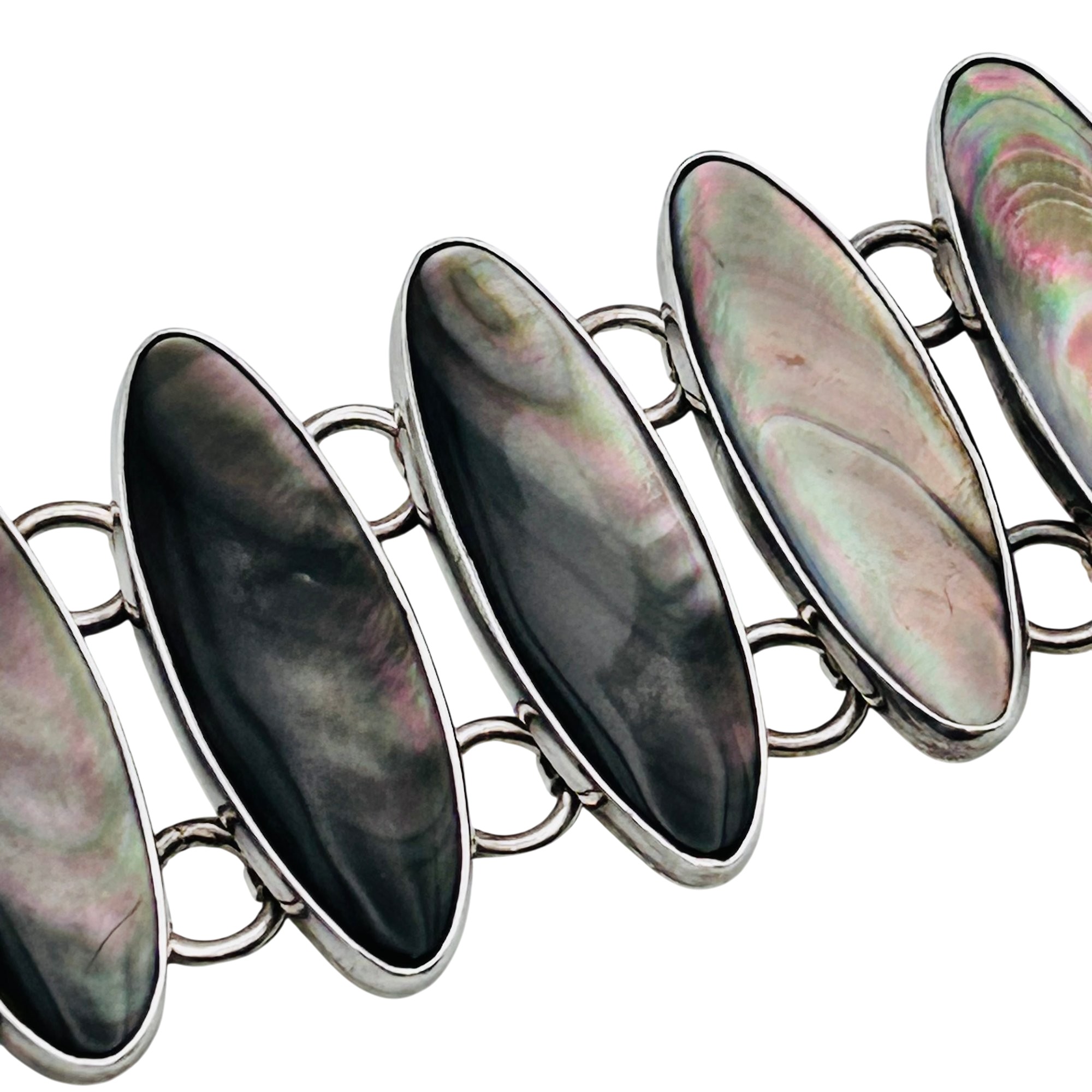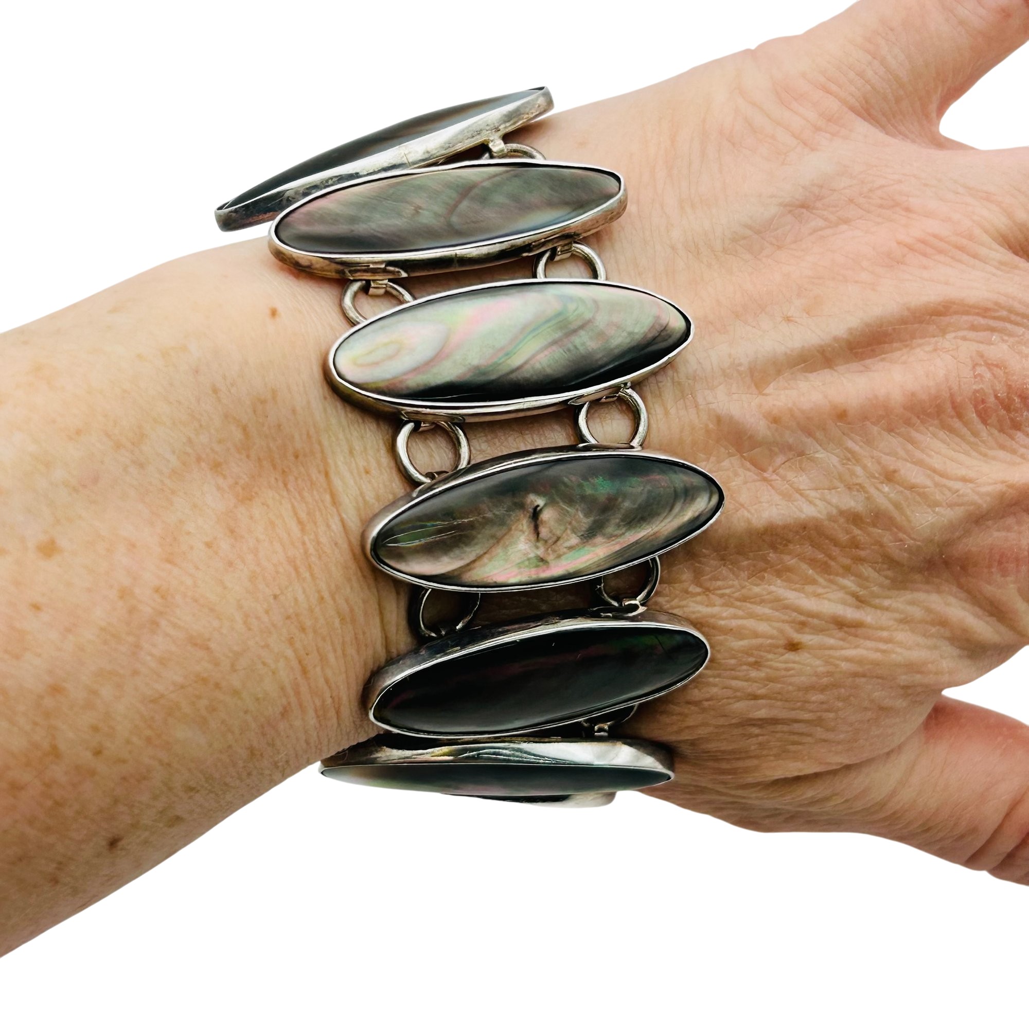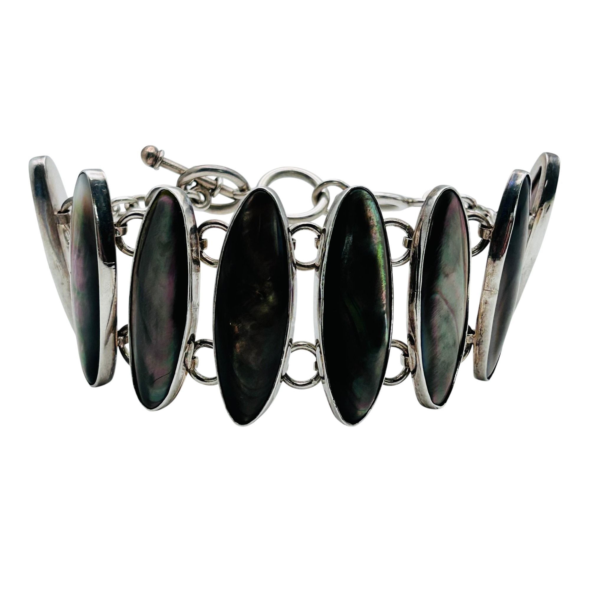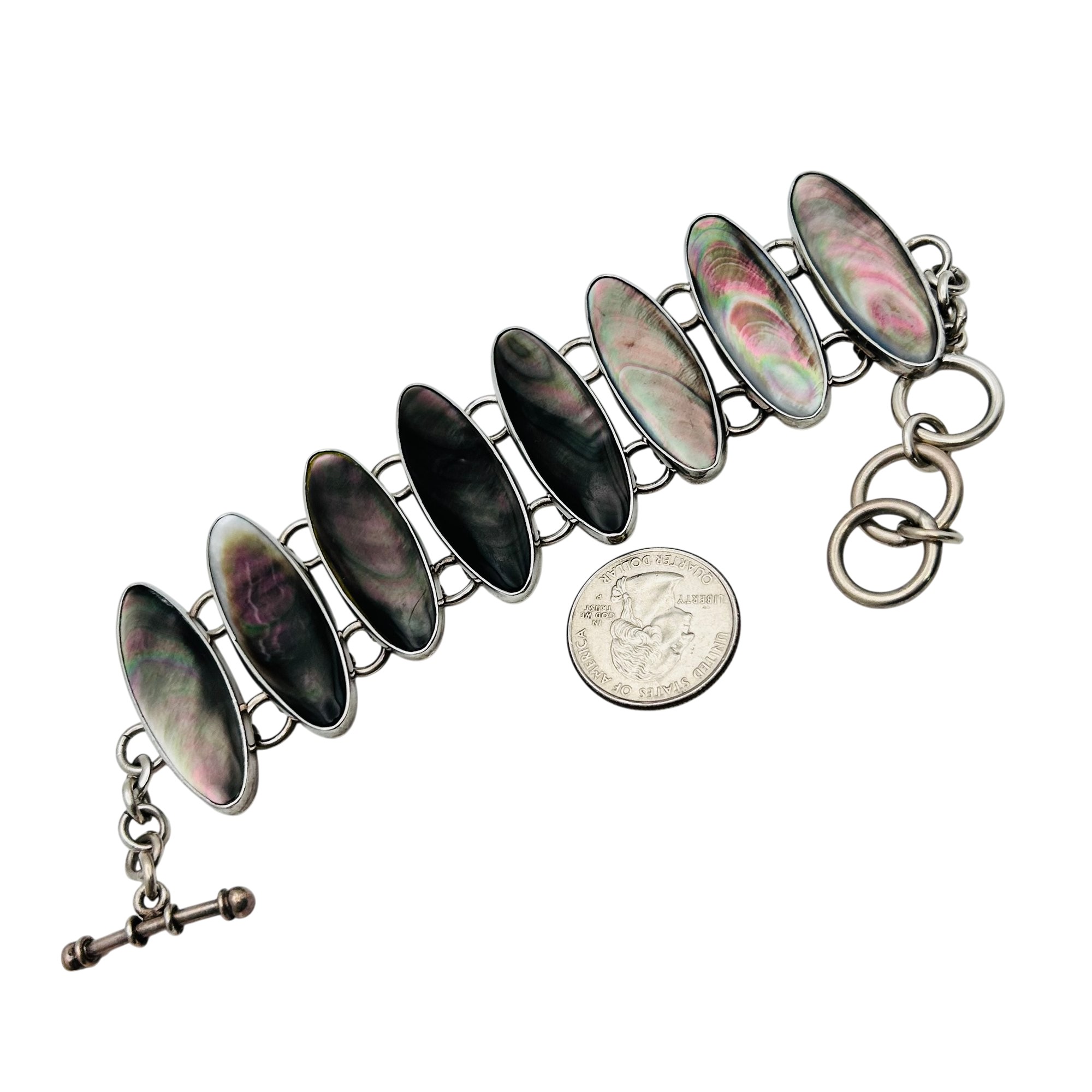 Charles Albert fine Sterling silver abalone oval linked bracelet adjustable toggle clasp 66.43 g