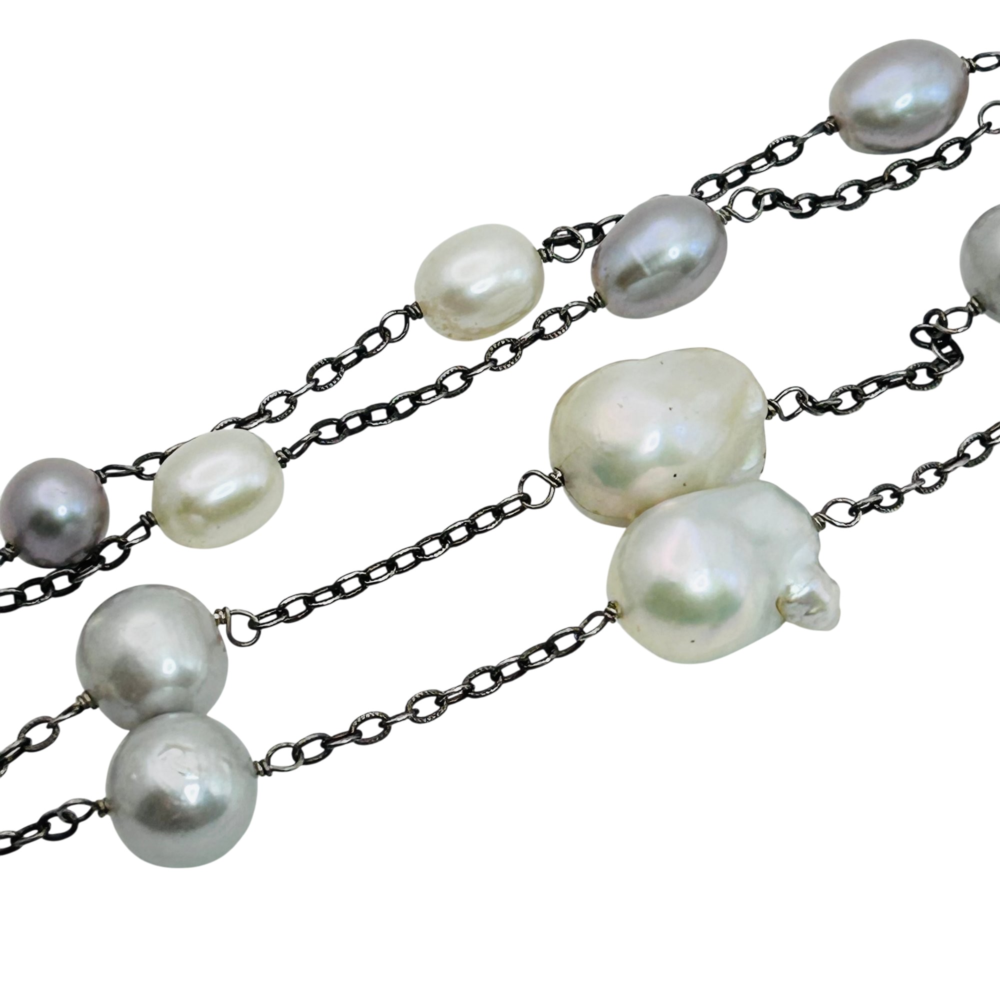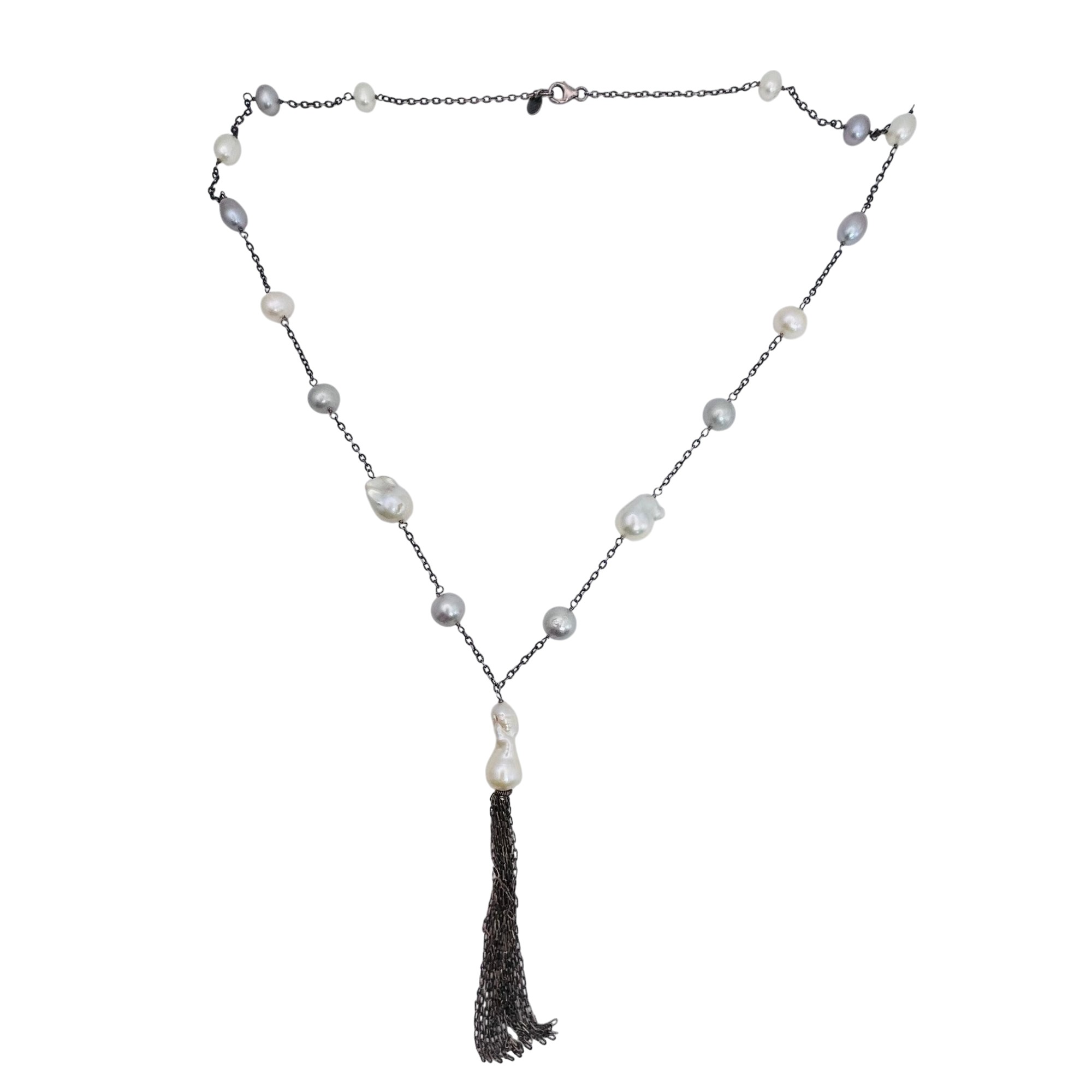 LUC pearl and sterling cable chain tassel necklace 31.4 g