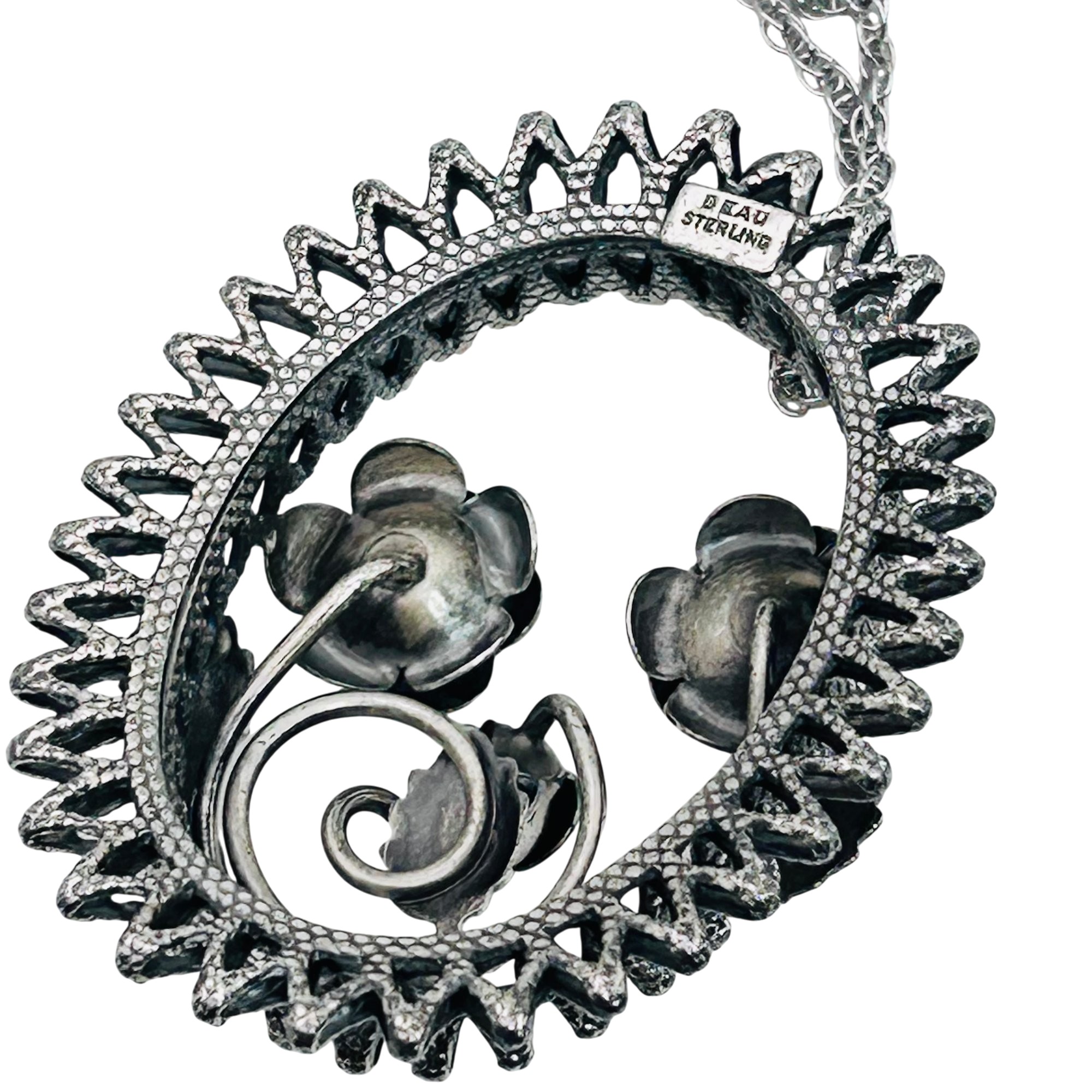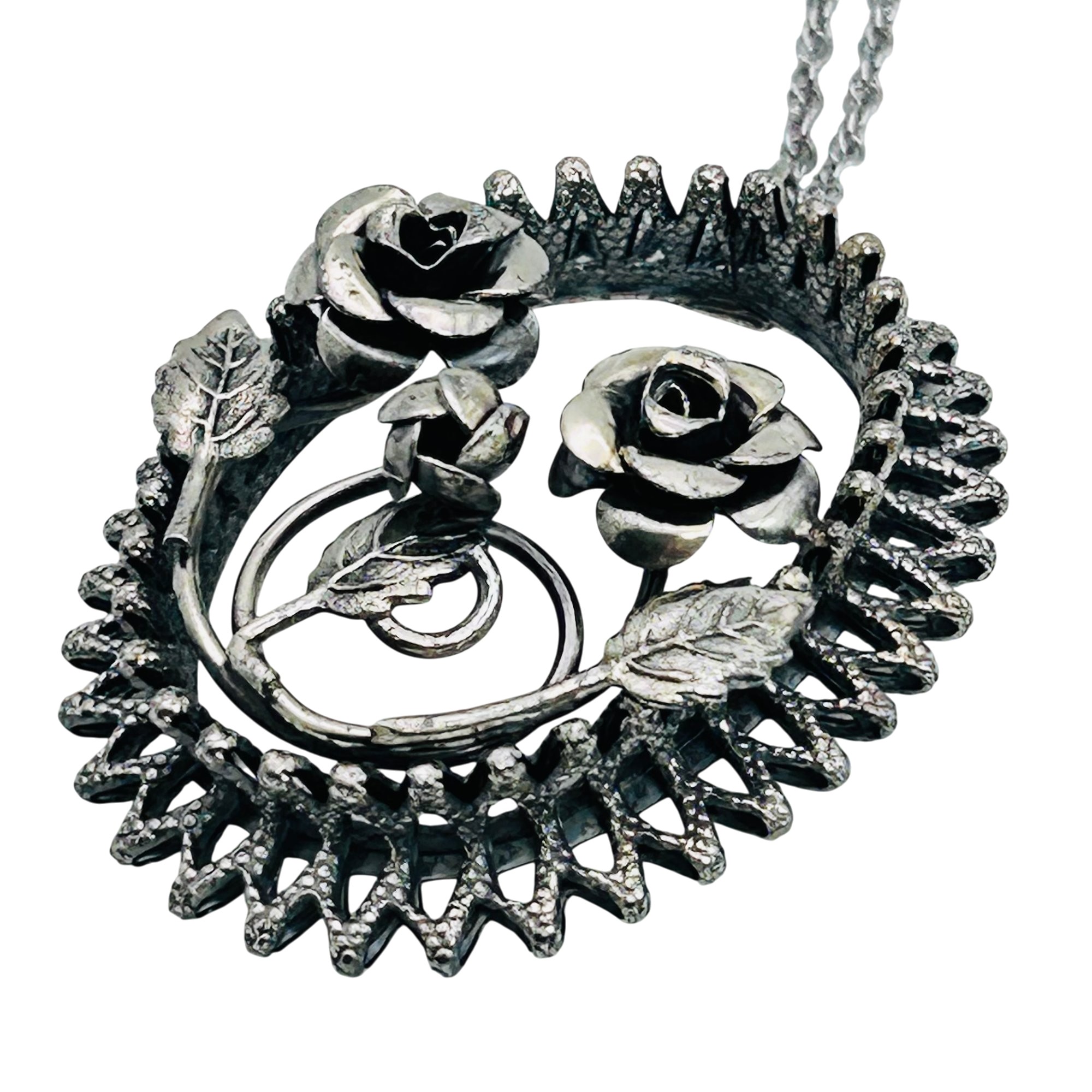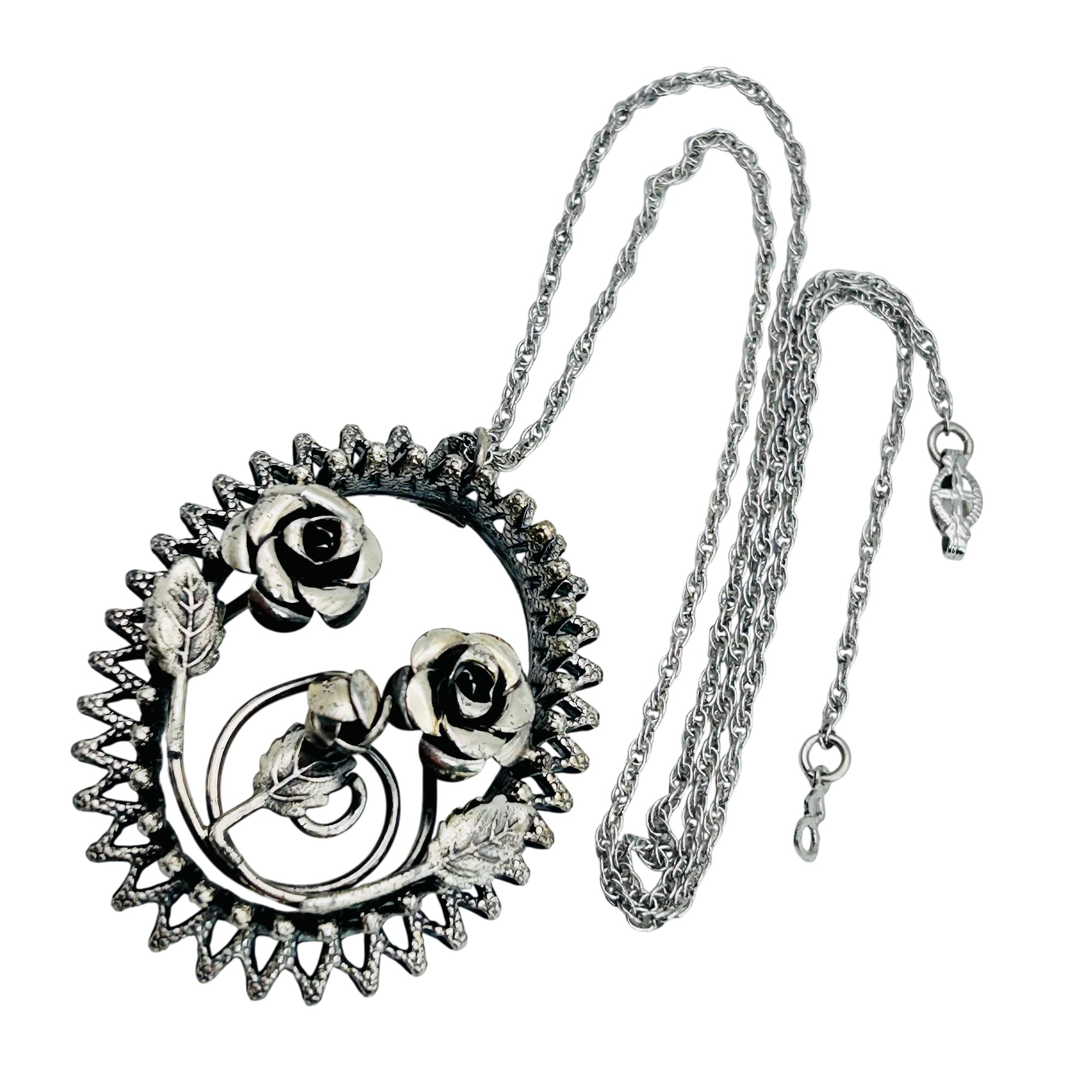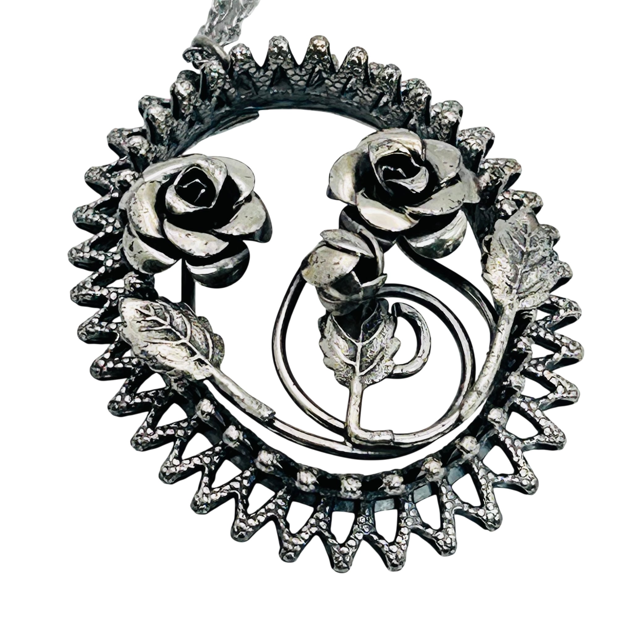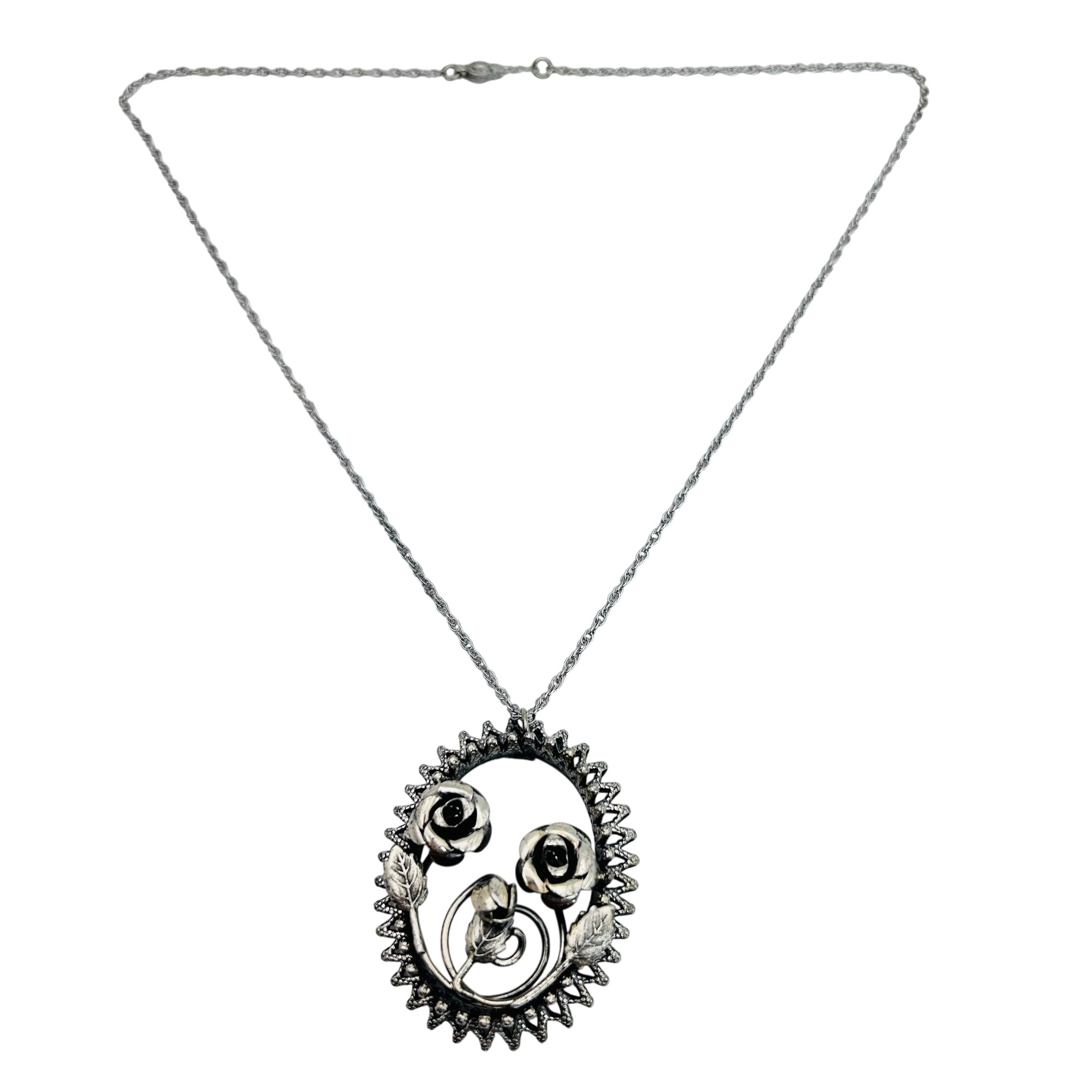 BEAU Sterling medallion rose pendant rope chain necklace 13.32 g