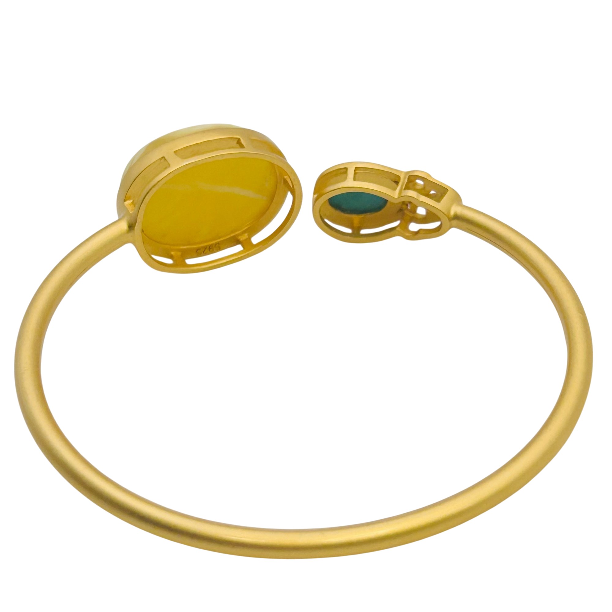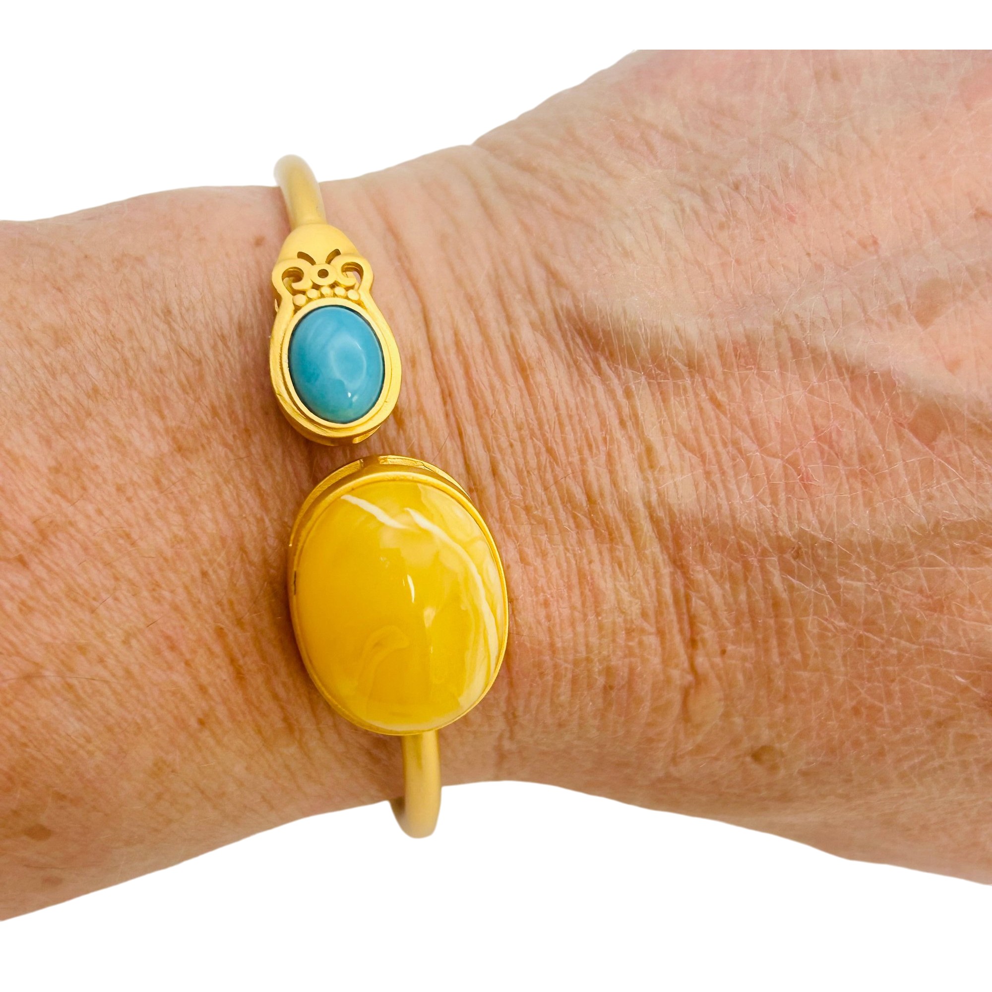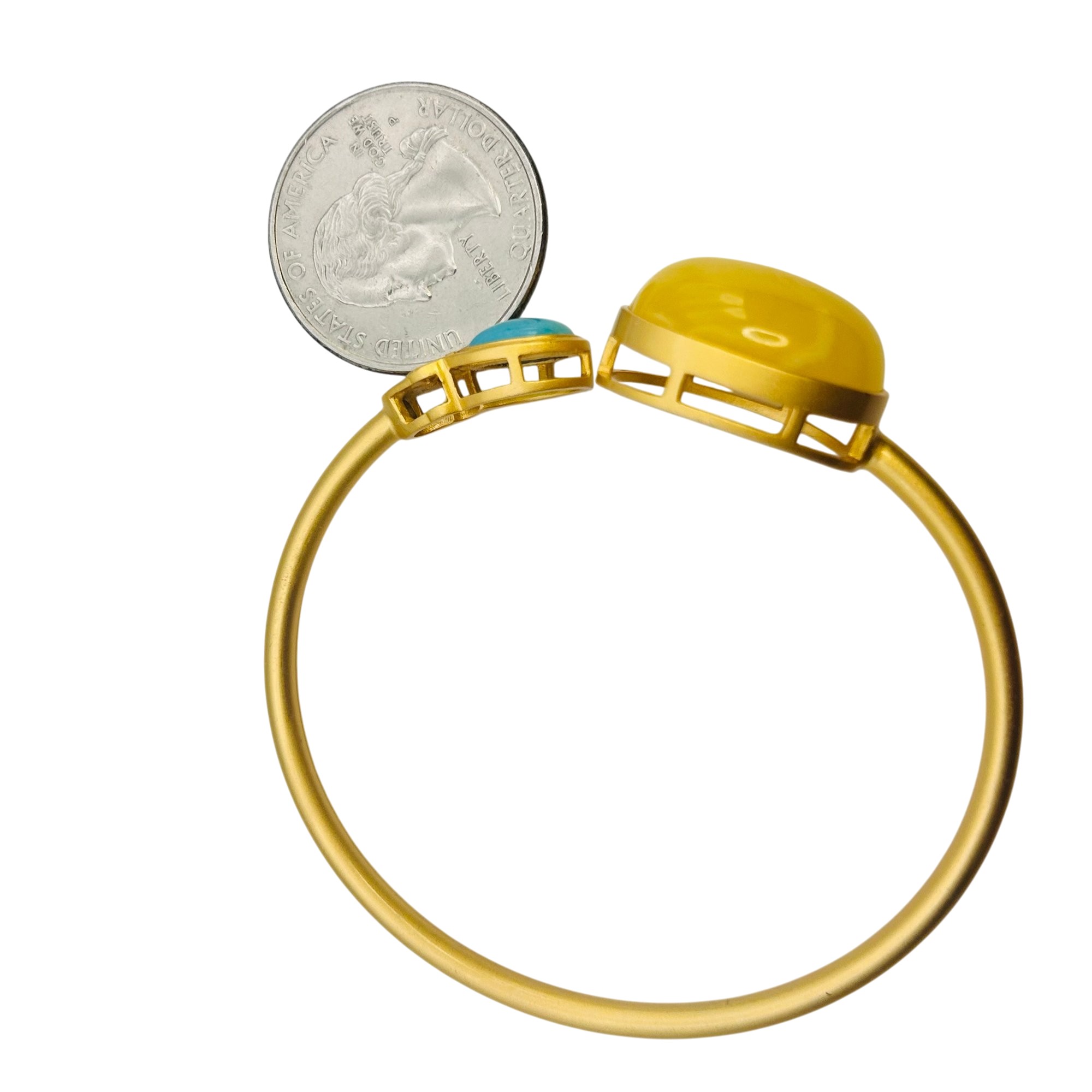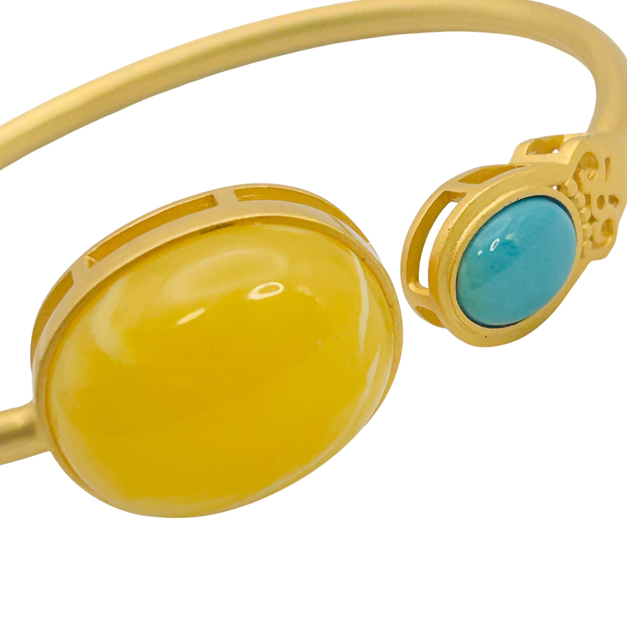 Yellow Amber and turquoise Sterling open band bracelet 9.05 g