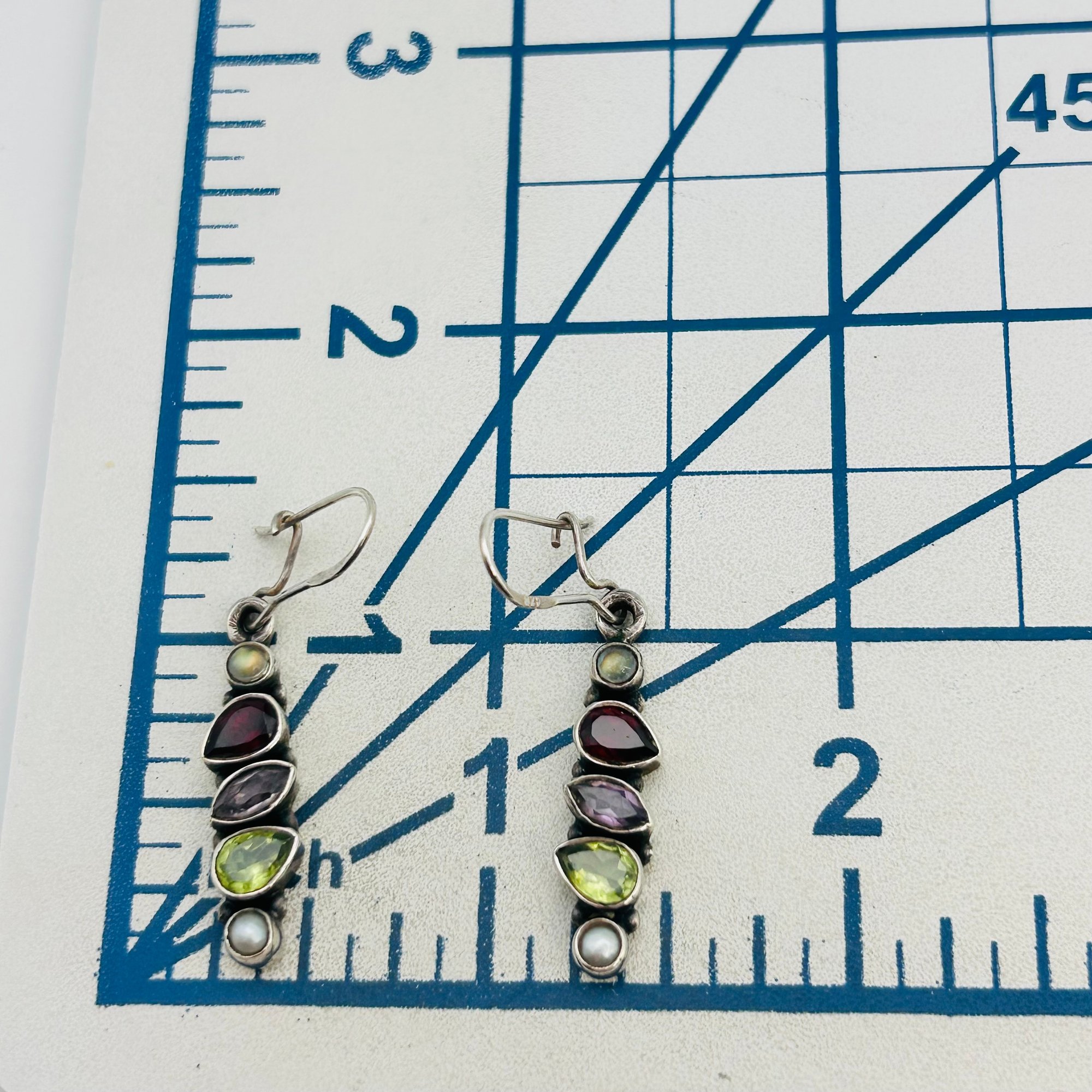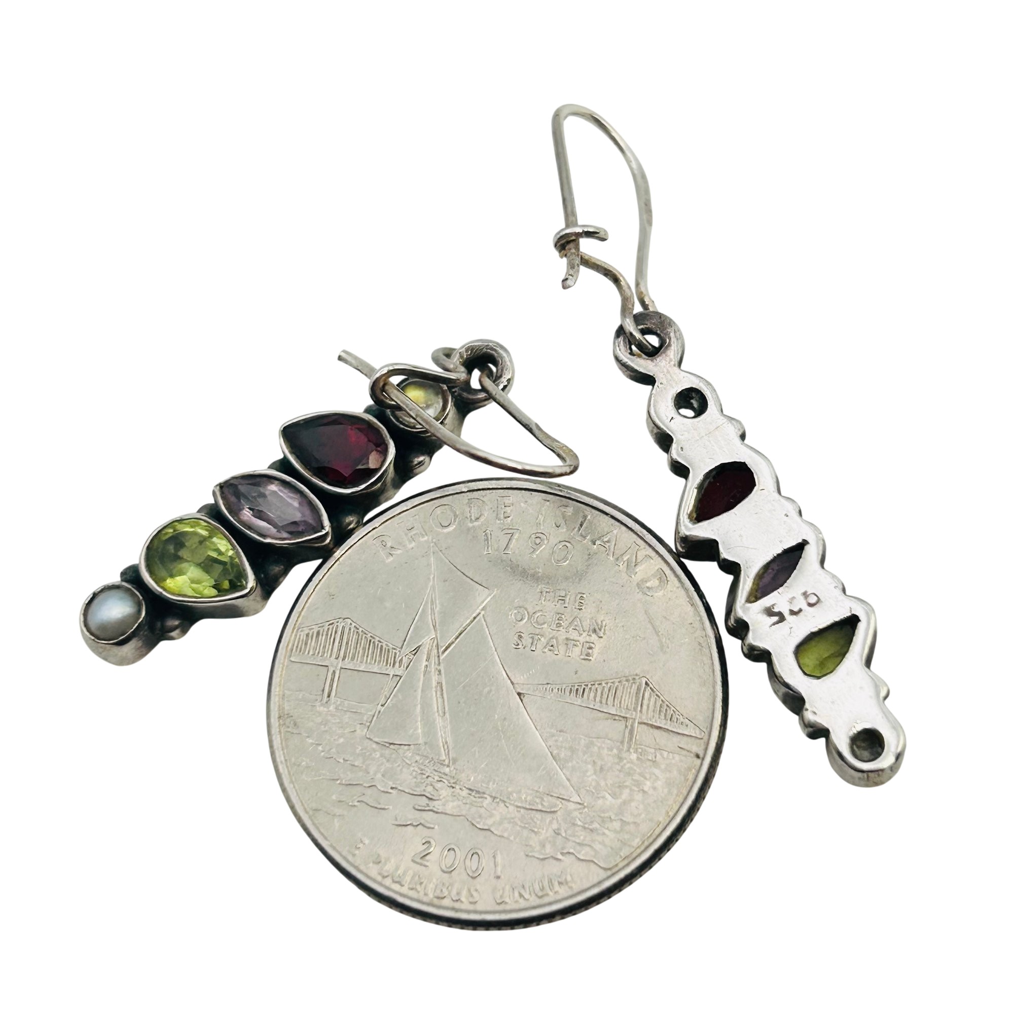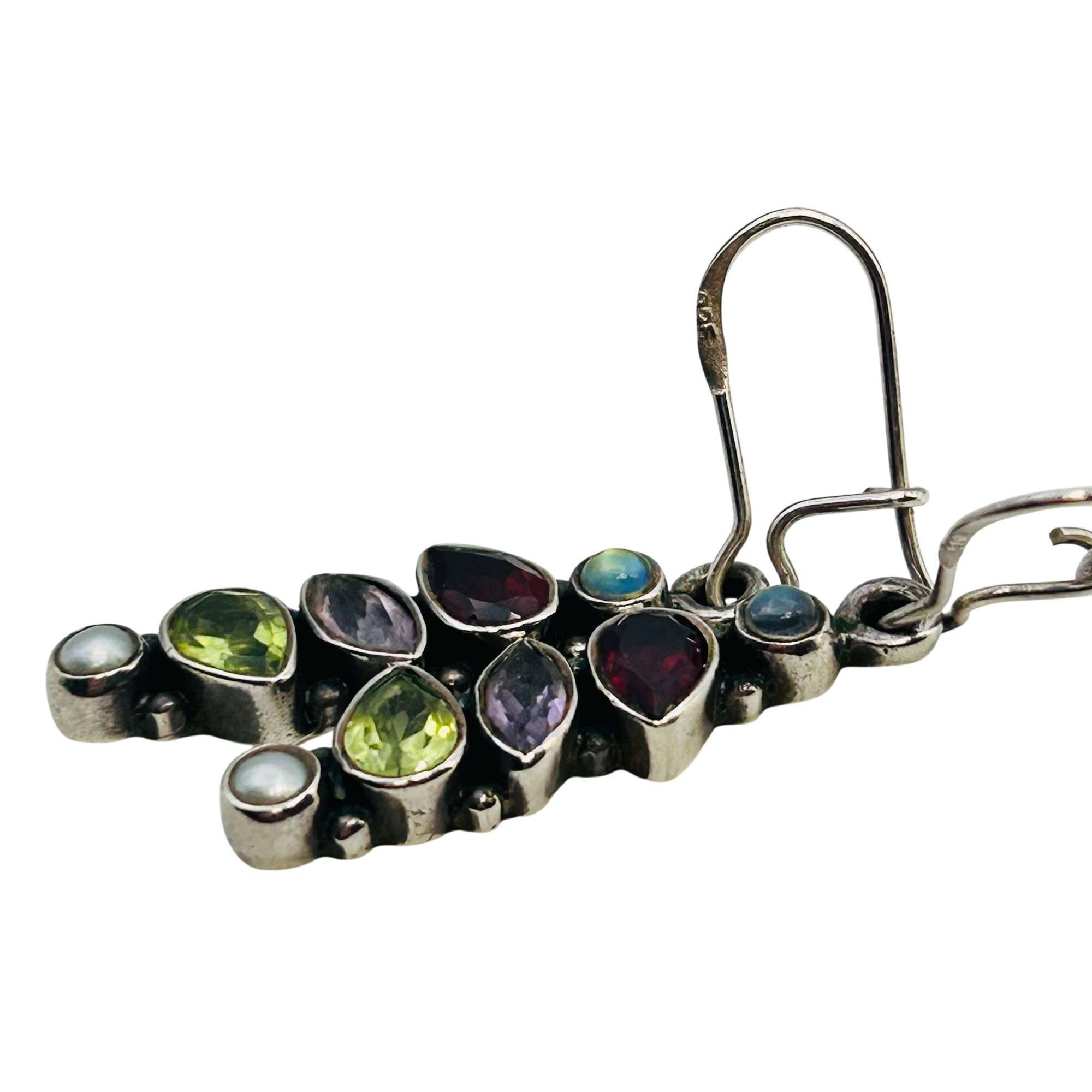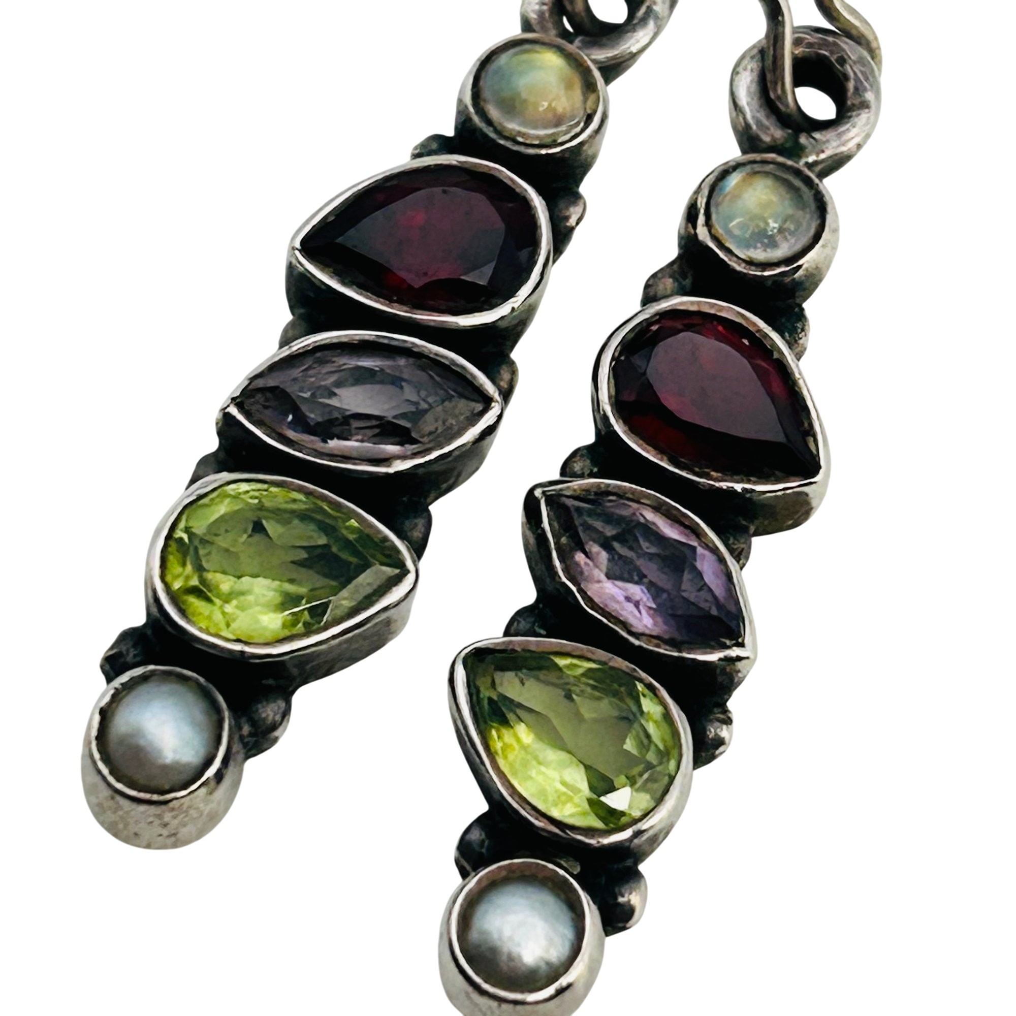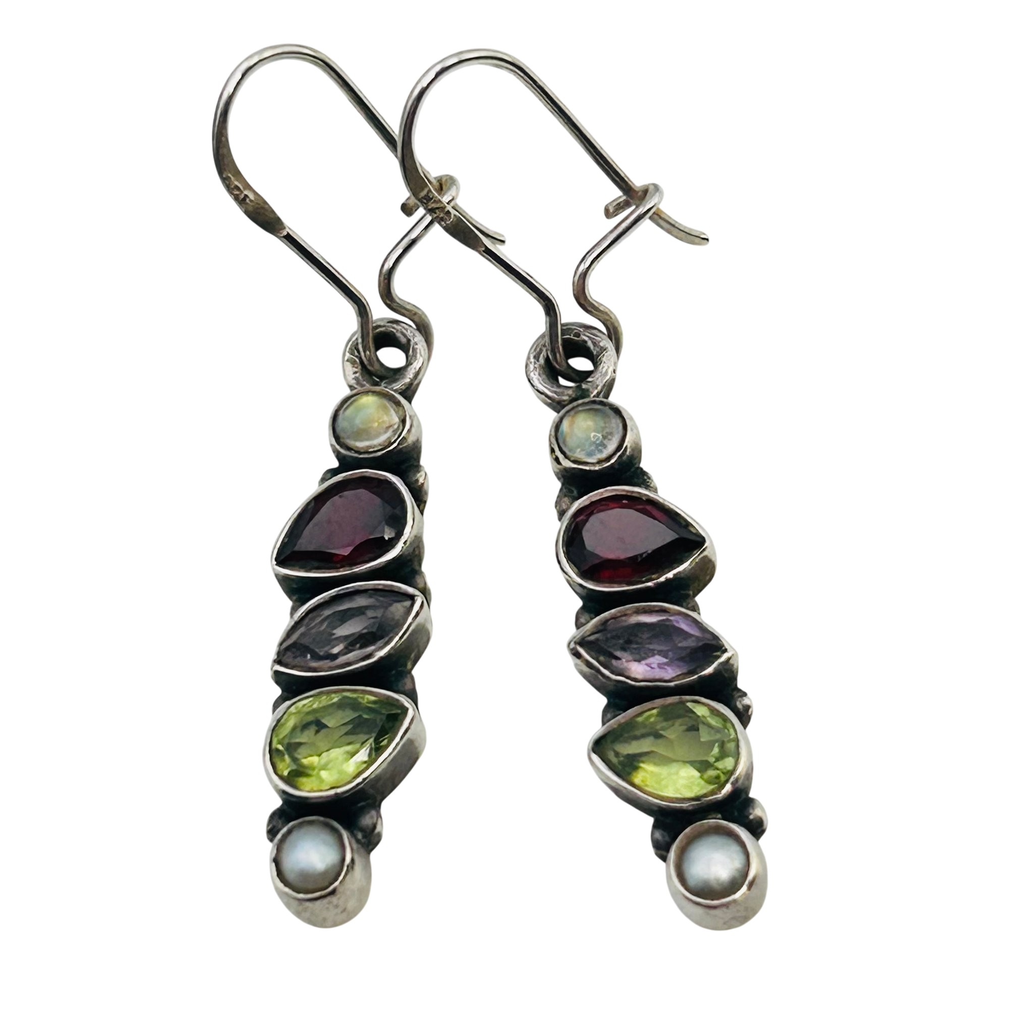 Garnet amethyst peridot pearl Sterling hook earrings 4.6 g
