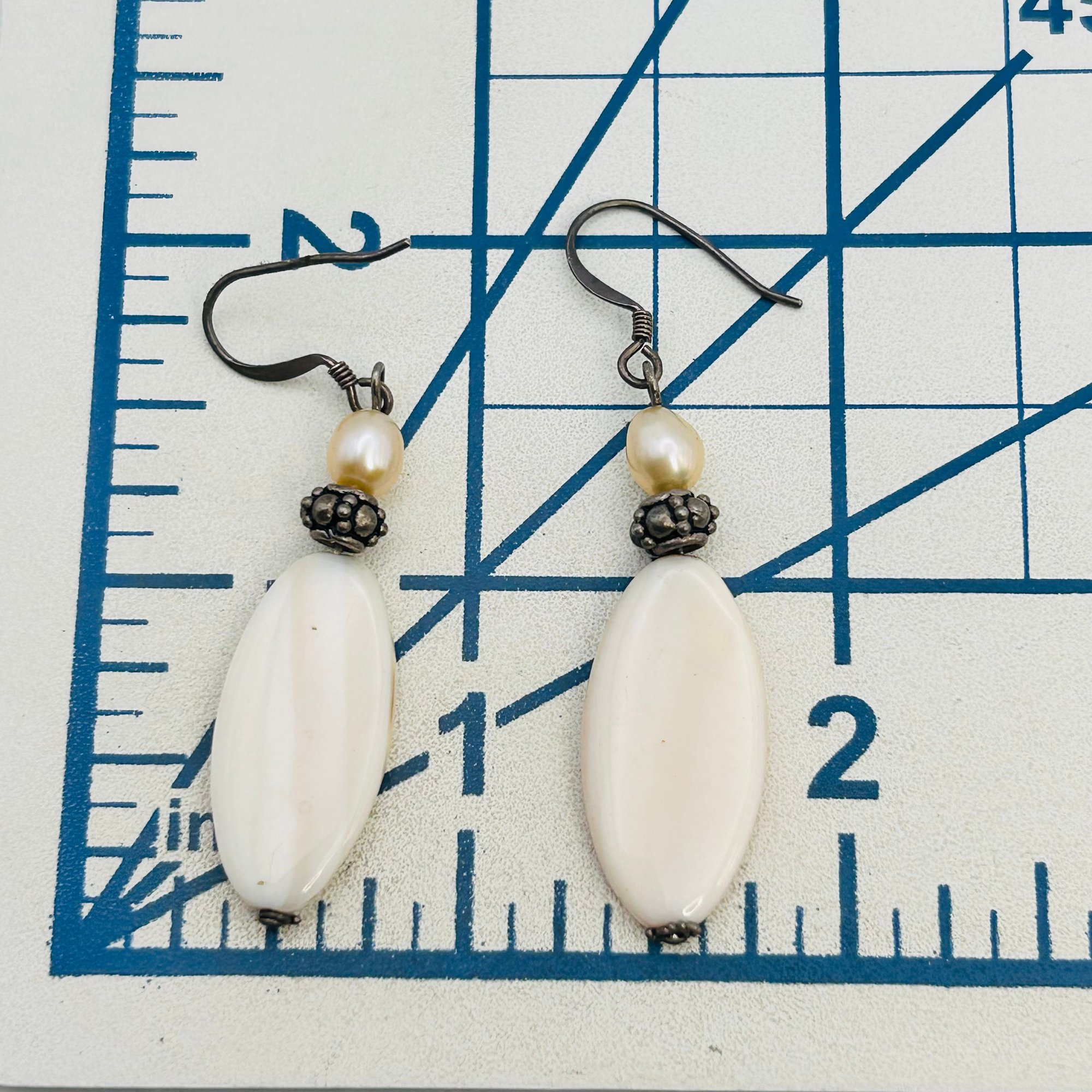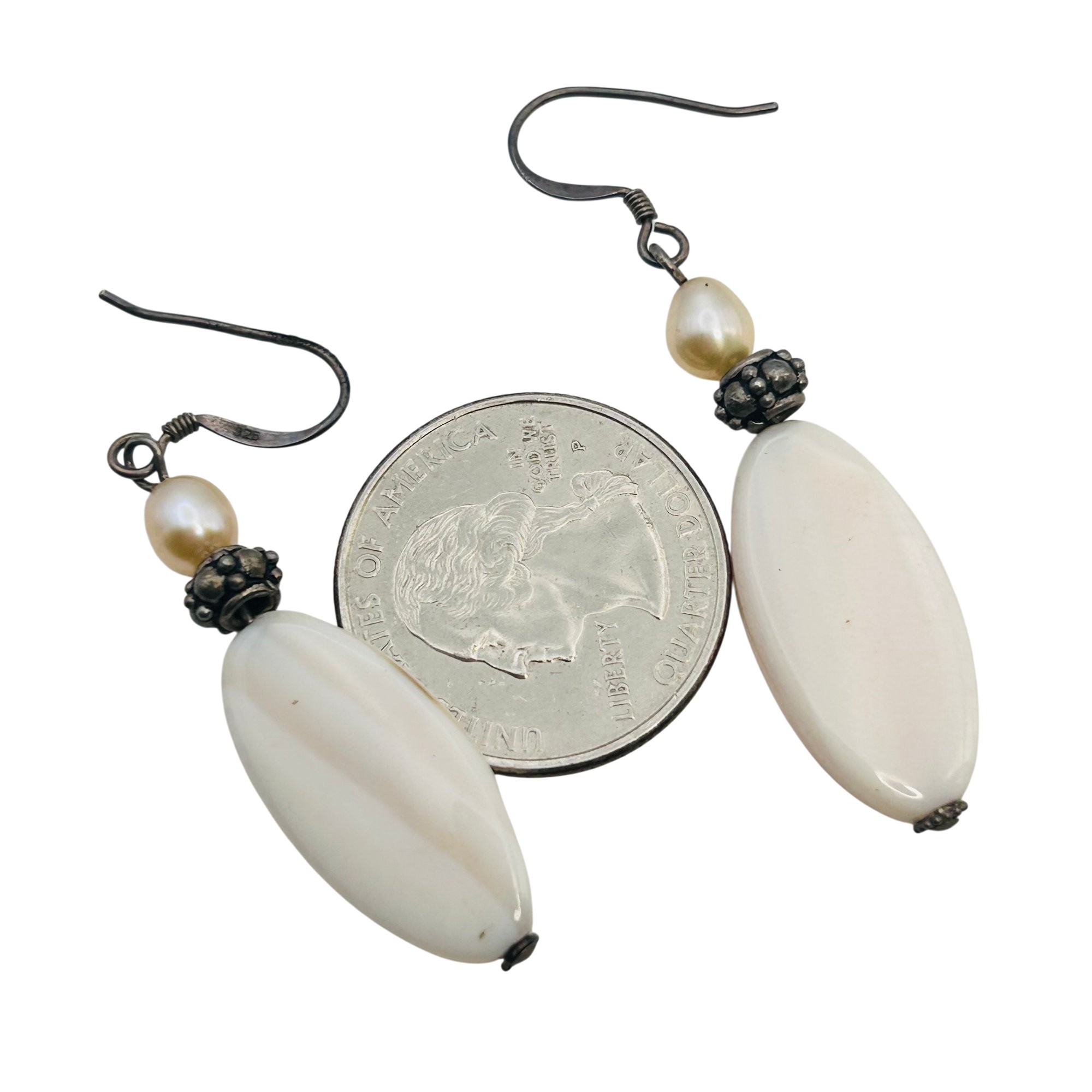 Pearl and mother-of-pearl Sterling dangle earrings 6.08 g