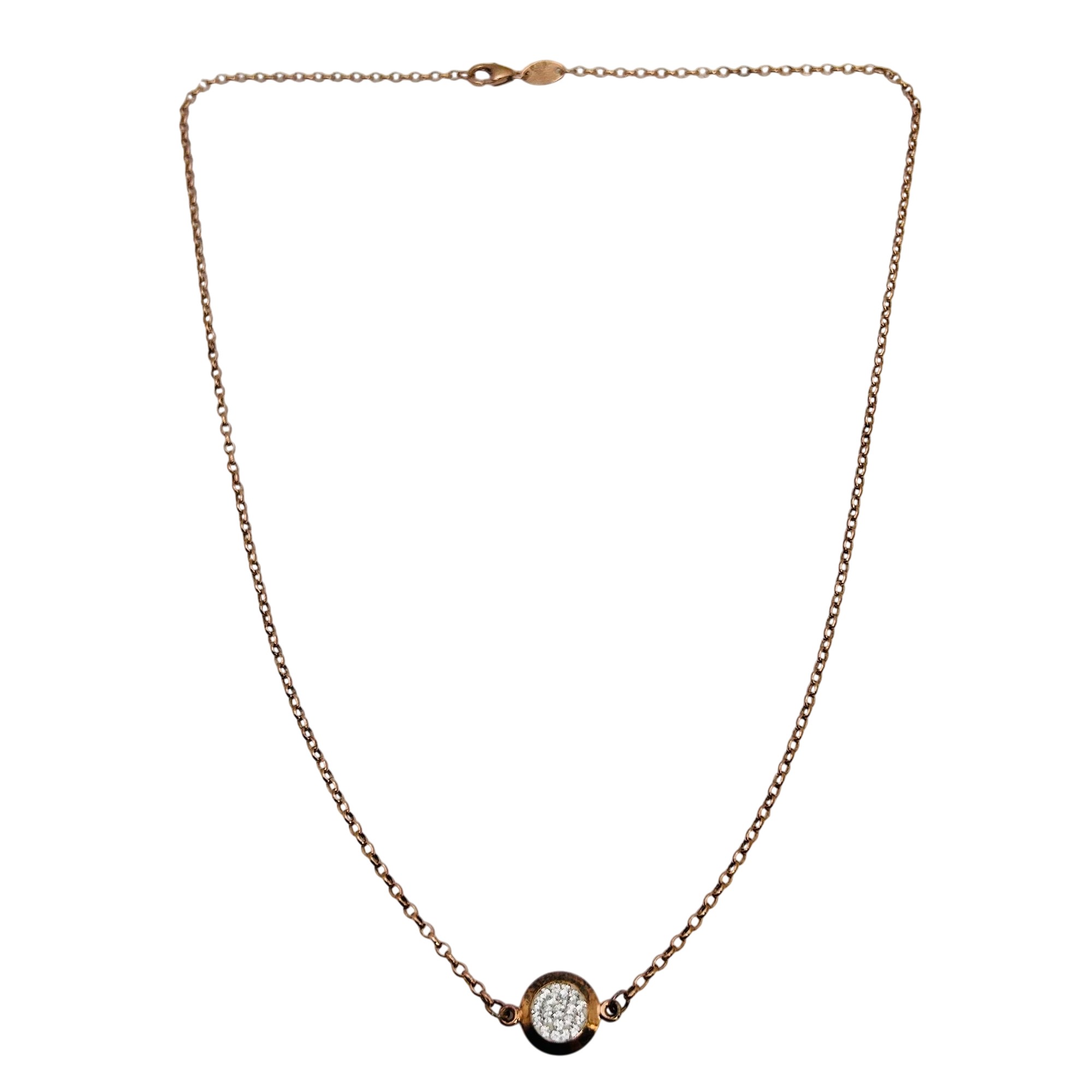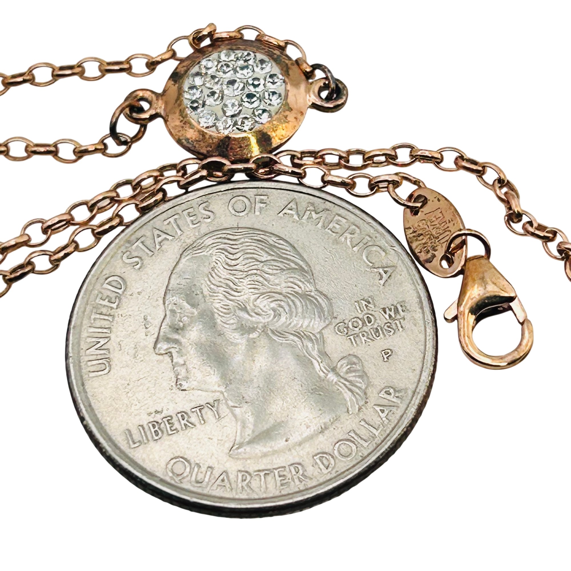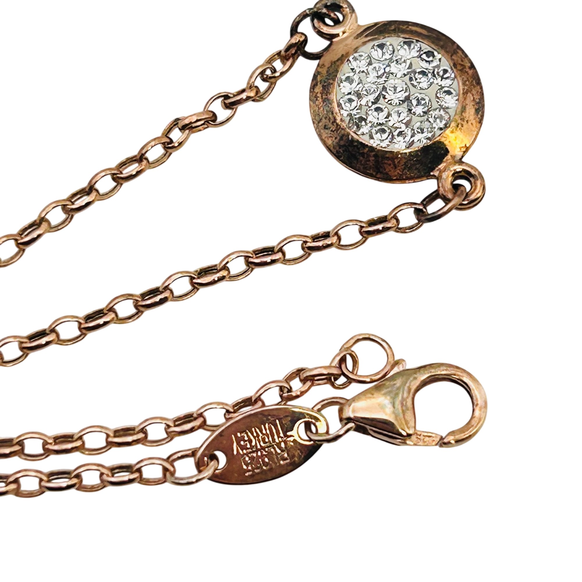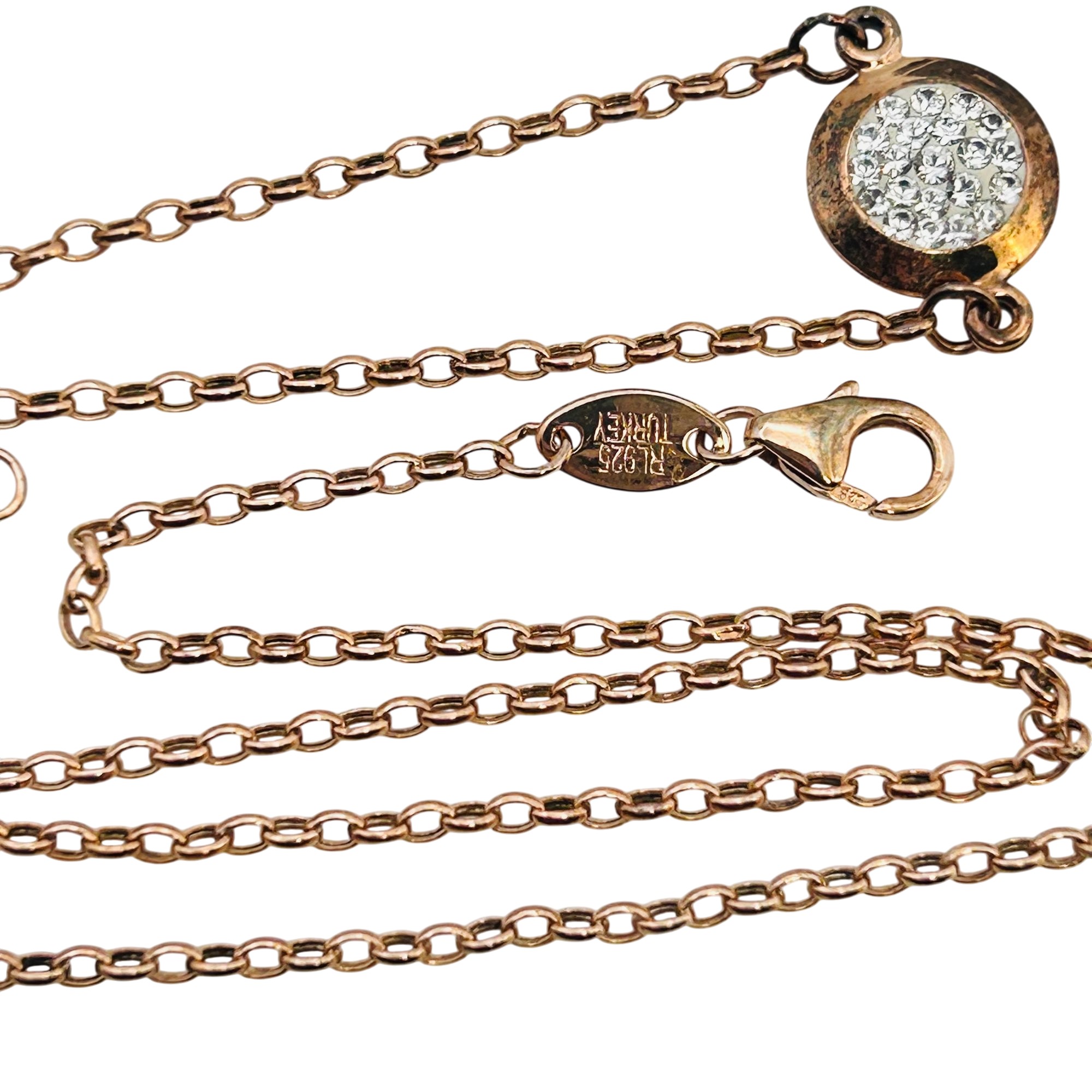 Turkey sterling 18 inch cable chain clear stone round pendant necklace 1.84 g