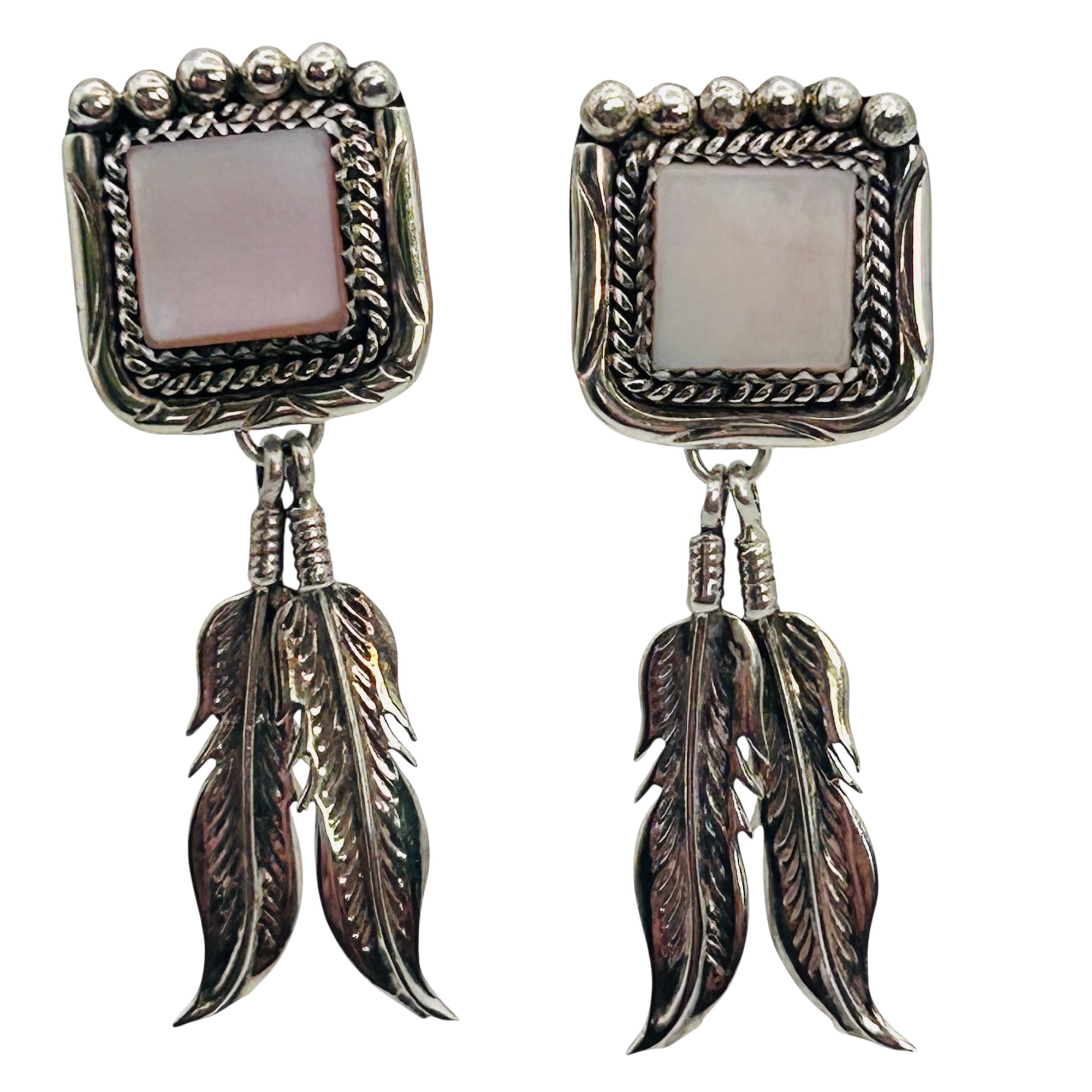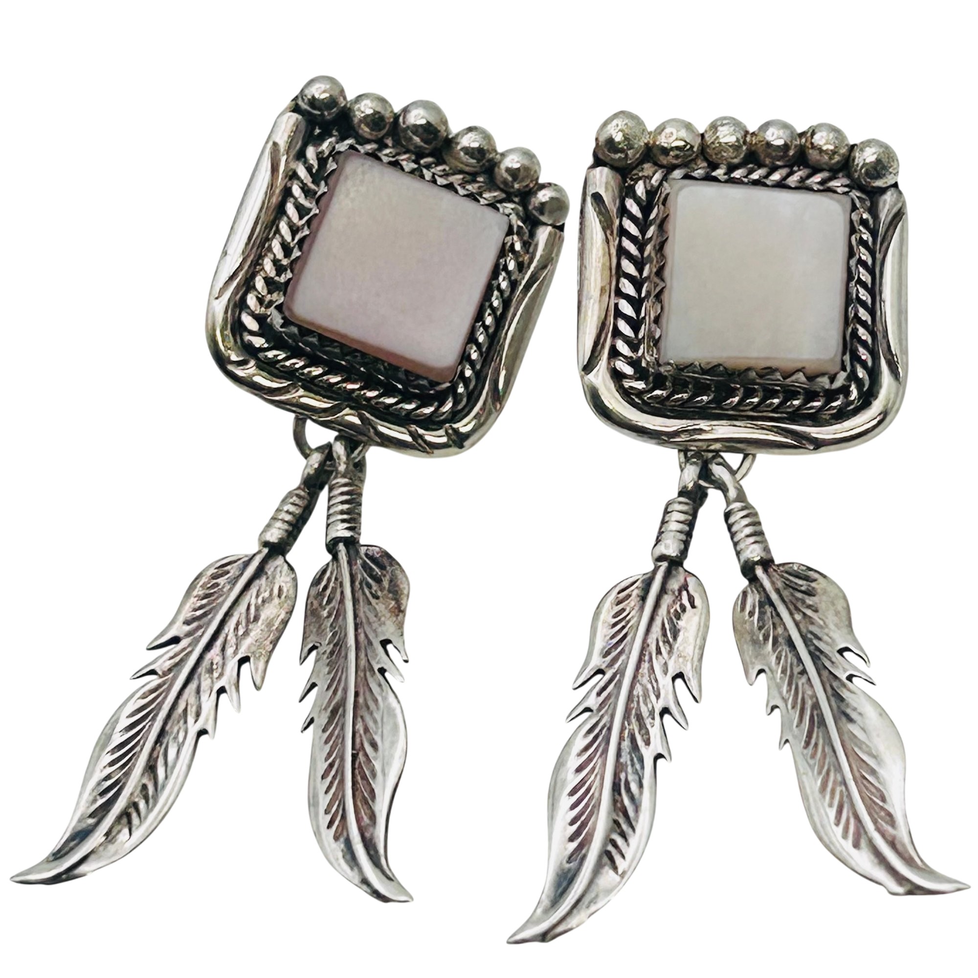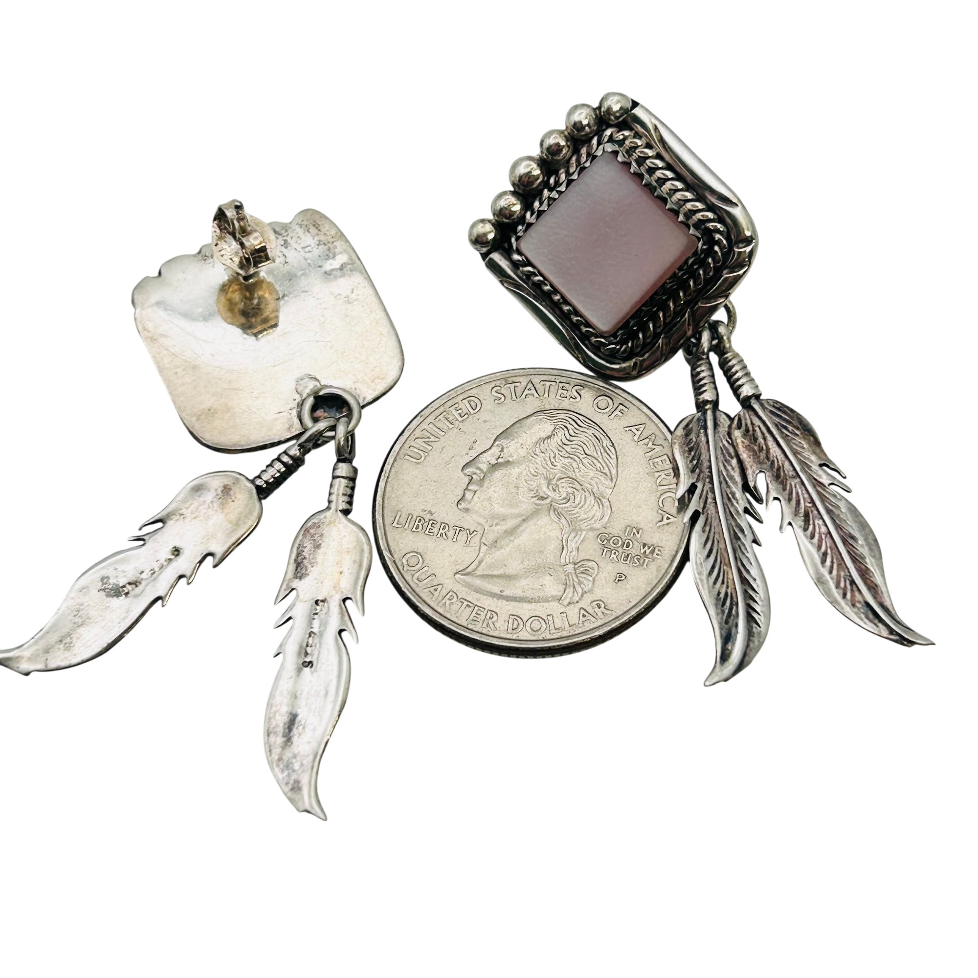 Navajo Sterling mother-of-pearl dangle earrings 11.13 g