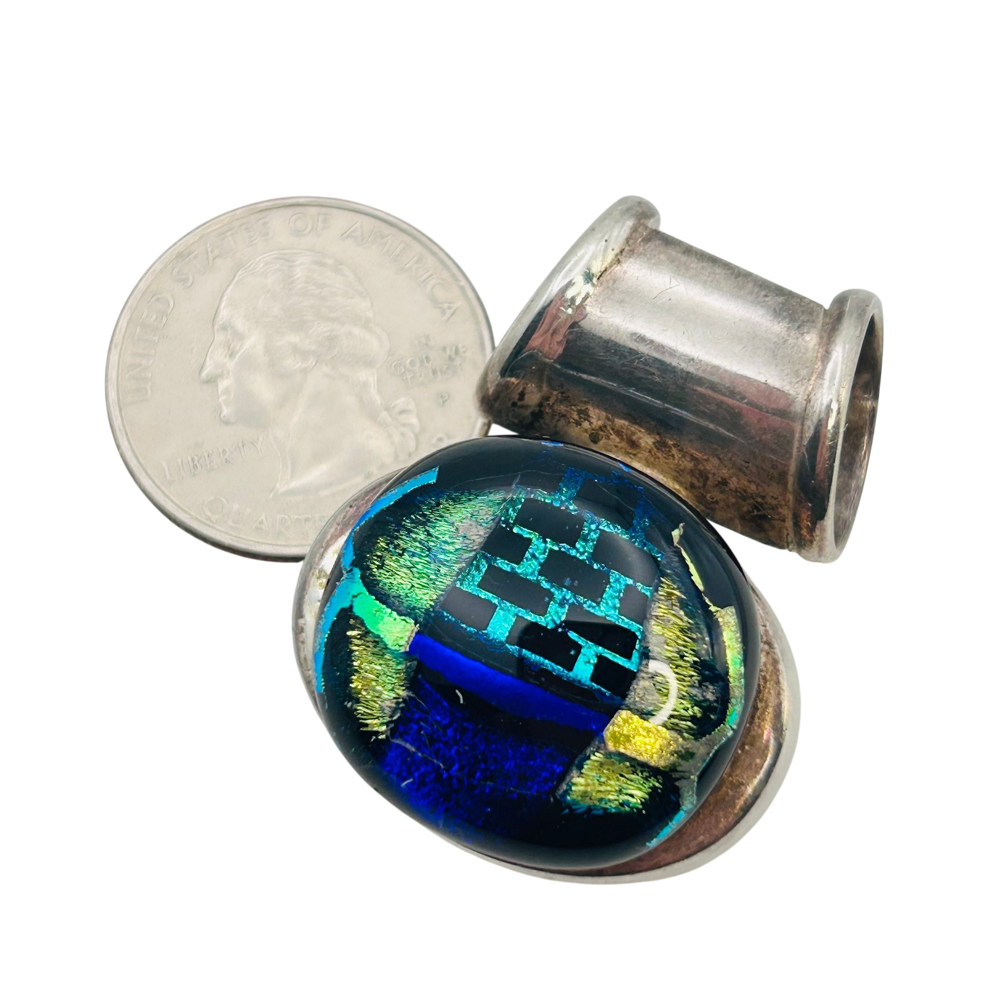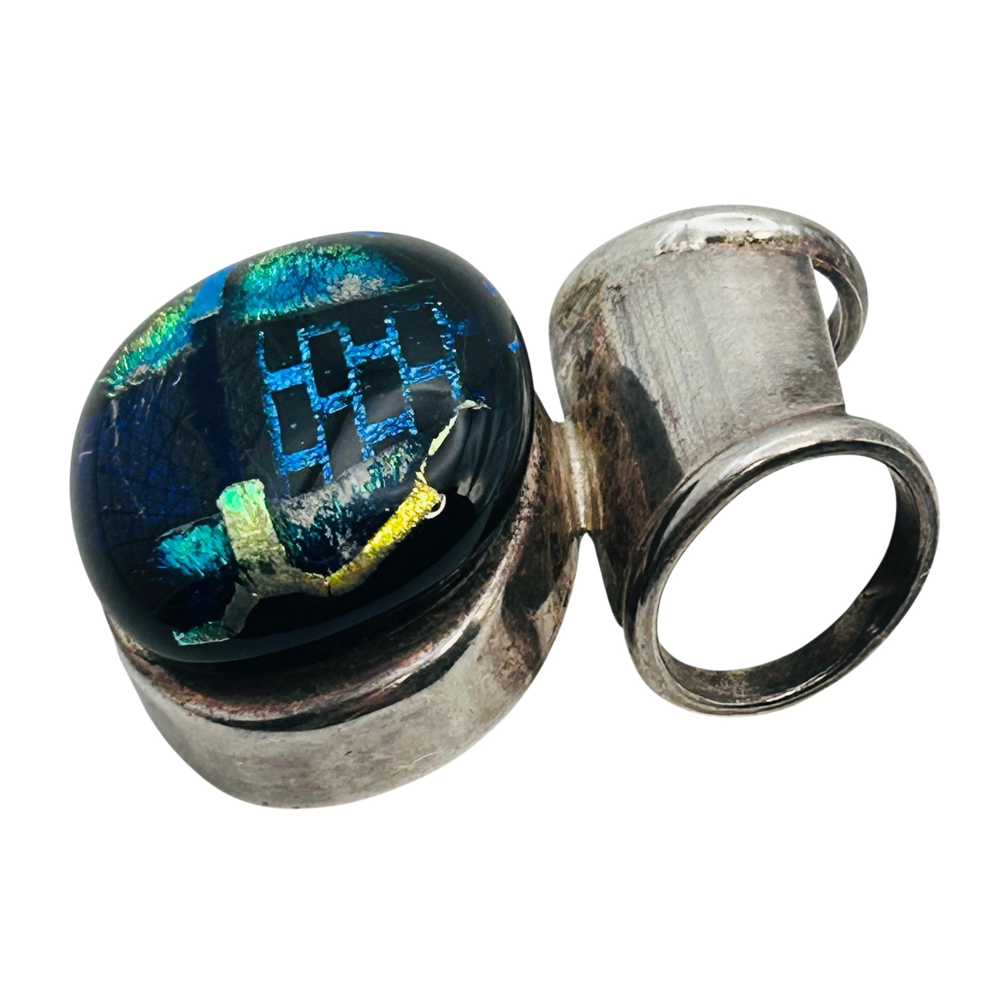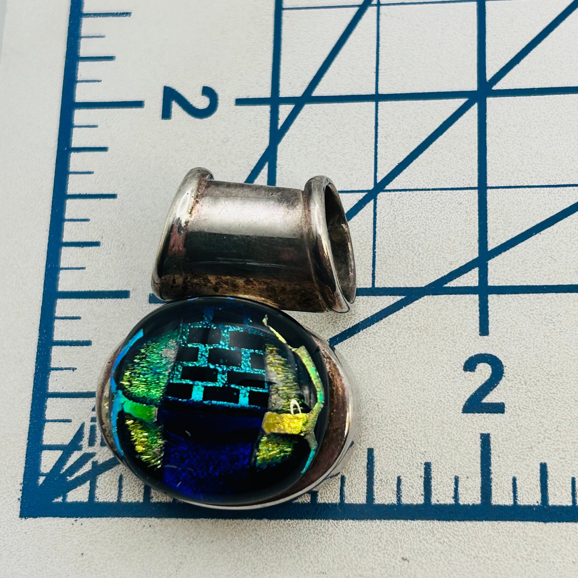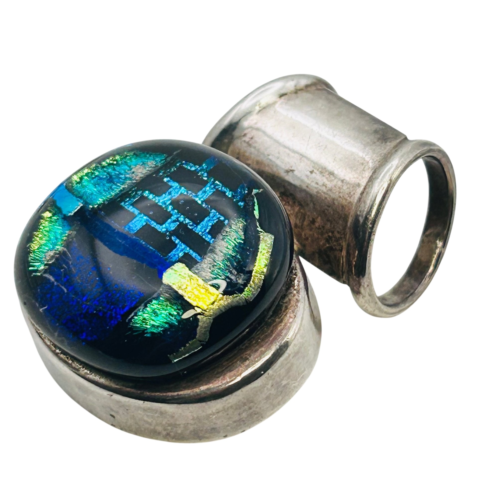 Sterling dichroic glass oval pendant 20g