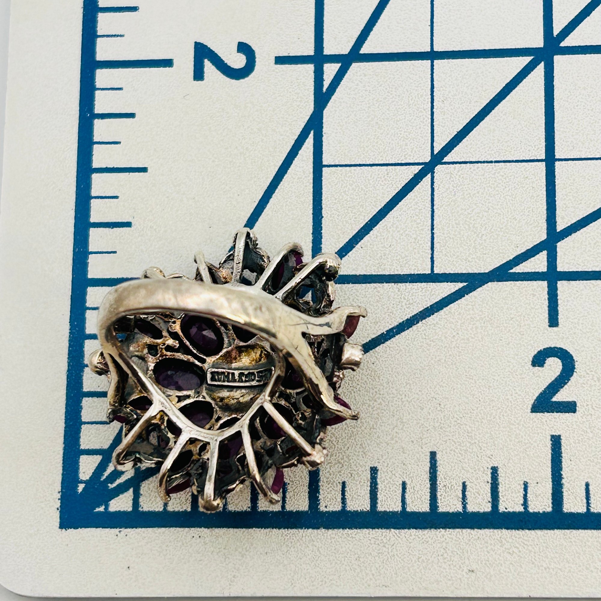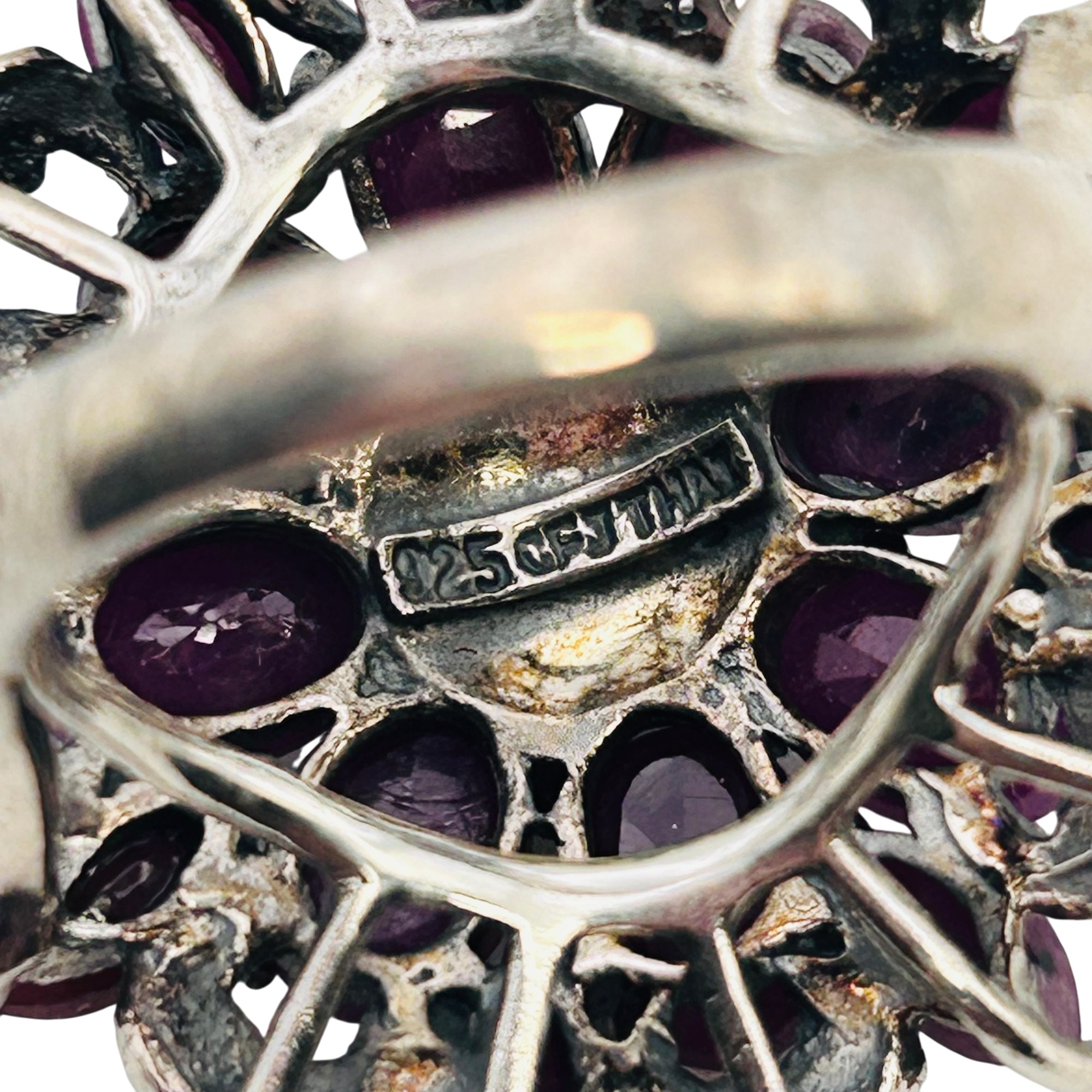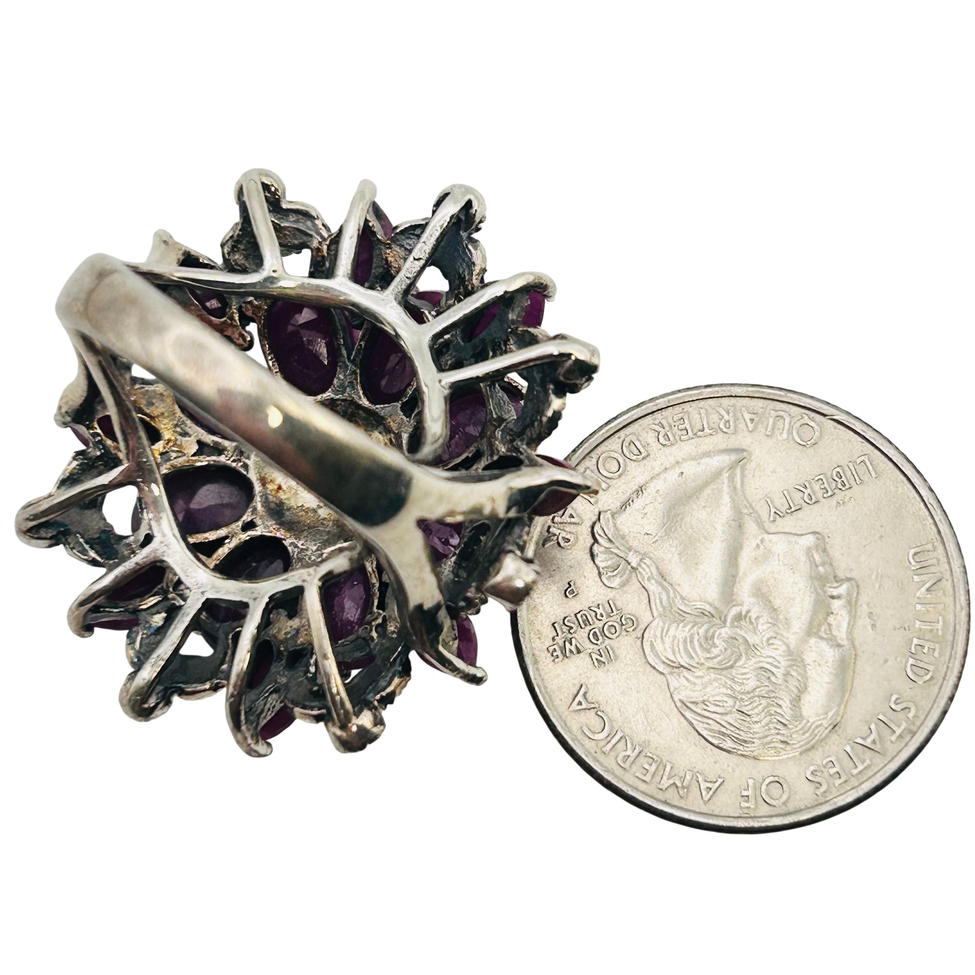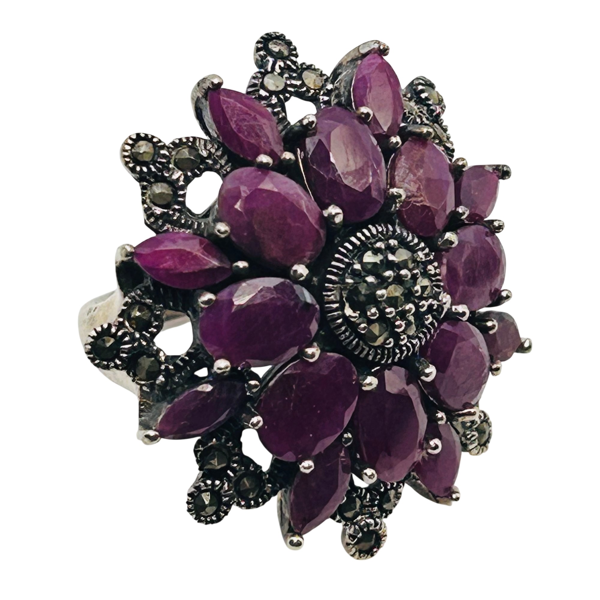 Ruby and marcasite sterling flower statement ring size 6 12.7 g
