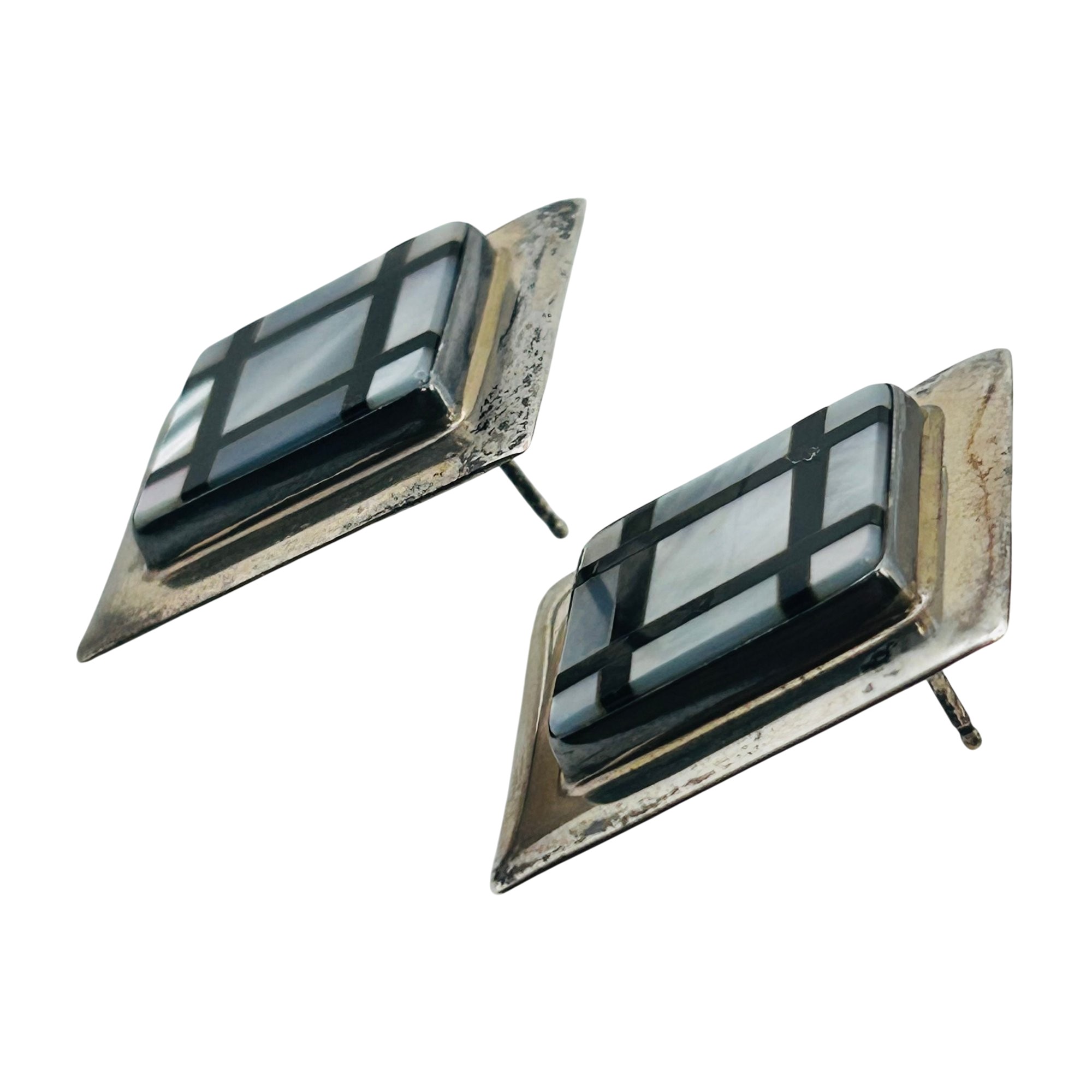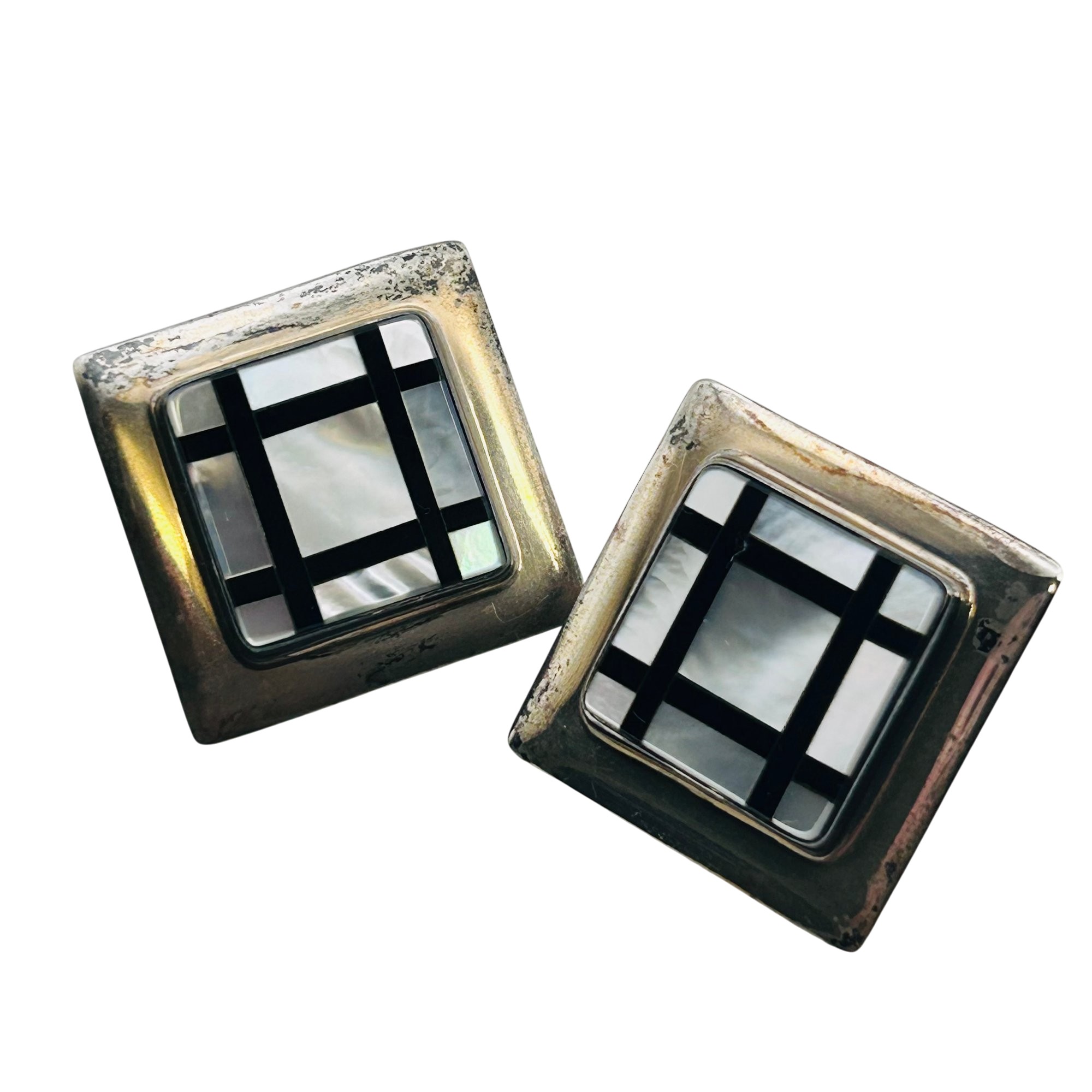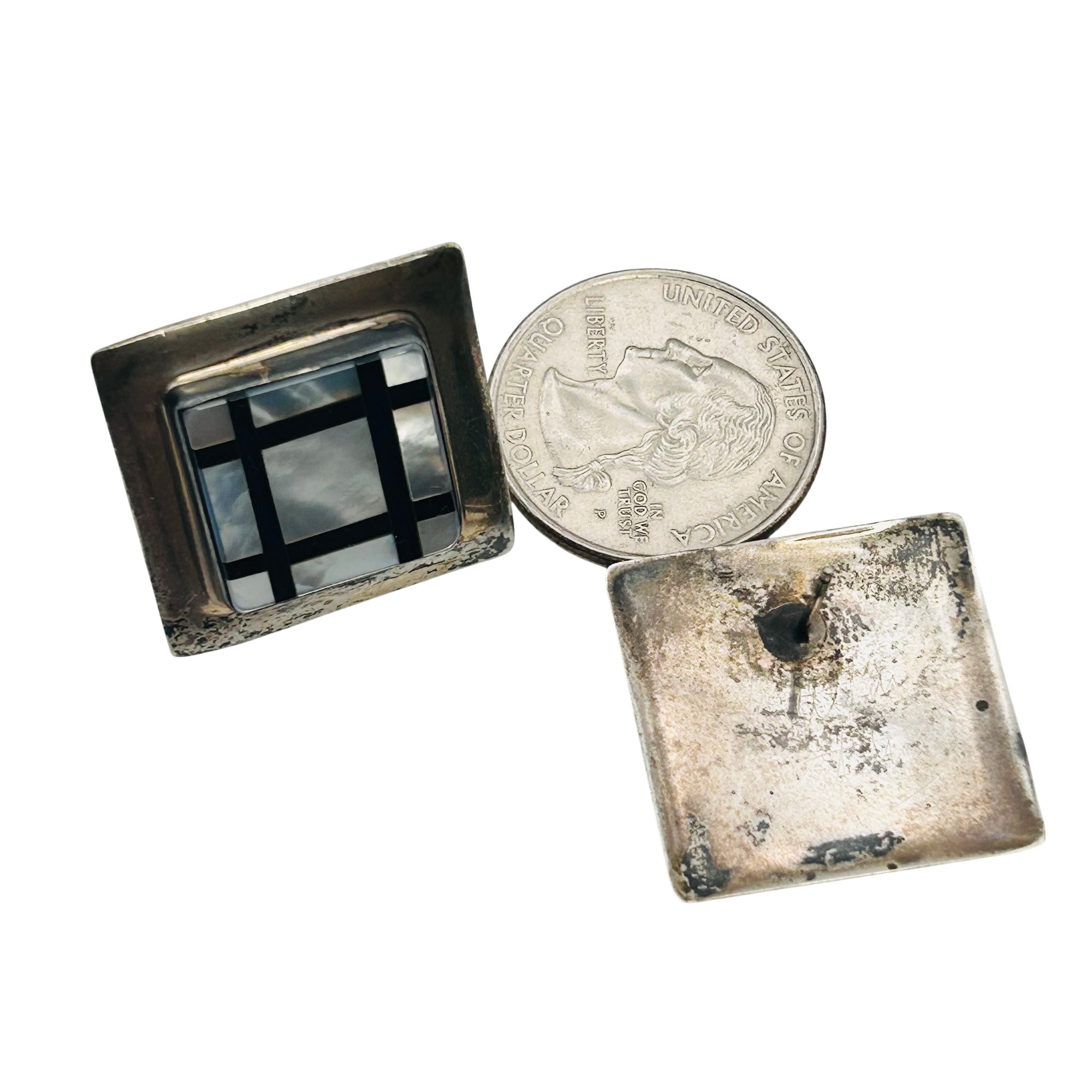 Mother of Pearl artist signed Sterling Square earrings 9.24 g