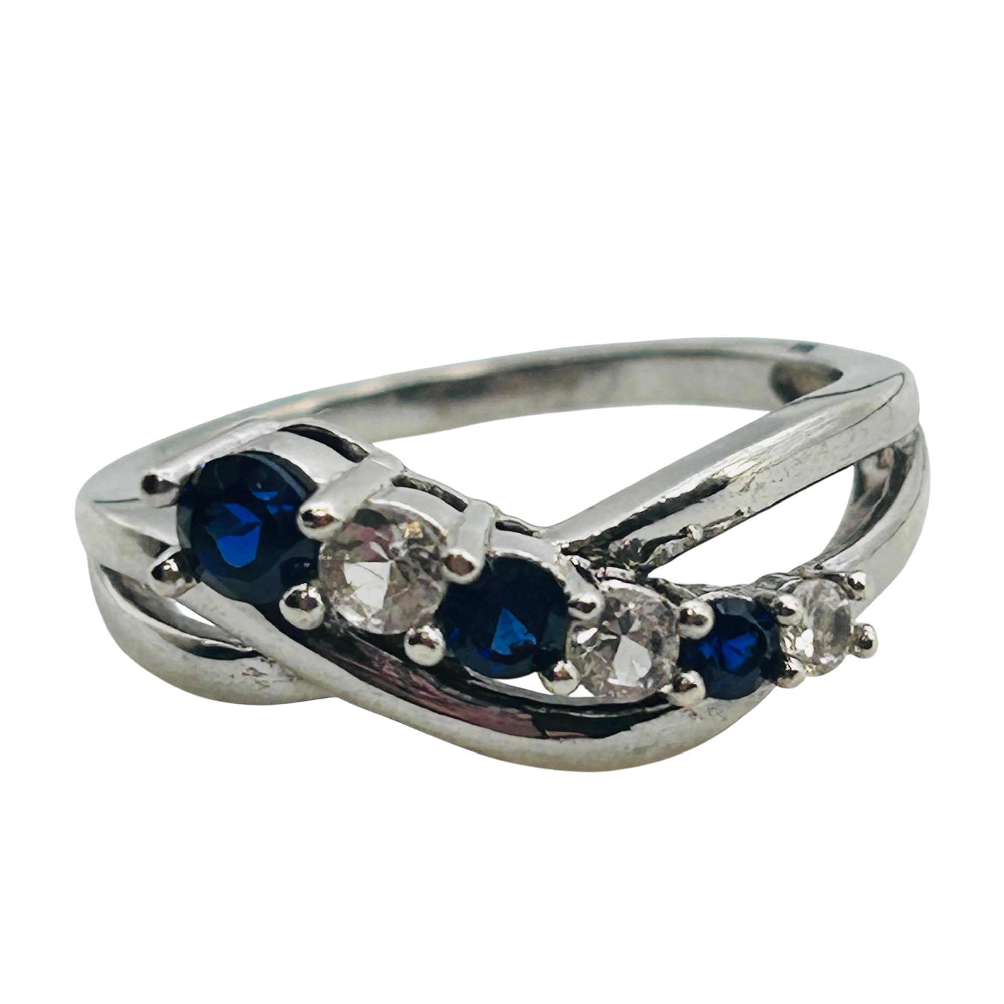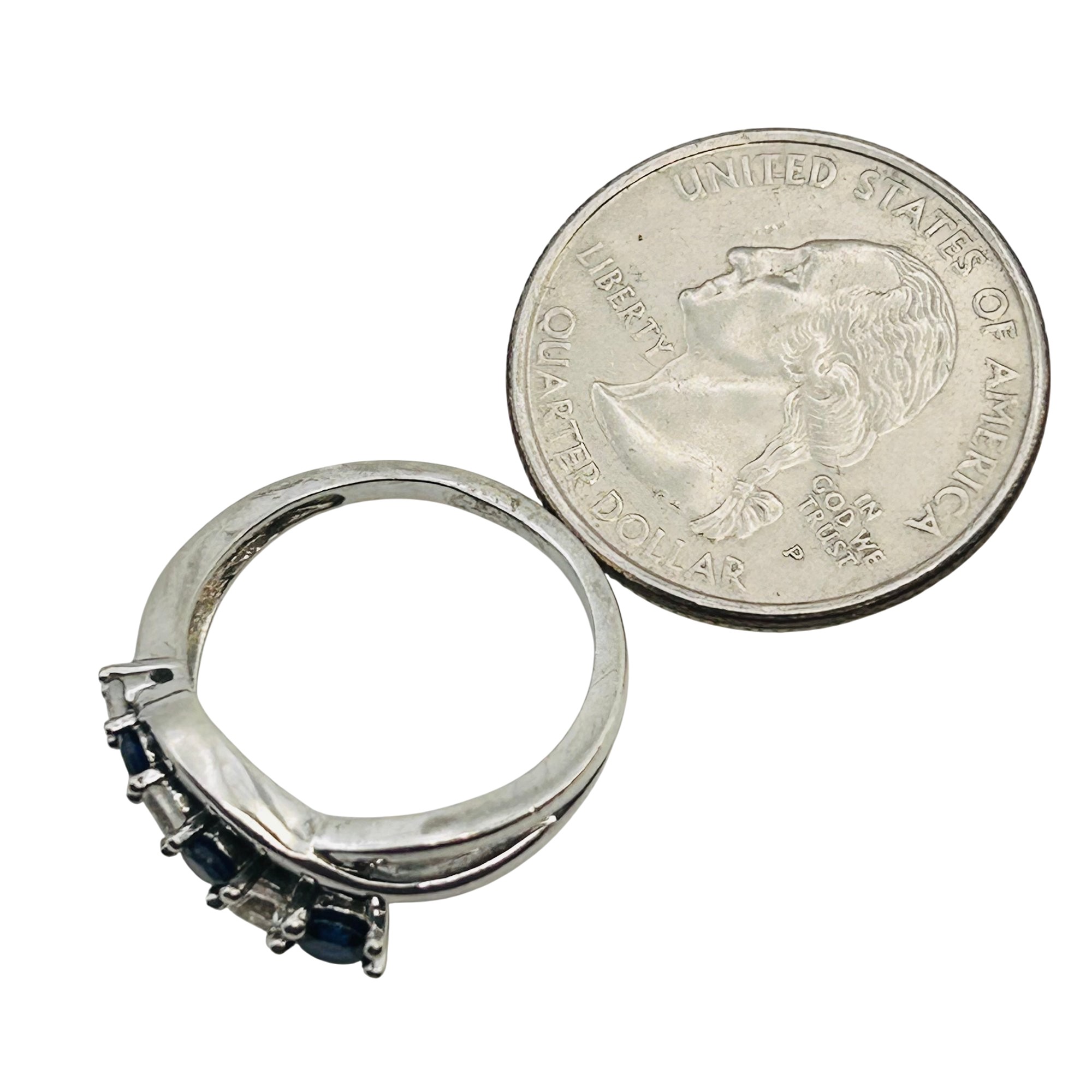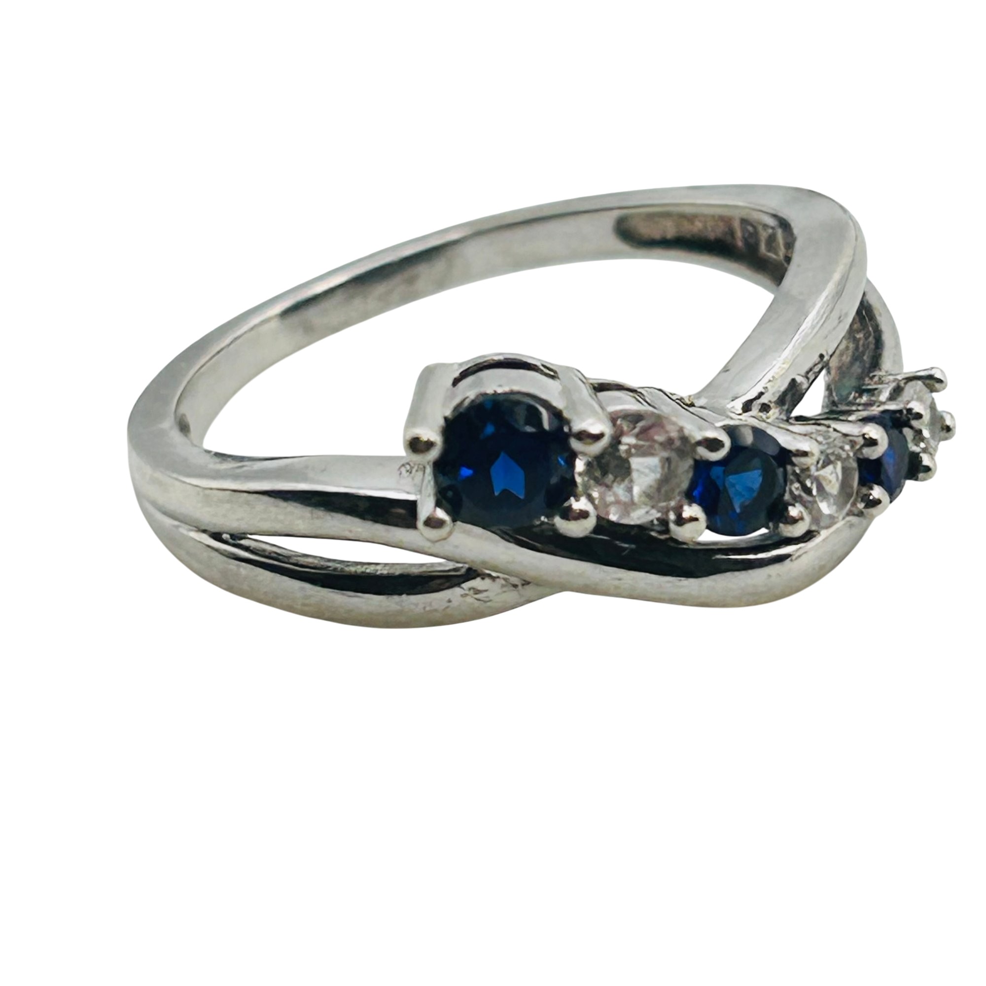 Blue sapphire clear topaz five stone sterling ring size 7 2.9 g