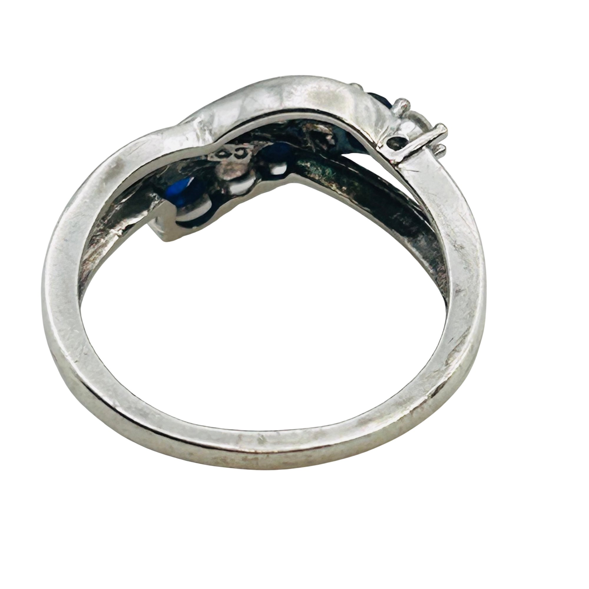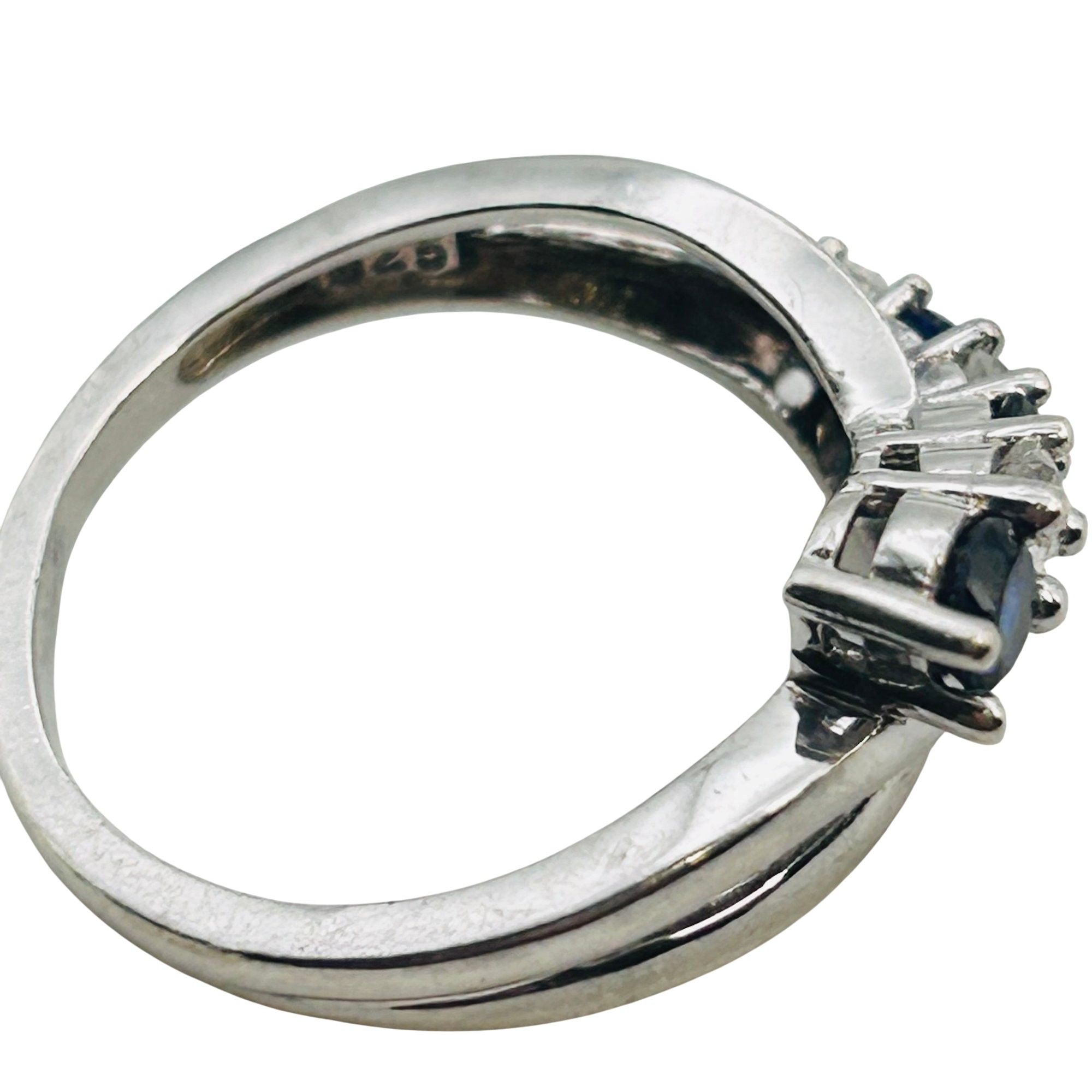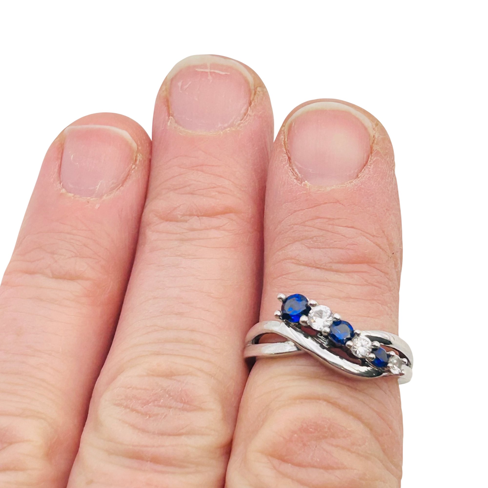 Blue sapphire clear topaz five stone sterling ring size 7 2.9 g