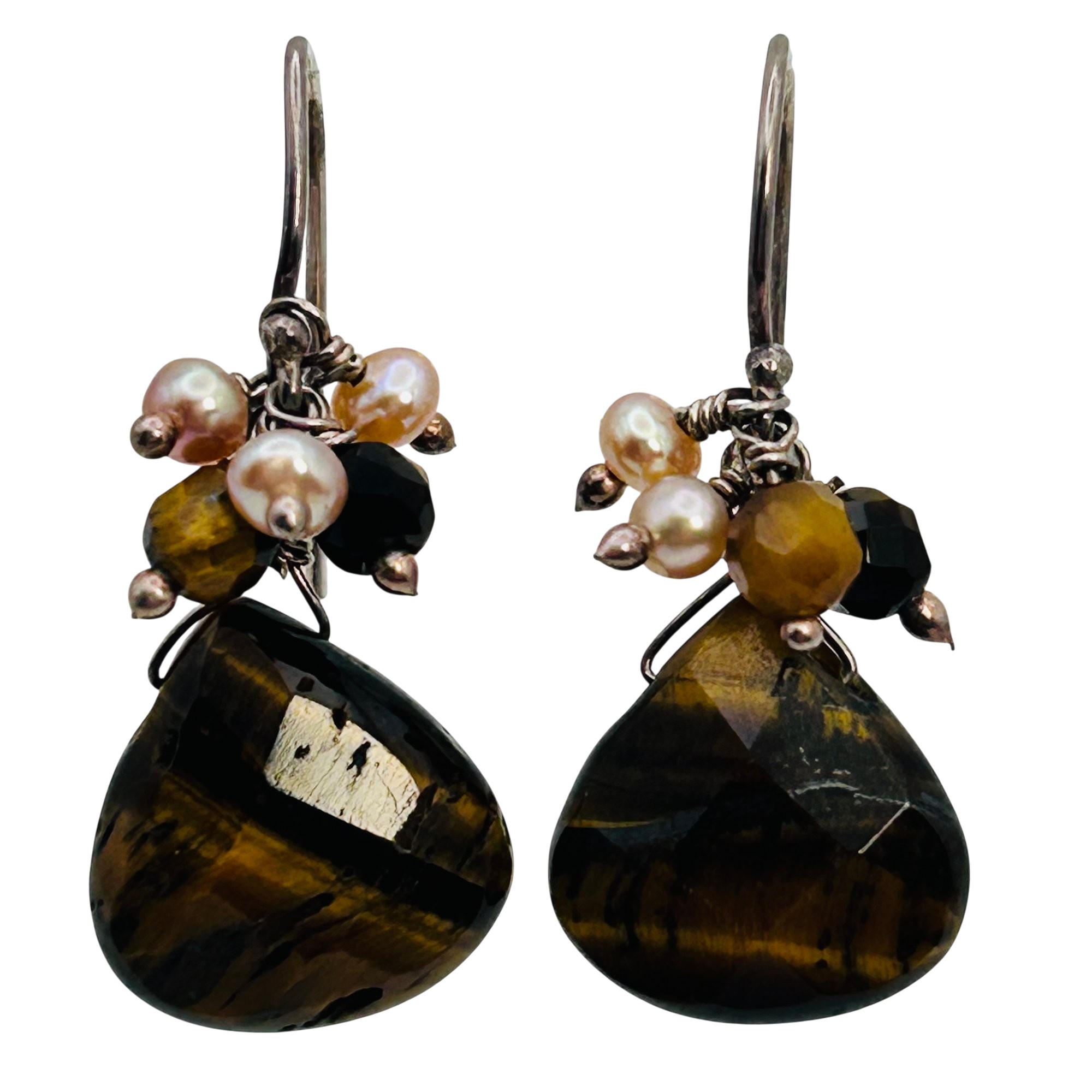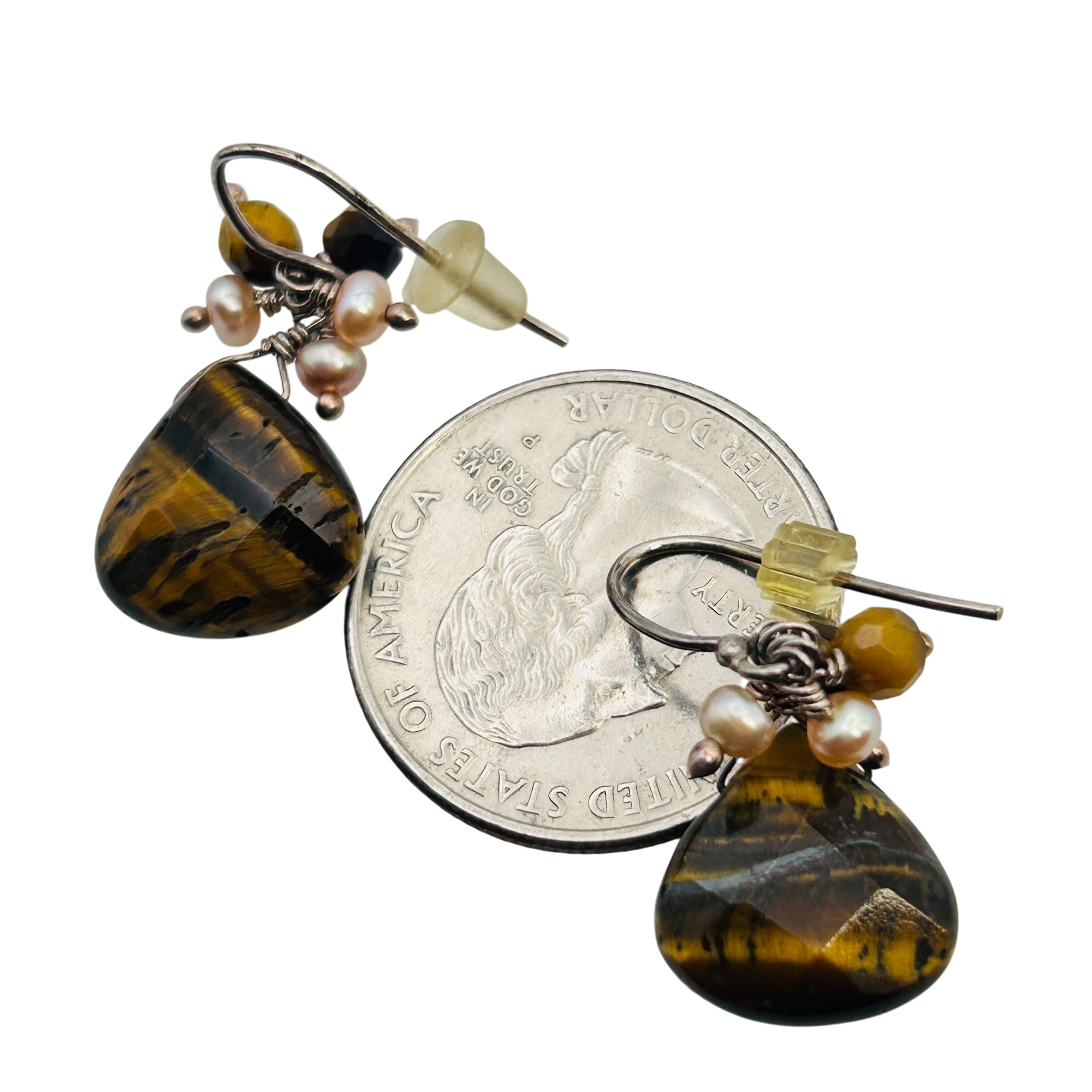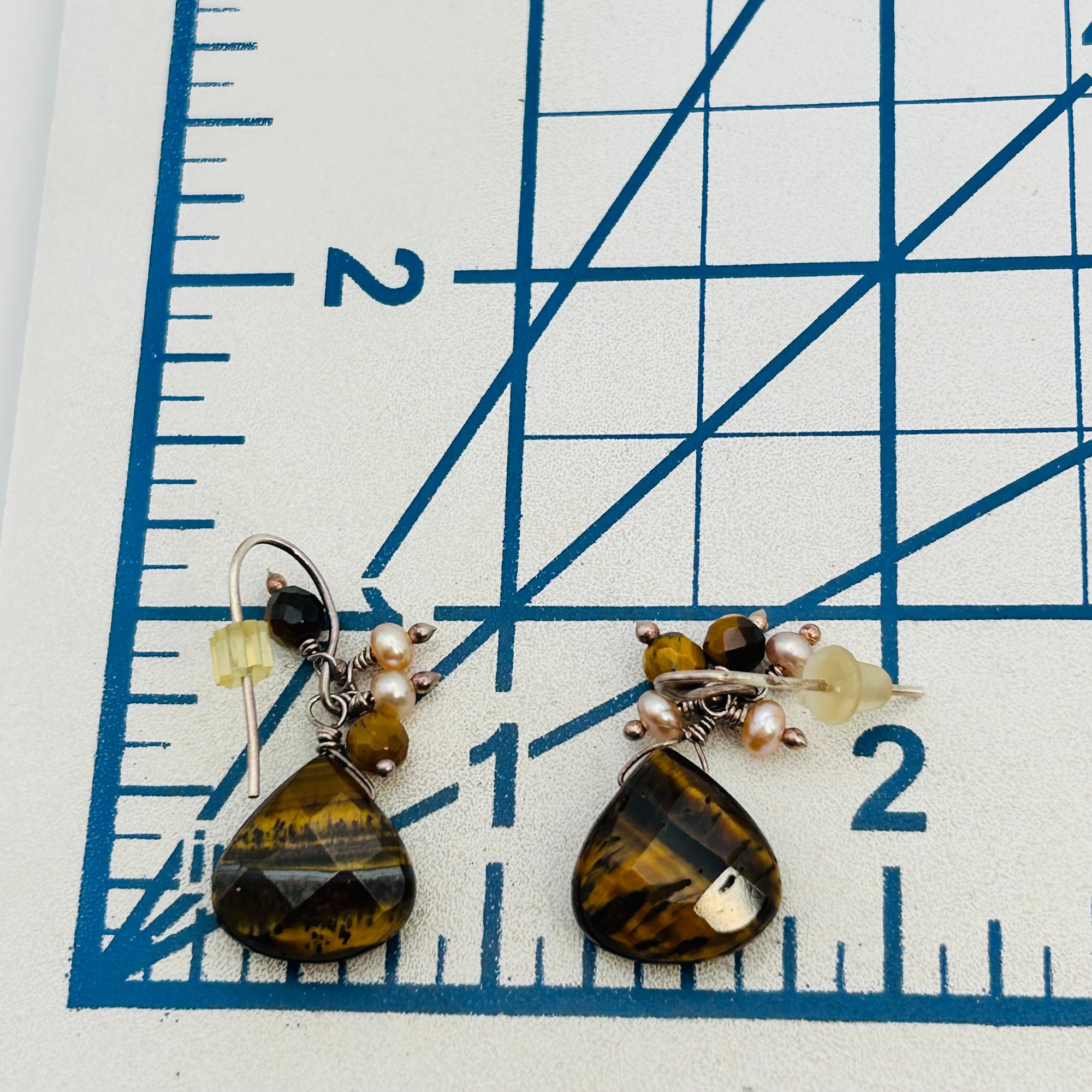 Tiger’s eye pearl Sterling dangle earrings 4.38 g