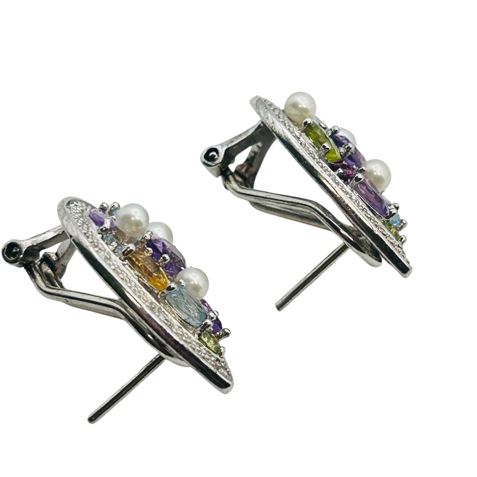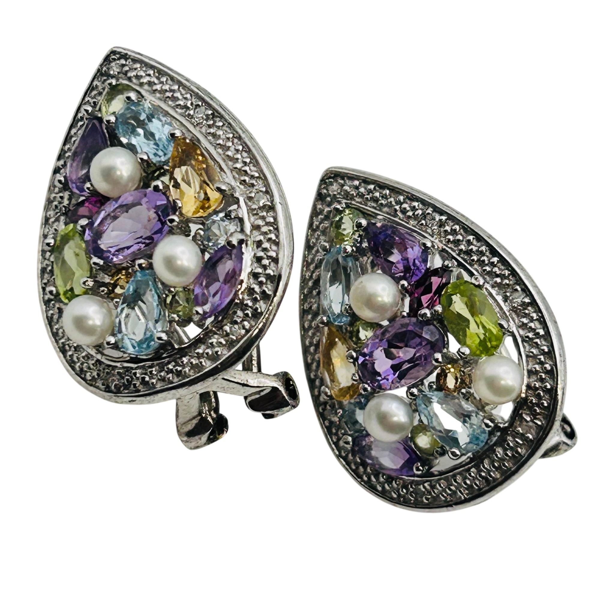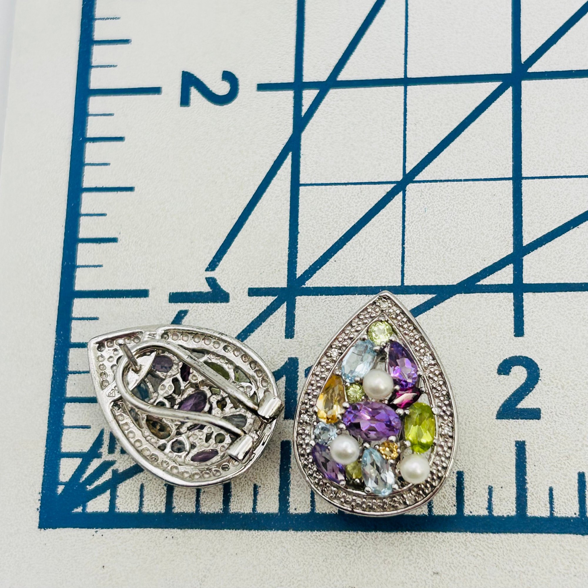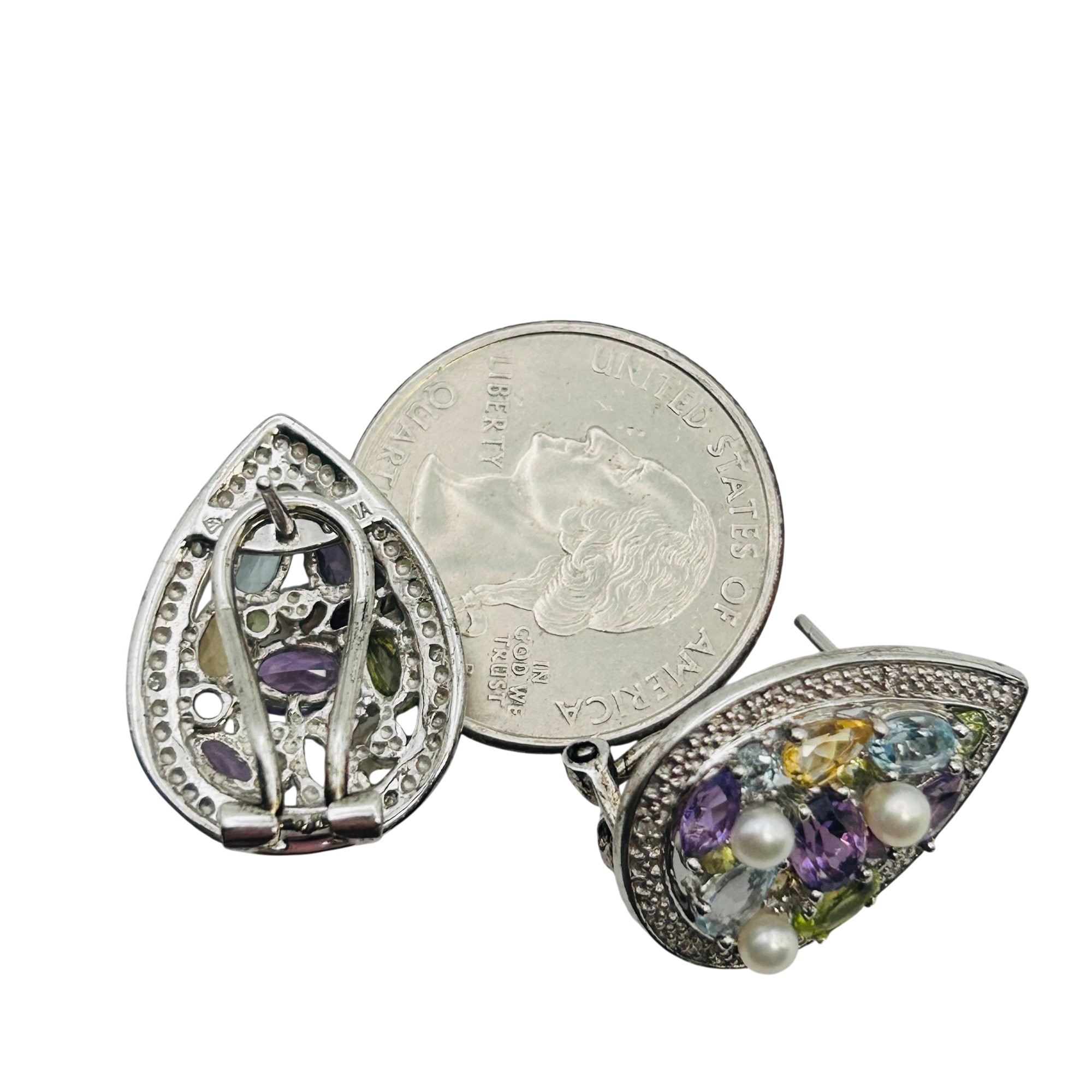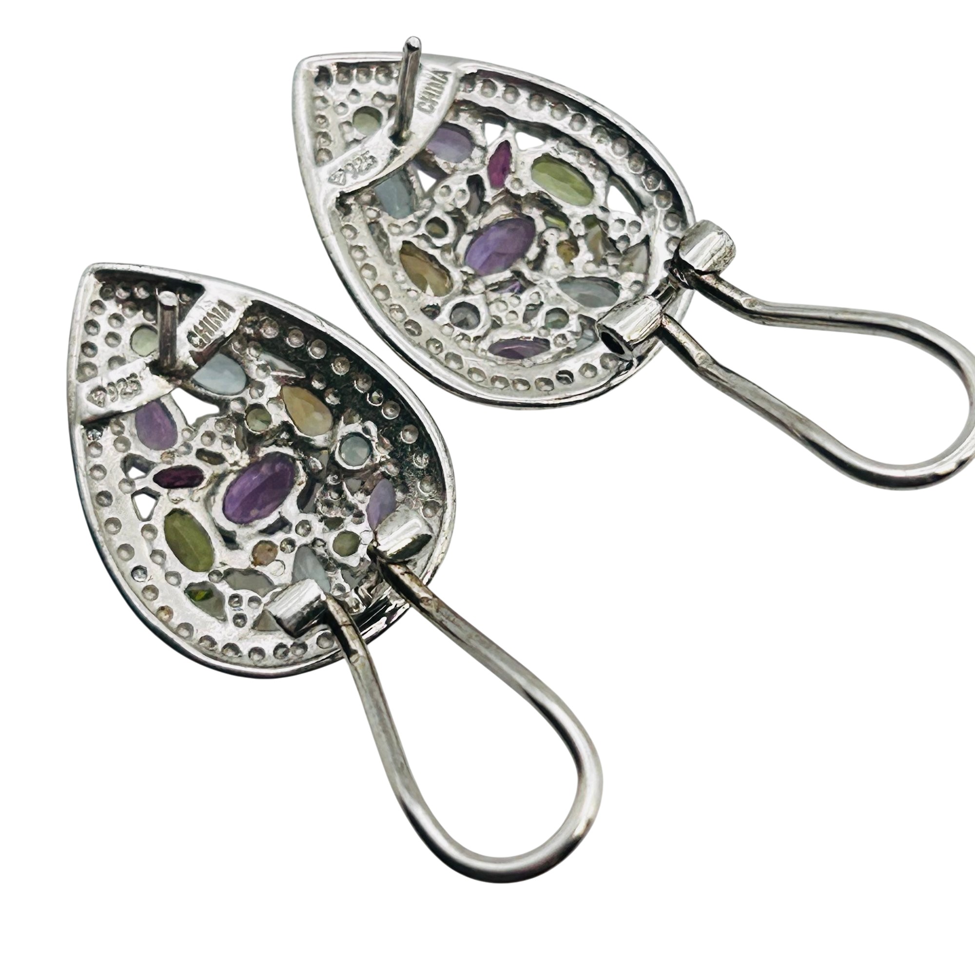 Topaz citrine garnet peridot amethyst Sterling teardrop earrings 7.95 g