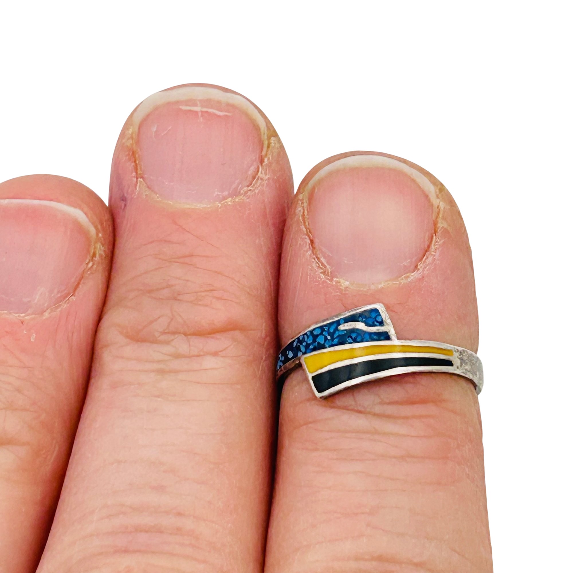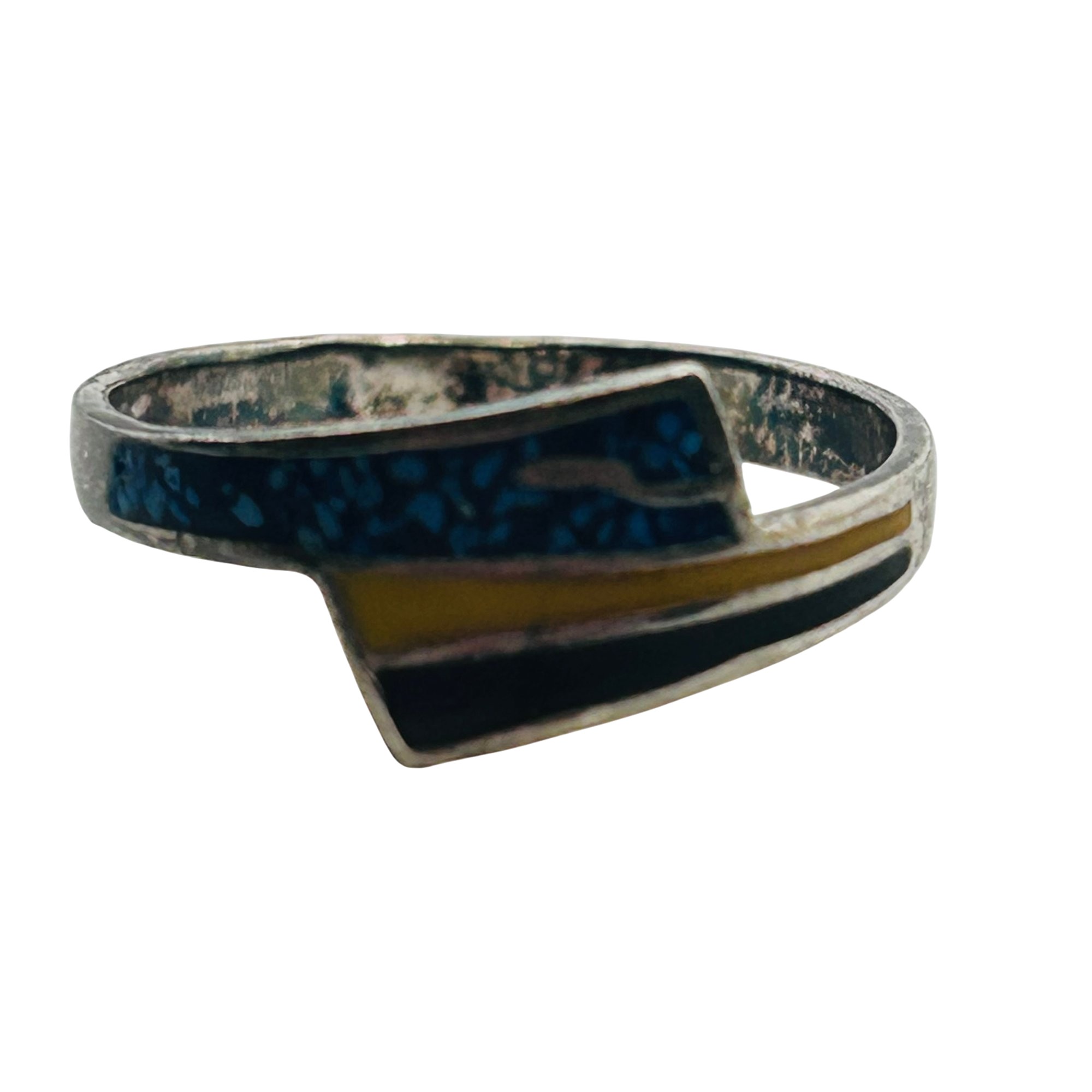 TR-58 taxco Mexico Sterling inlay stone ring size 4.5 1.09 g
