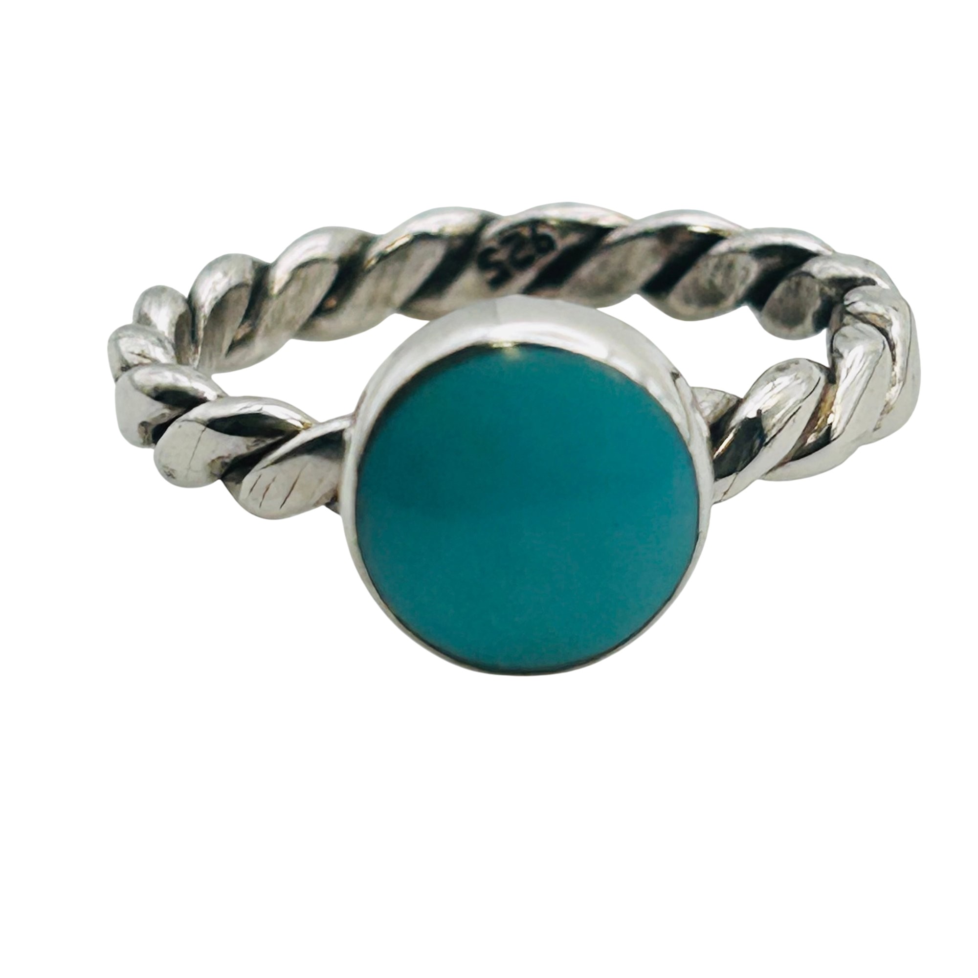 Mexico ATI turquoise Sterling braid band rings size 6 2.9 g