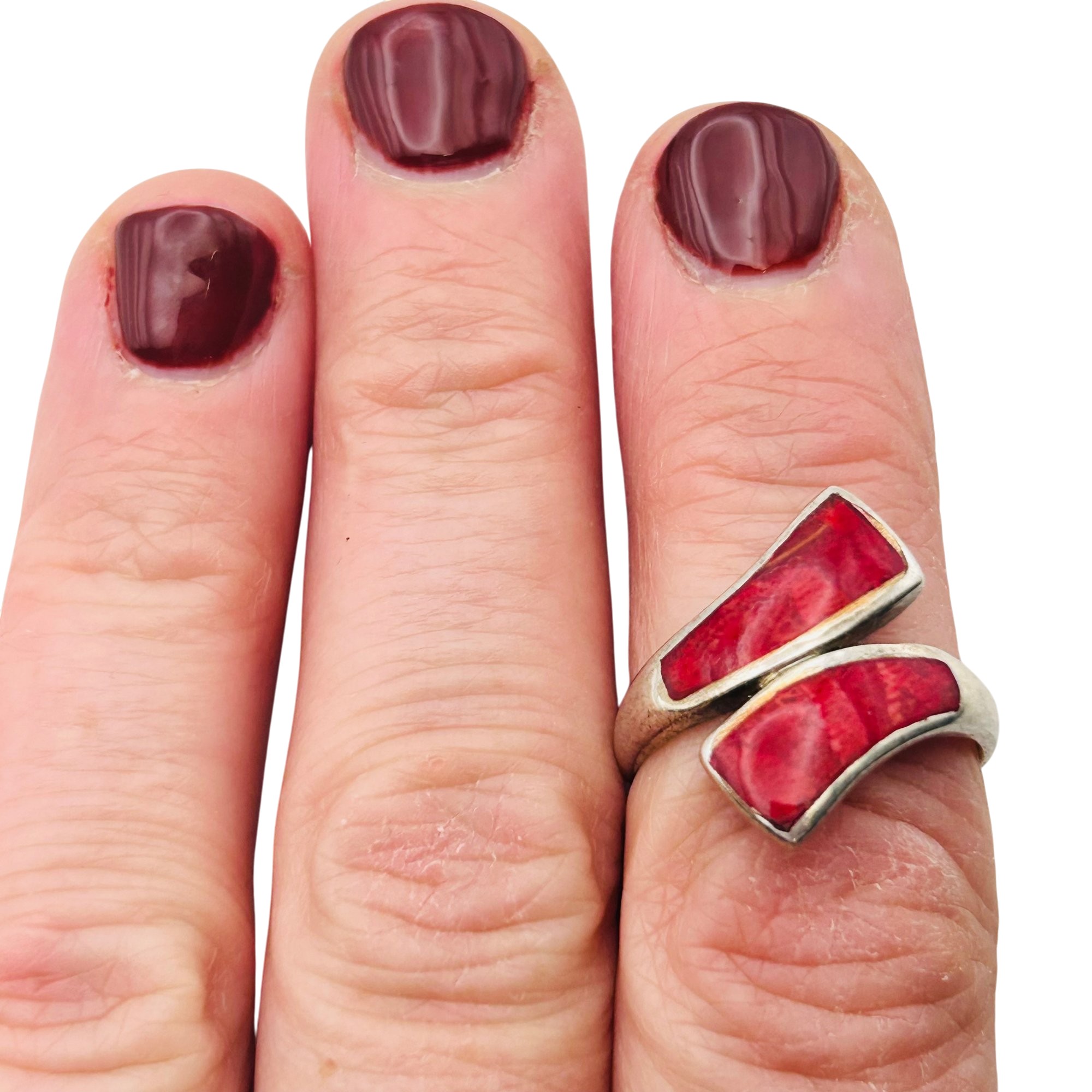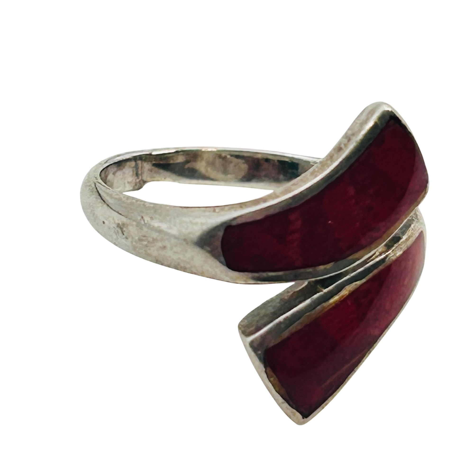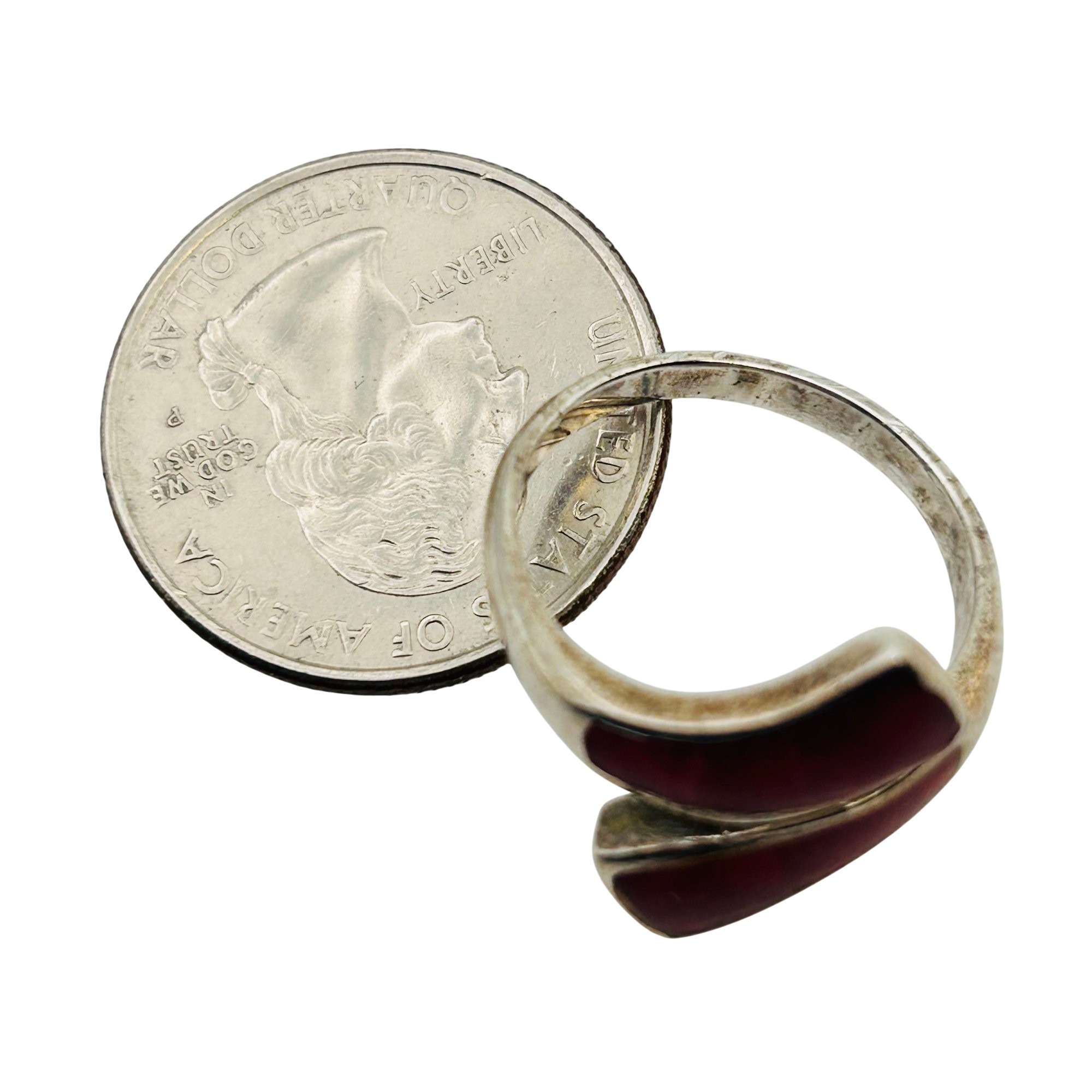 Southwest Coral Sterling bypass ring size 8 4.4 g
