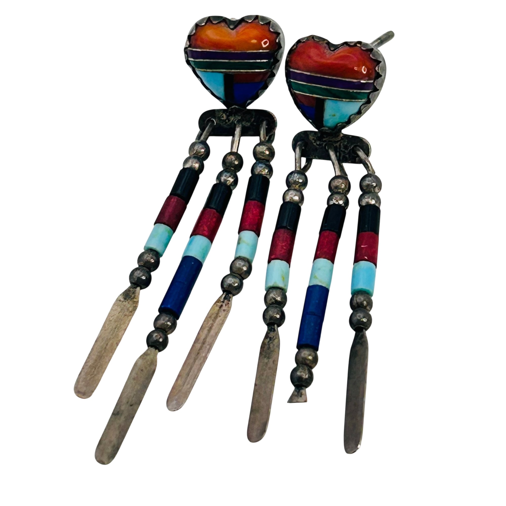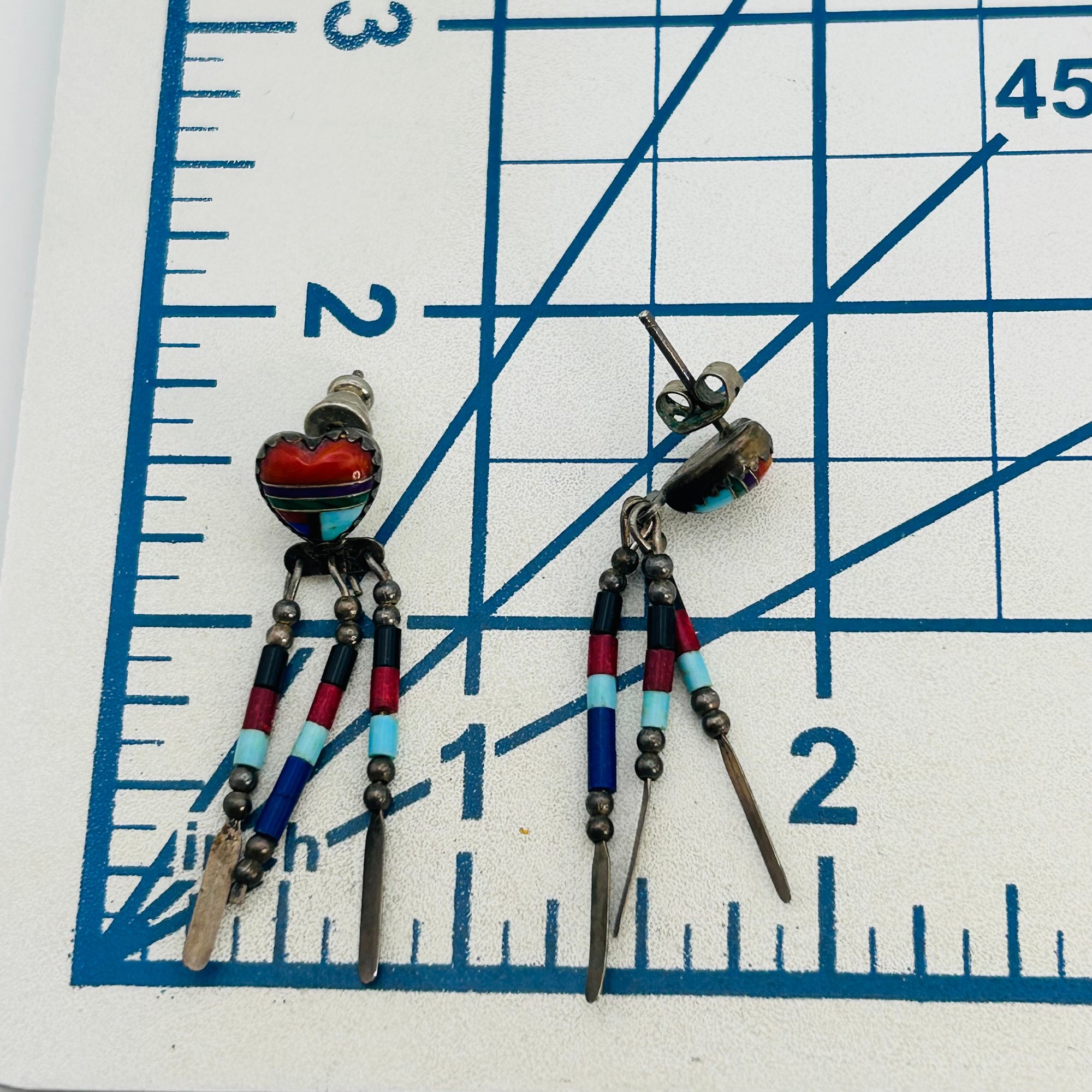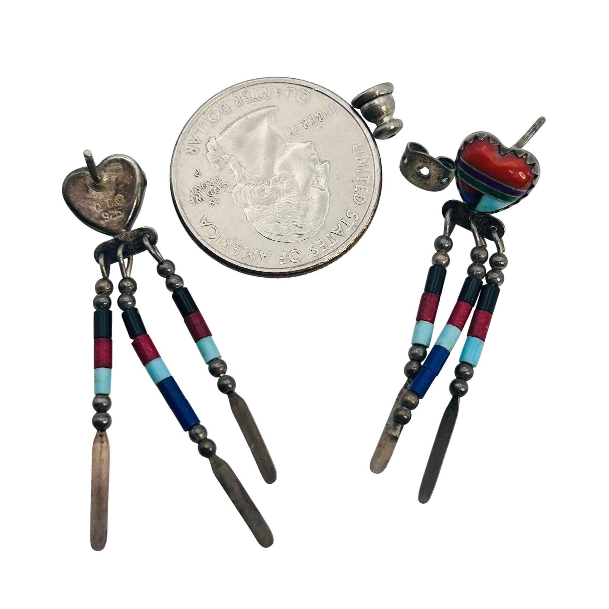 Quoc Trading Southwest Sterling Bead dangle earrings 3.41g, signed QT