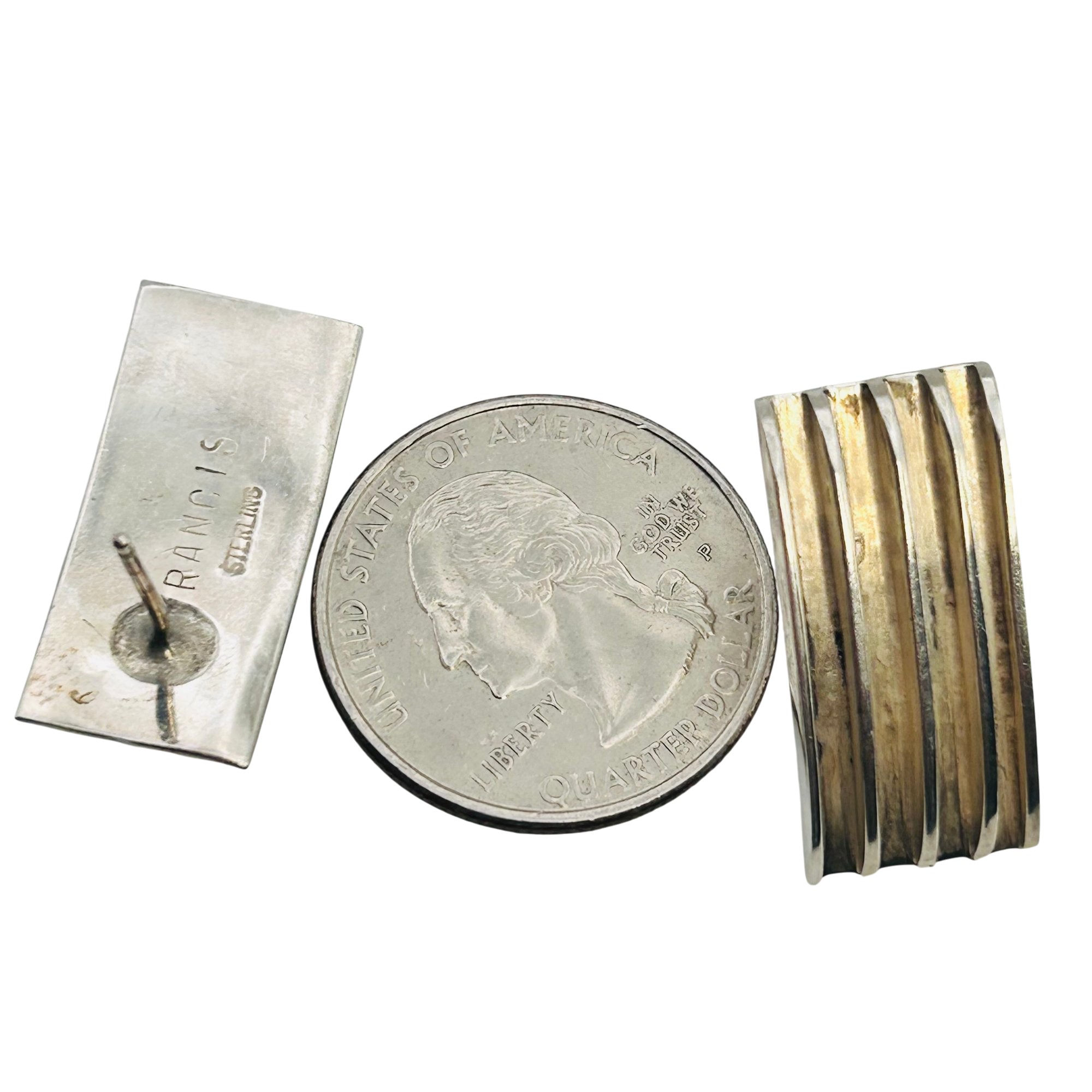 Navajo Artist signed RANCIS sterling rectangular lined earrings 7.88 g