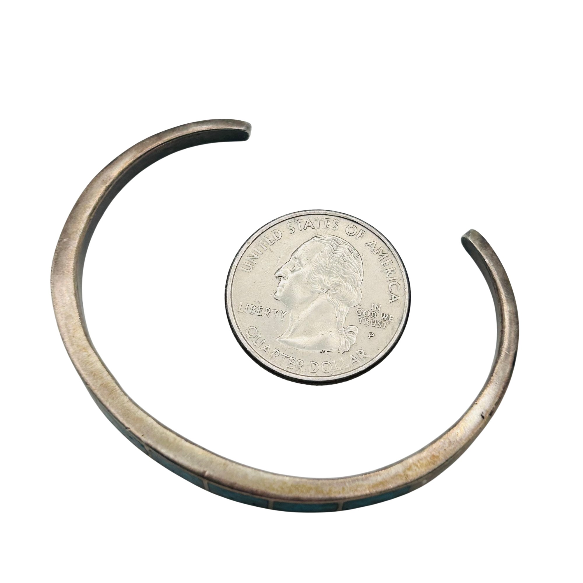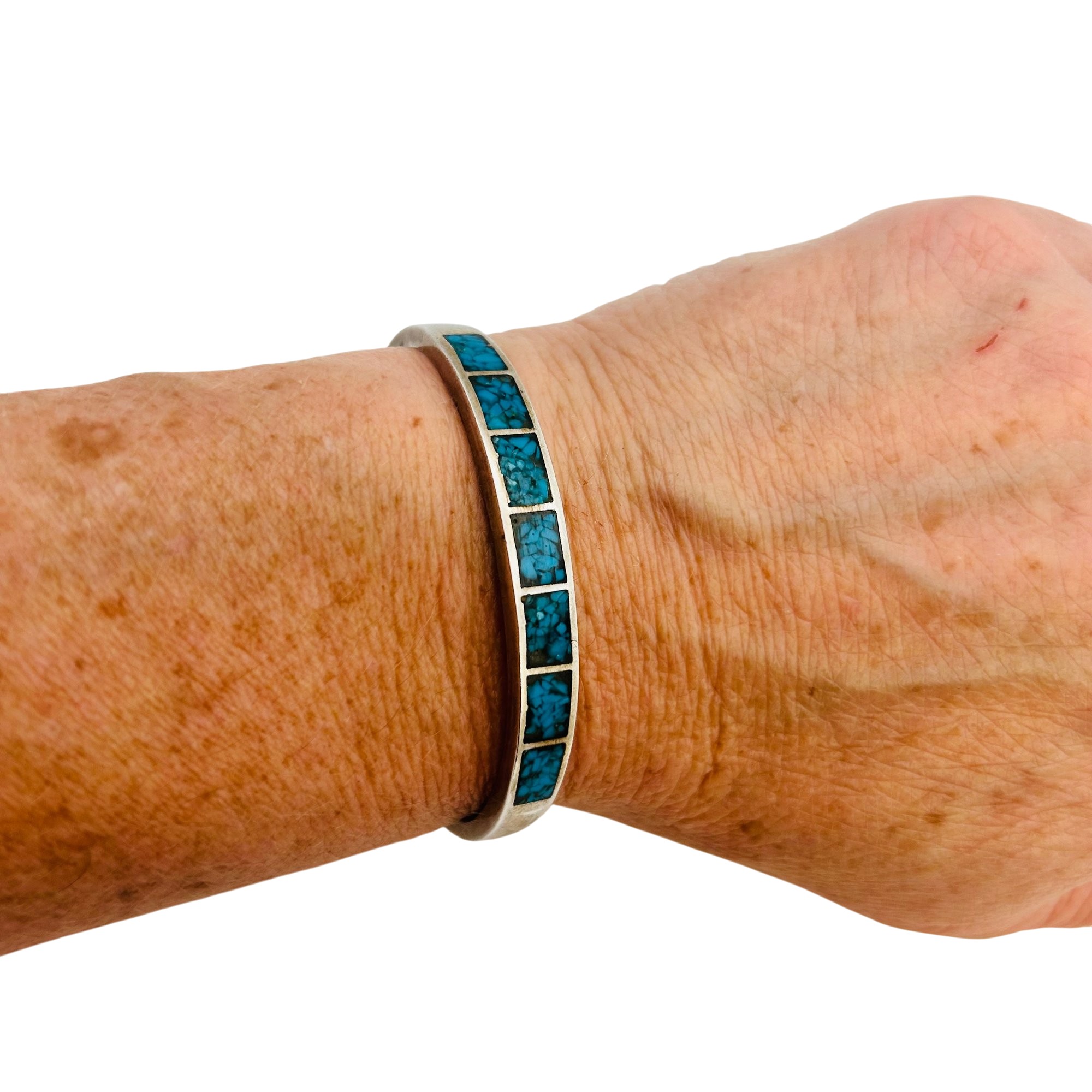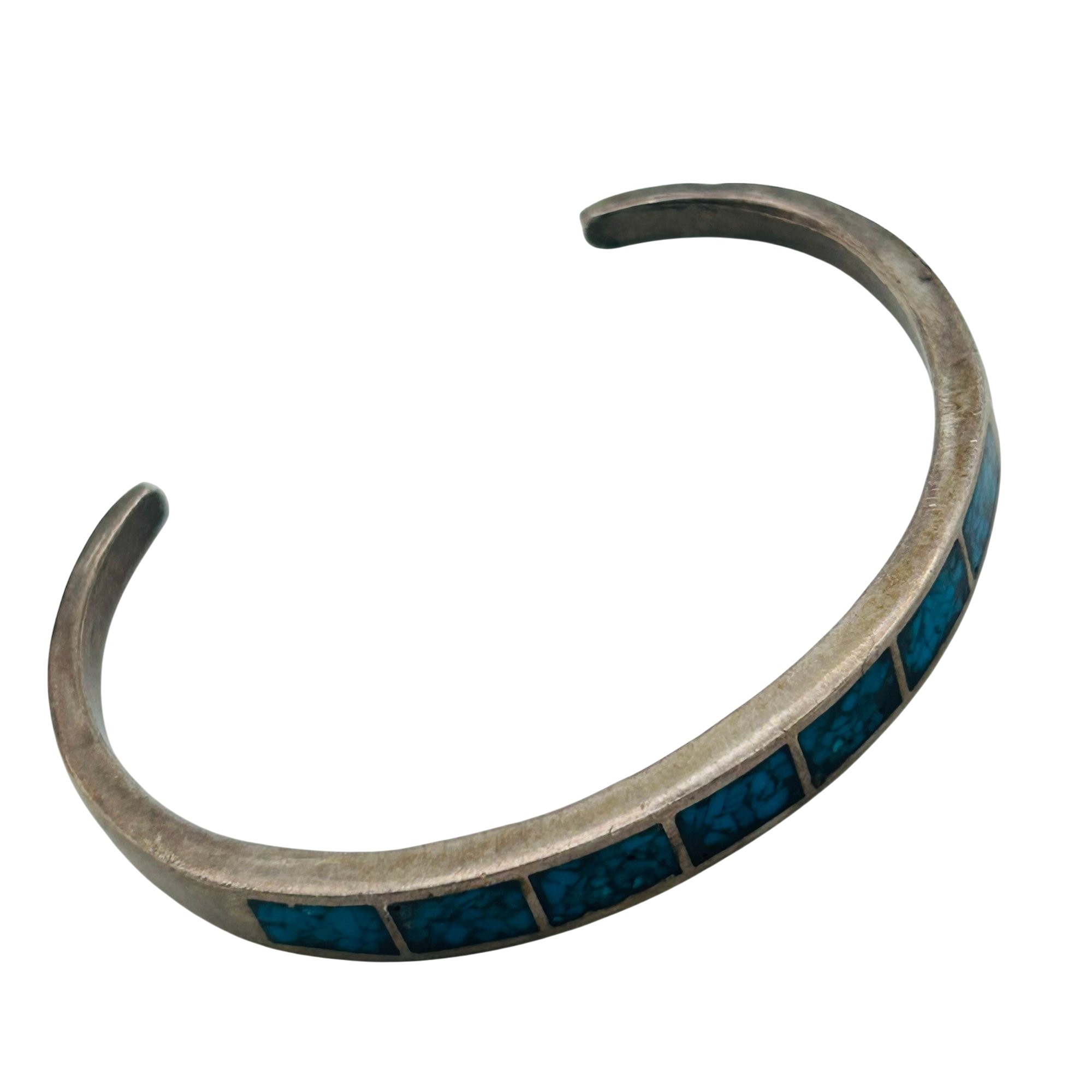 Southwest crushed turquoise cuff solid sterling bracelet 17.87