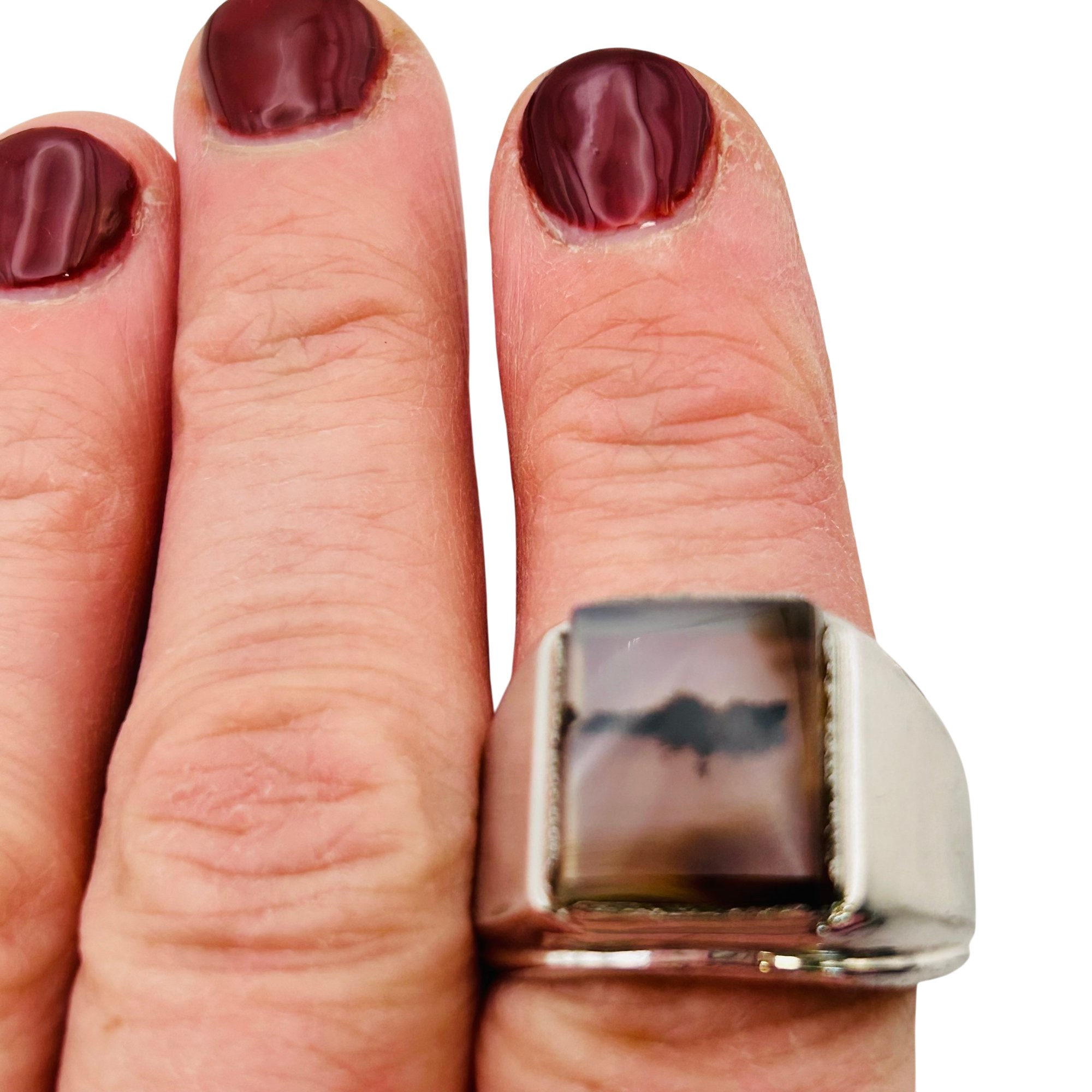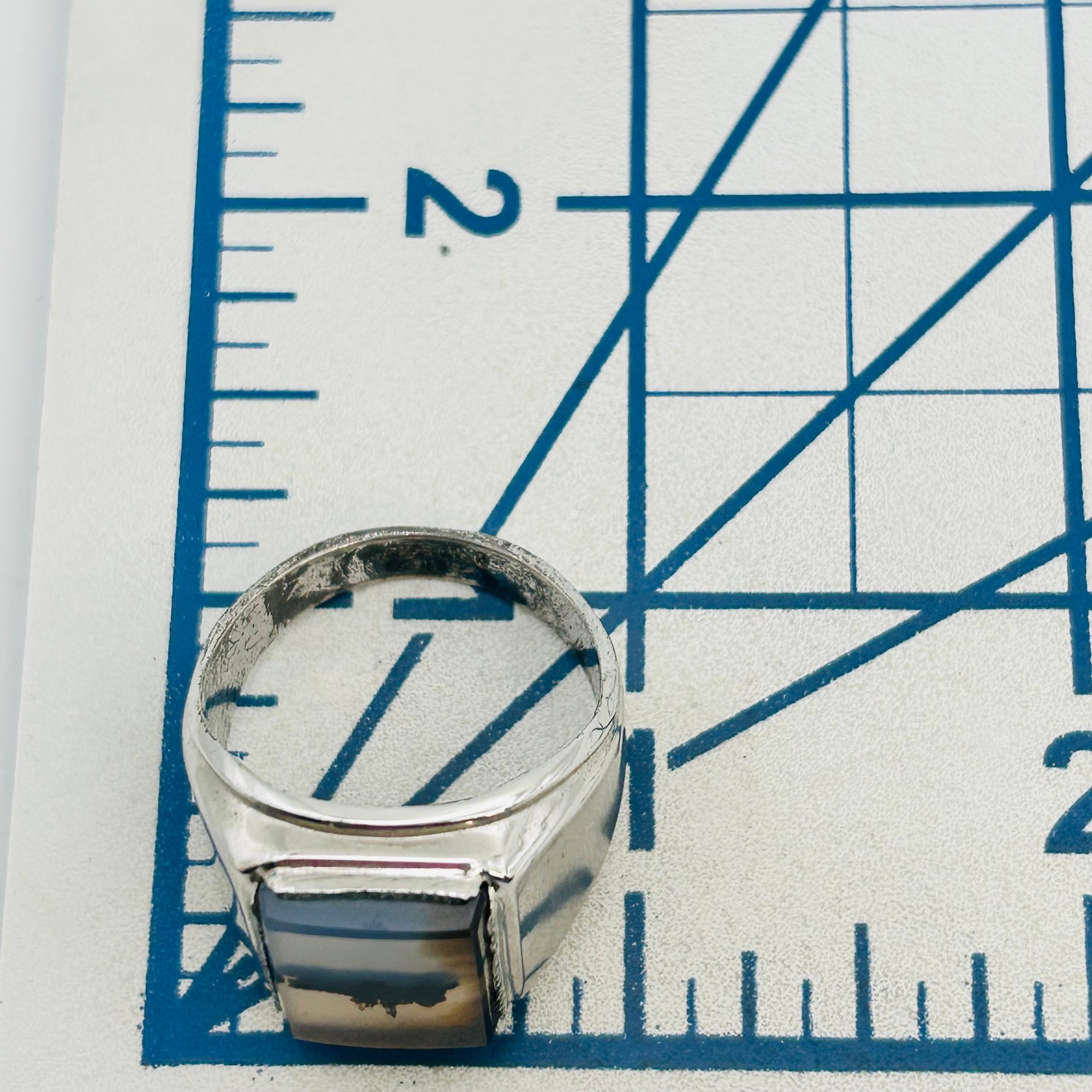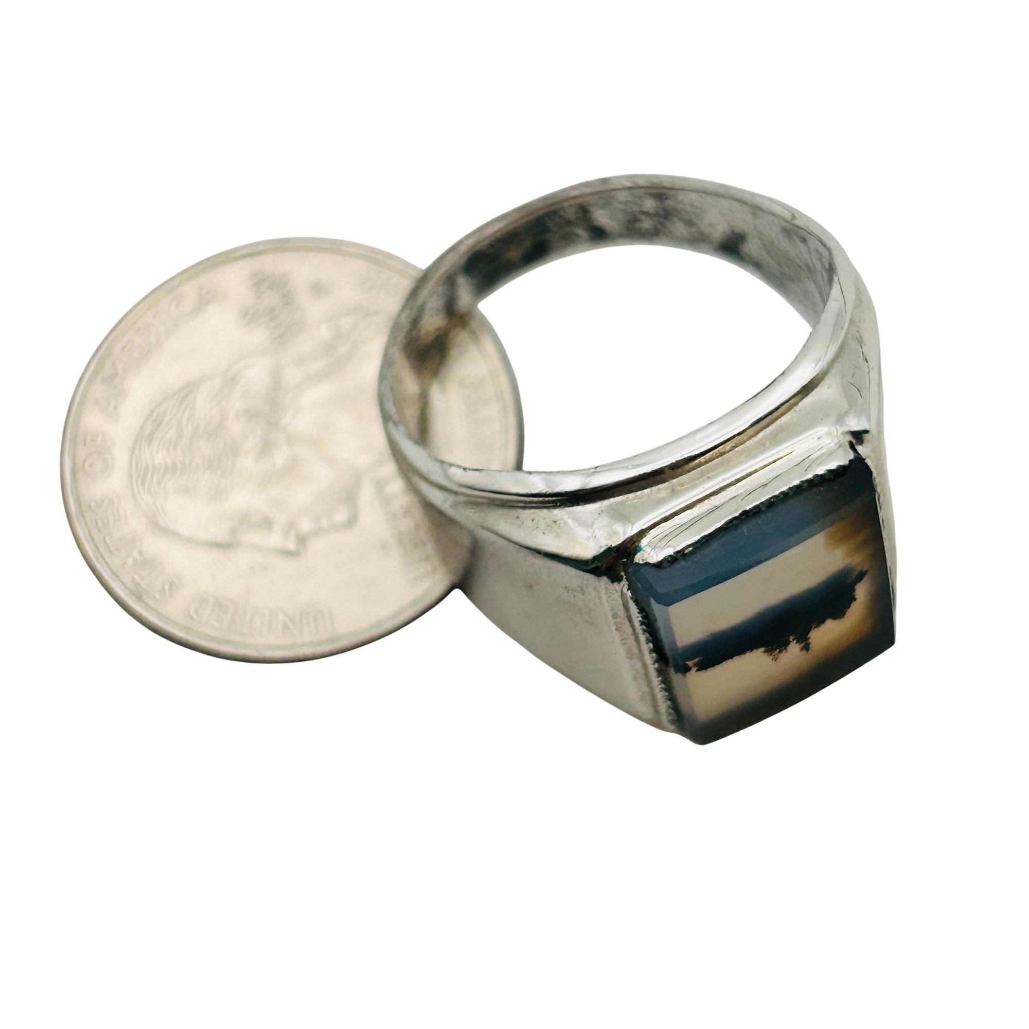 Dendritic agate Sterling statement ring size 12 11.73 g
